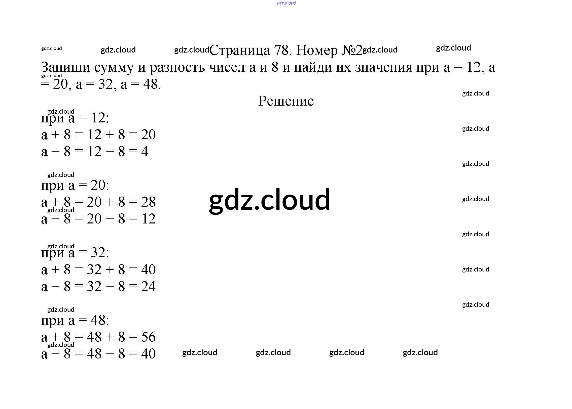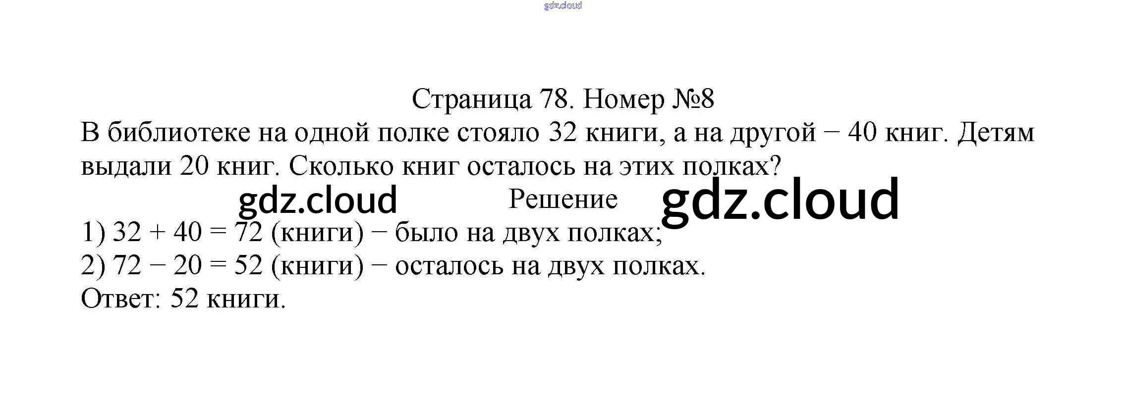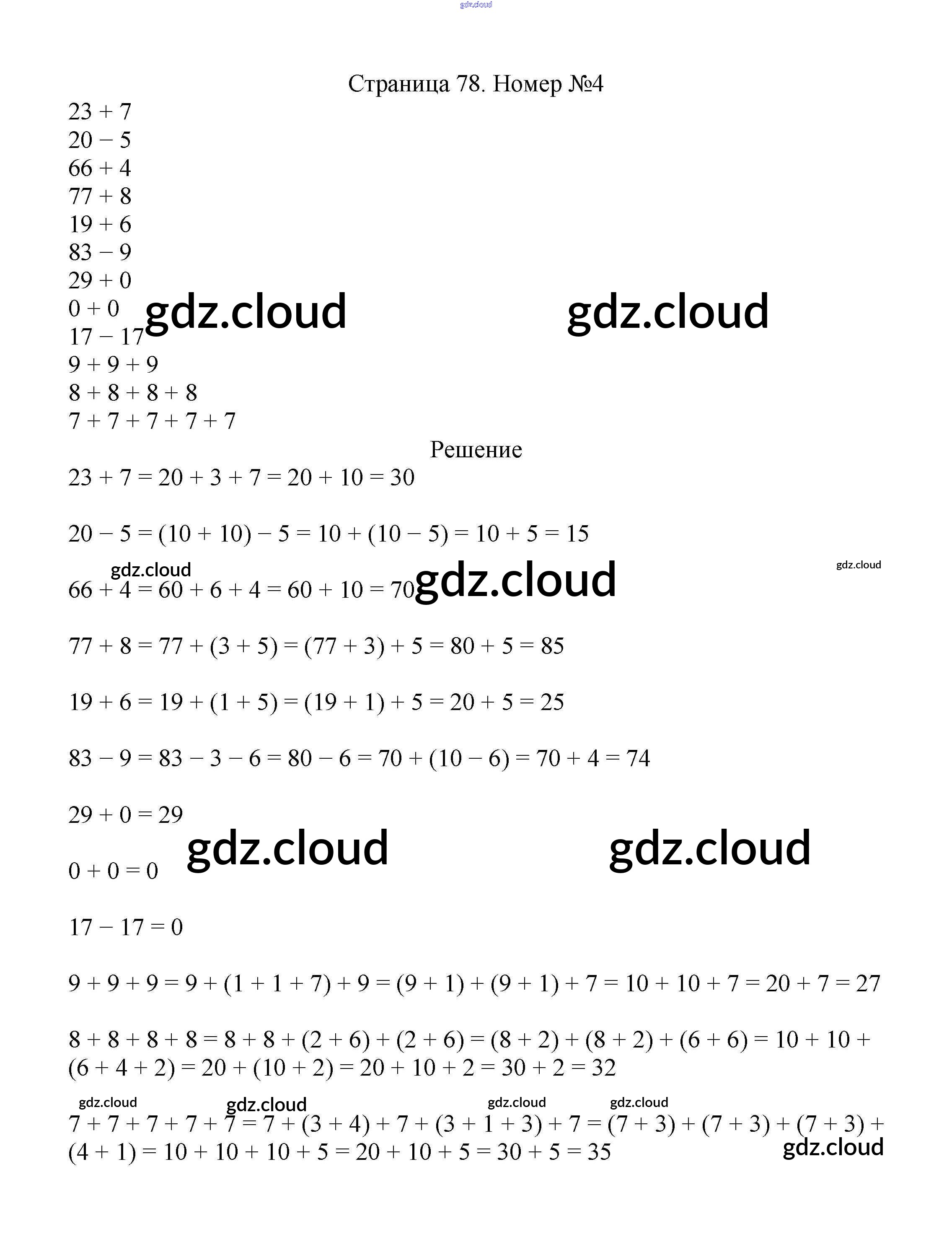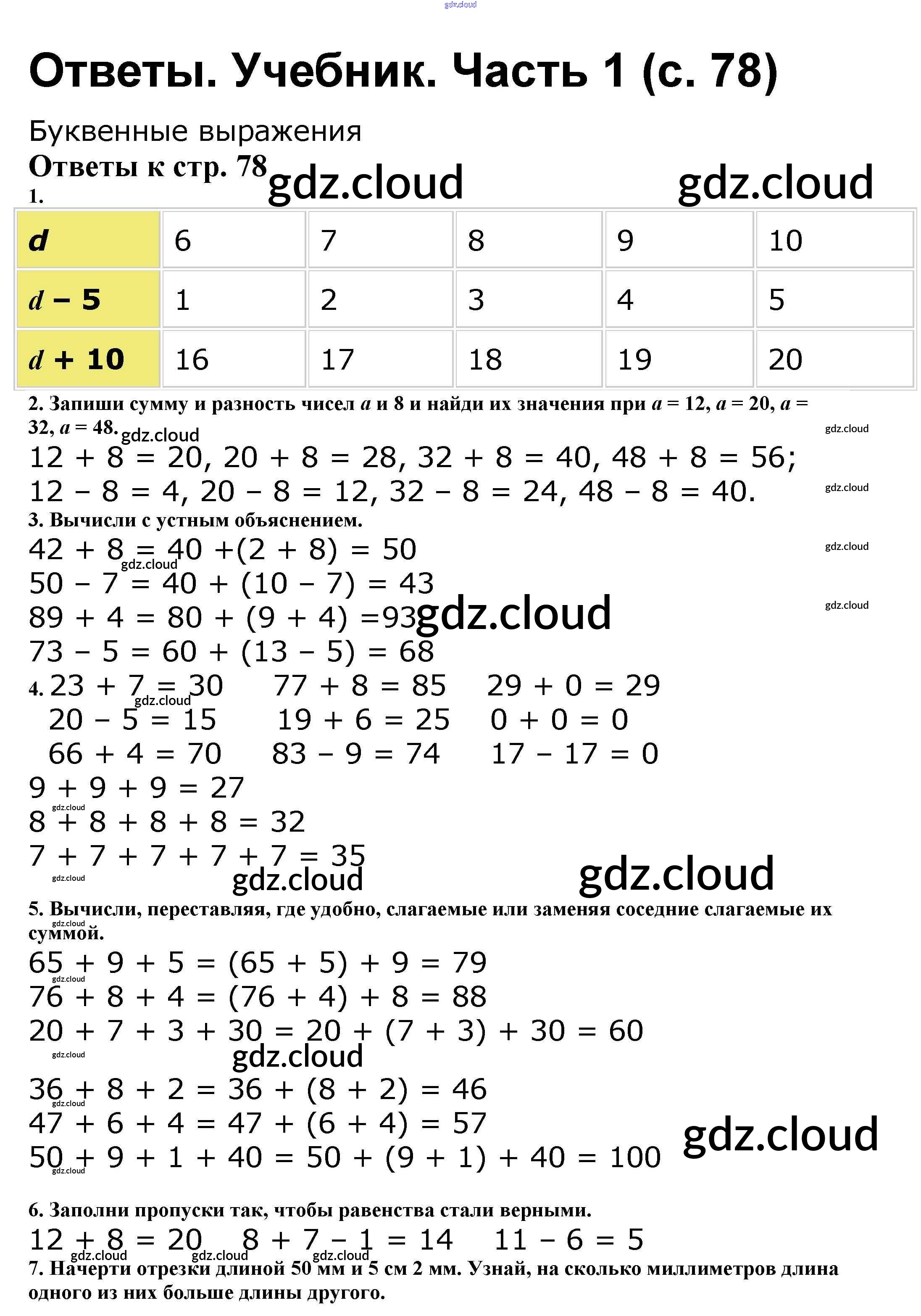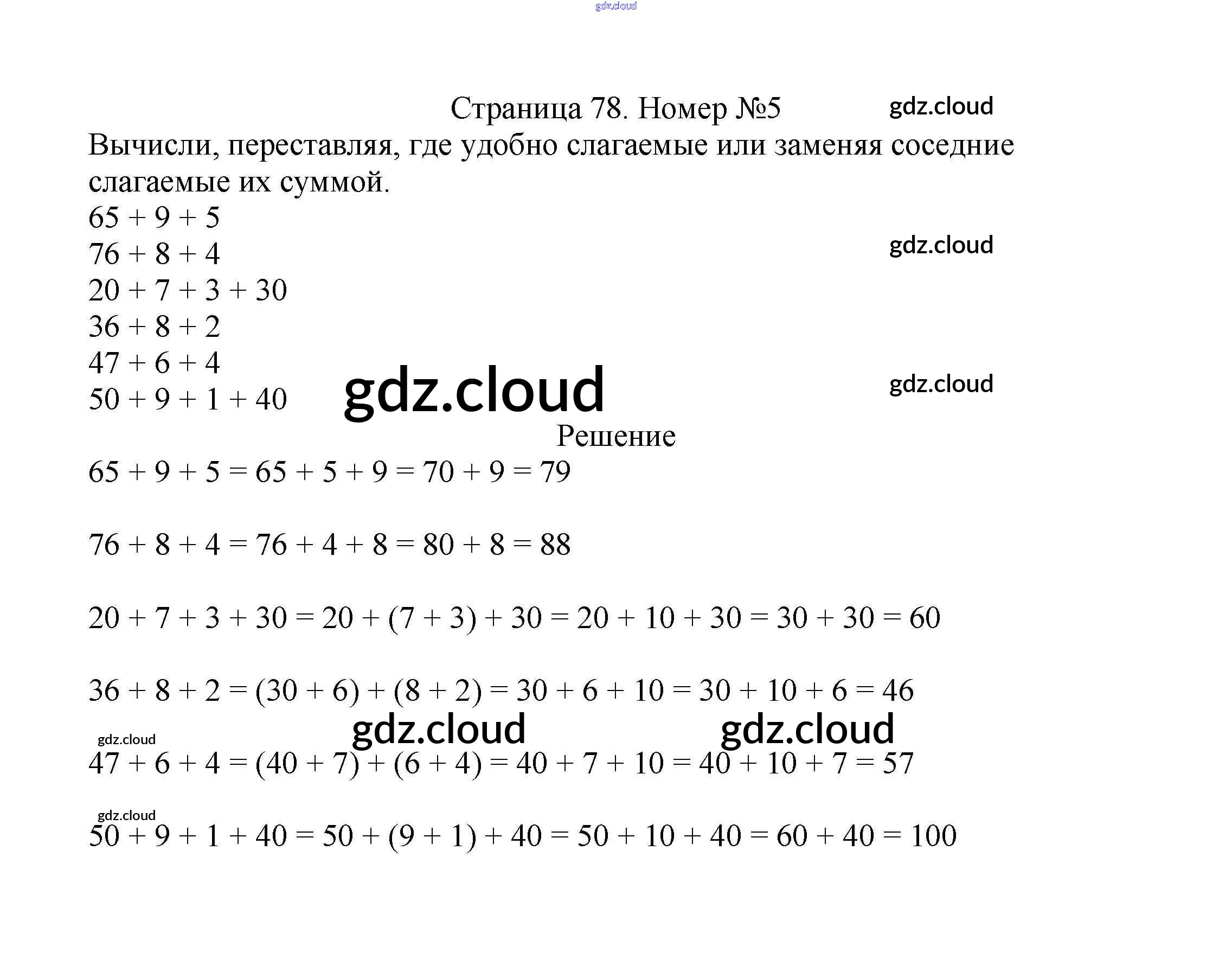 Ответ на задание стр.78 Учебник Математика за 2 (второй) класс Моро, Бантова, Бельтюкова Школа России 2015 Часть 1, 2