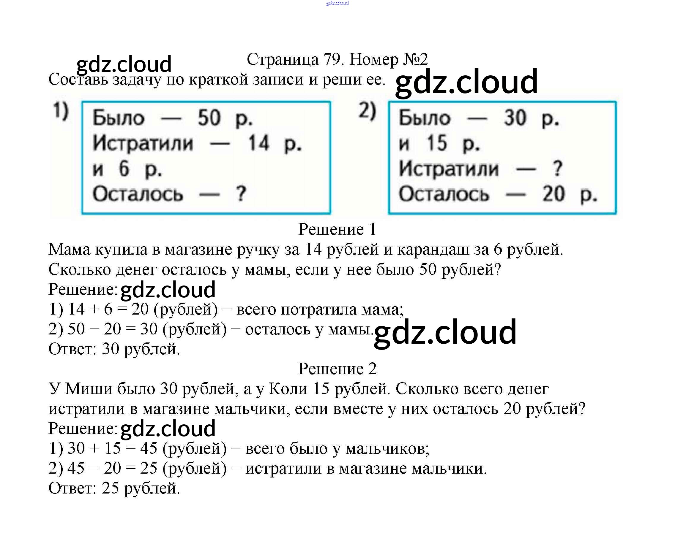 Ответ на задание стр.79 Учебник Математика за 2 (второй) класс Моро, Бантова, Бельтюкова Школа России 2015 Часть 1, 2