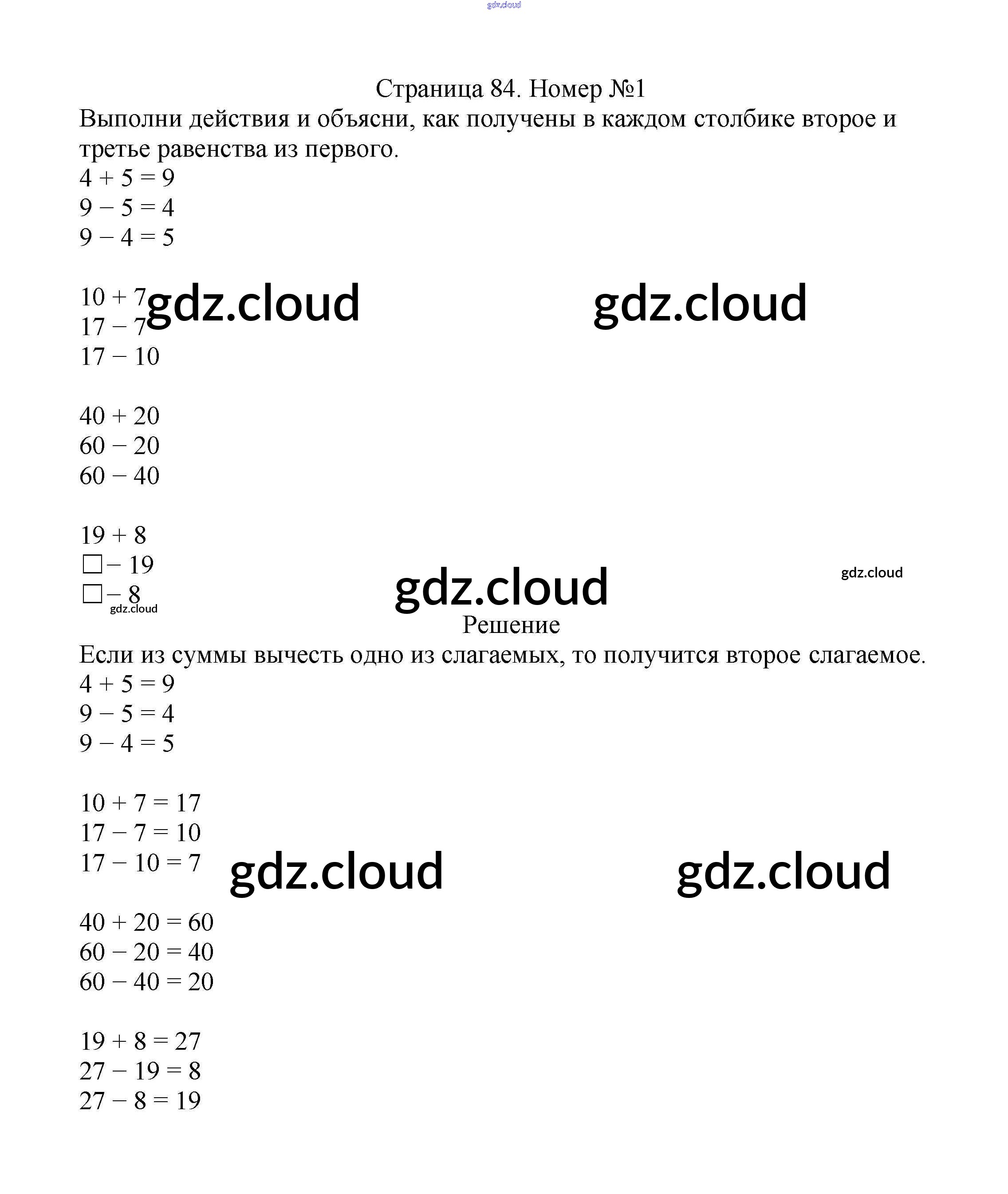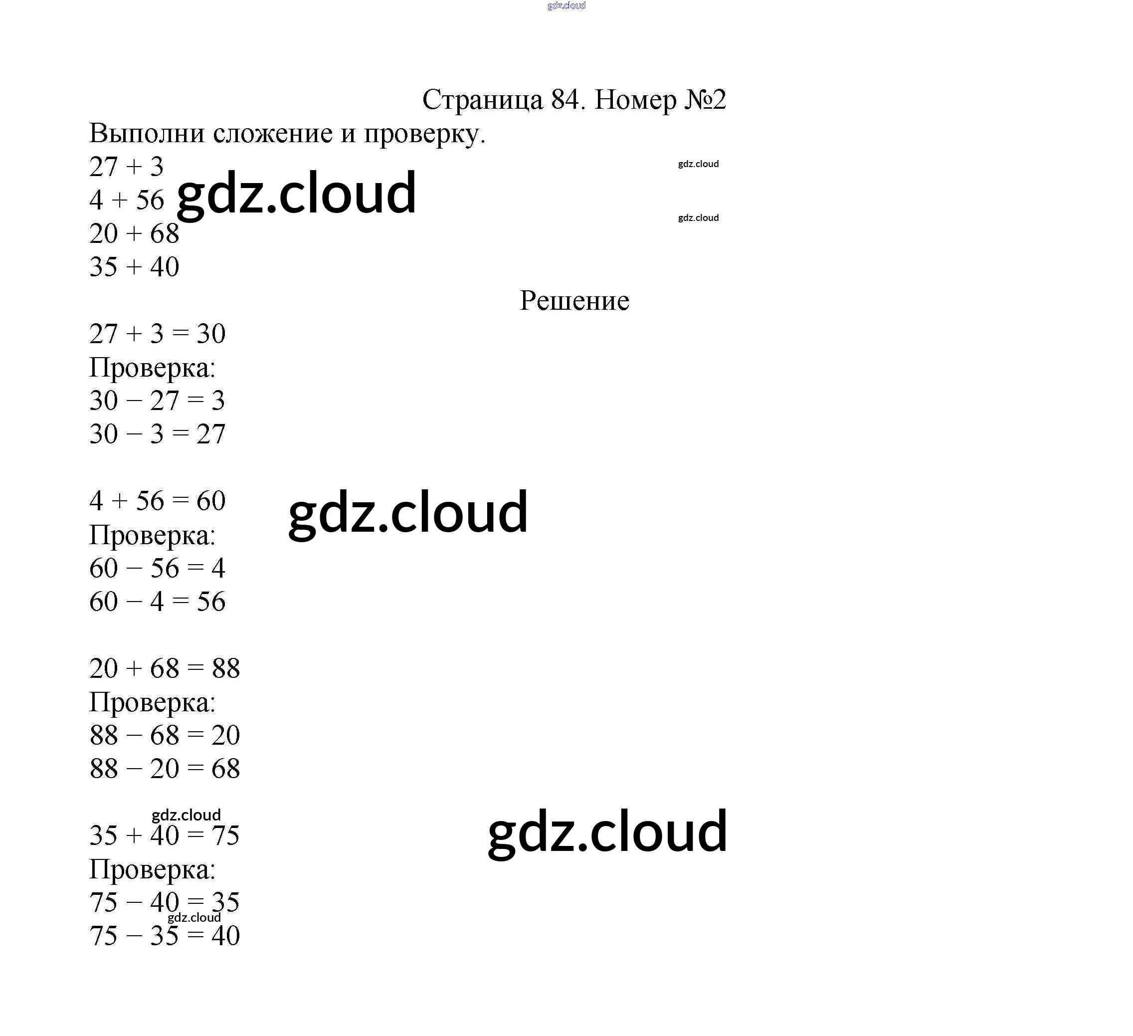 Ответ на задание стр.84 Учебник Математика за 2 (второй) класс Моро, Бантова, Бельтюкова Школа России 2015 Часть 1, 2