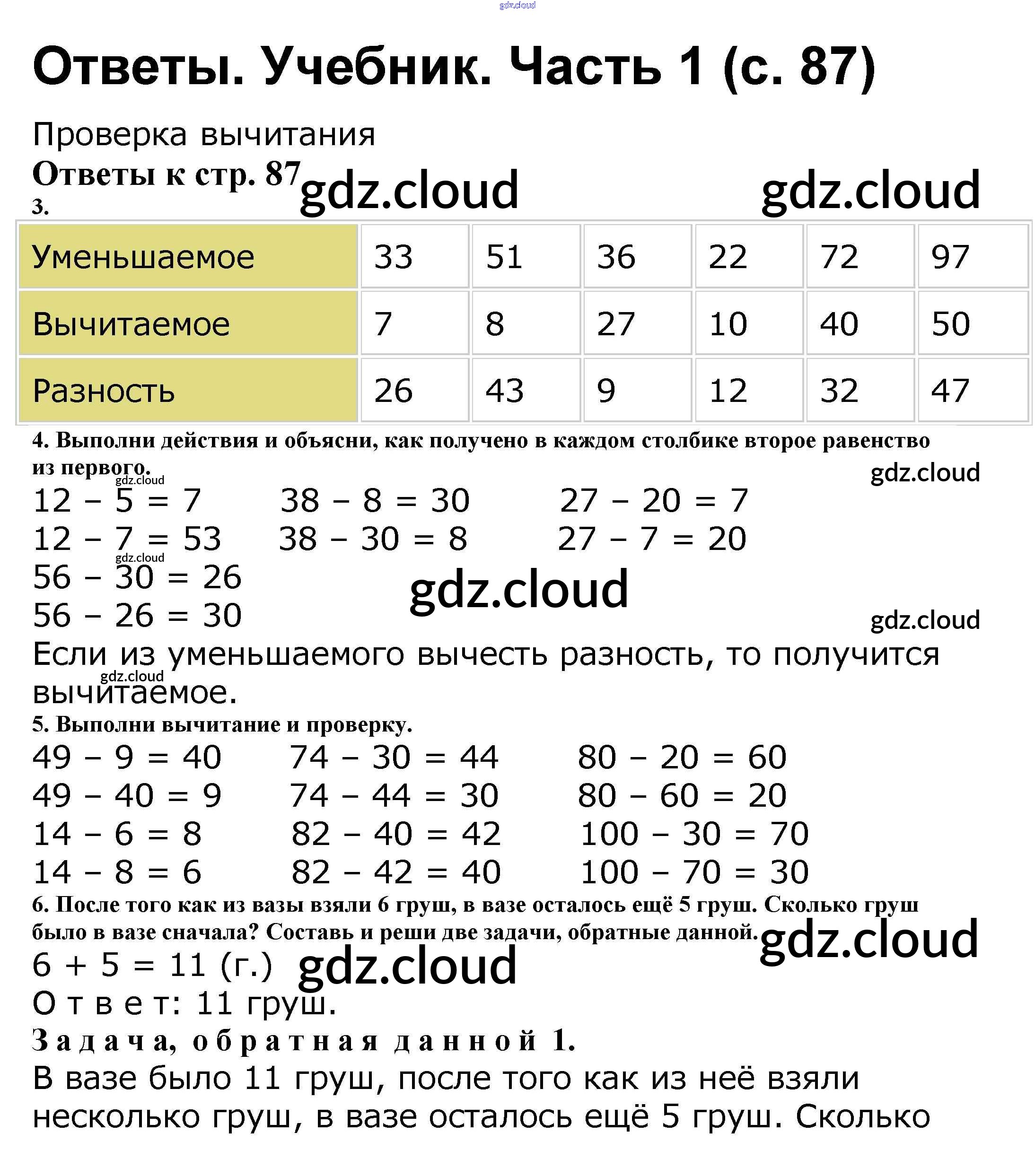 Ответ на задание стр.87 Учебник Математика за 2 (второй) класс Моро, Бантова, Бельтюкова Школа России 2015 Часть 1, 2
