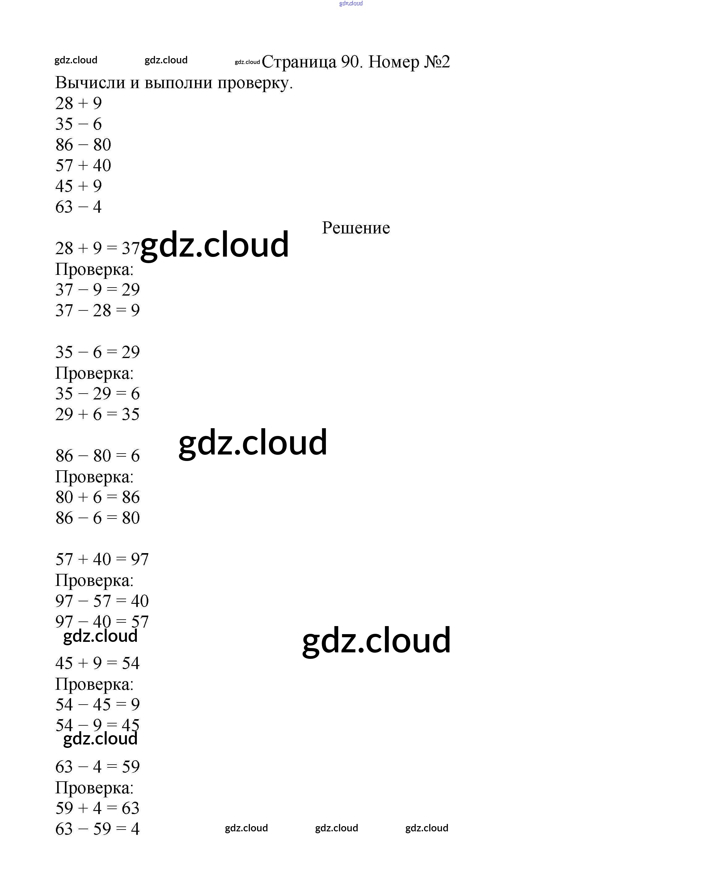 Ответ на задание стр.90 Учебник Математика за 2 (второй) класс Моро, Бантова, Бельтюкова Школа России 2015 Часть 1, 2
