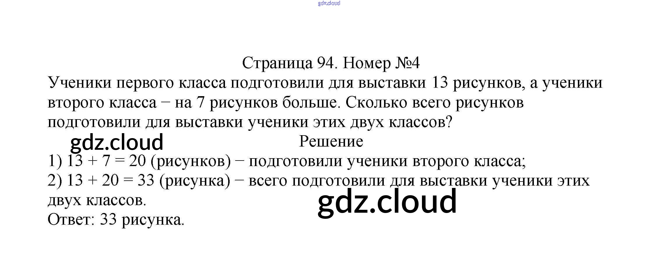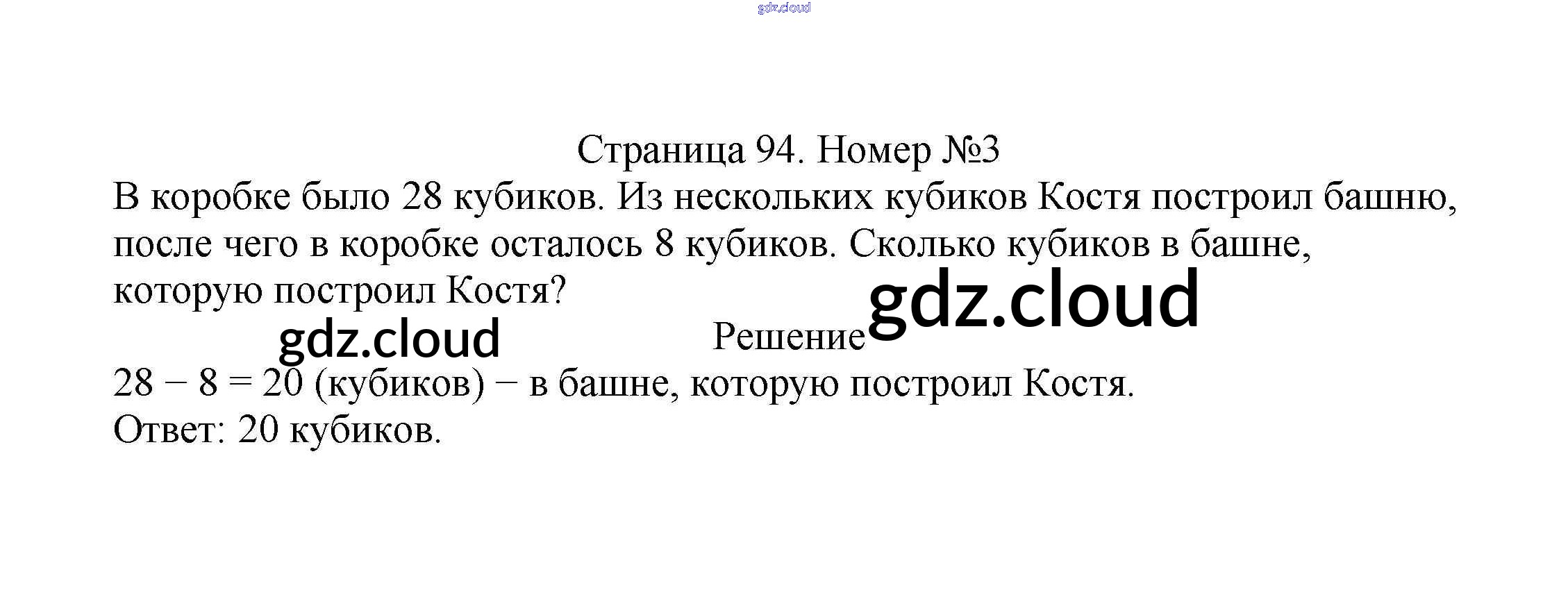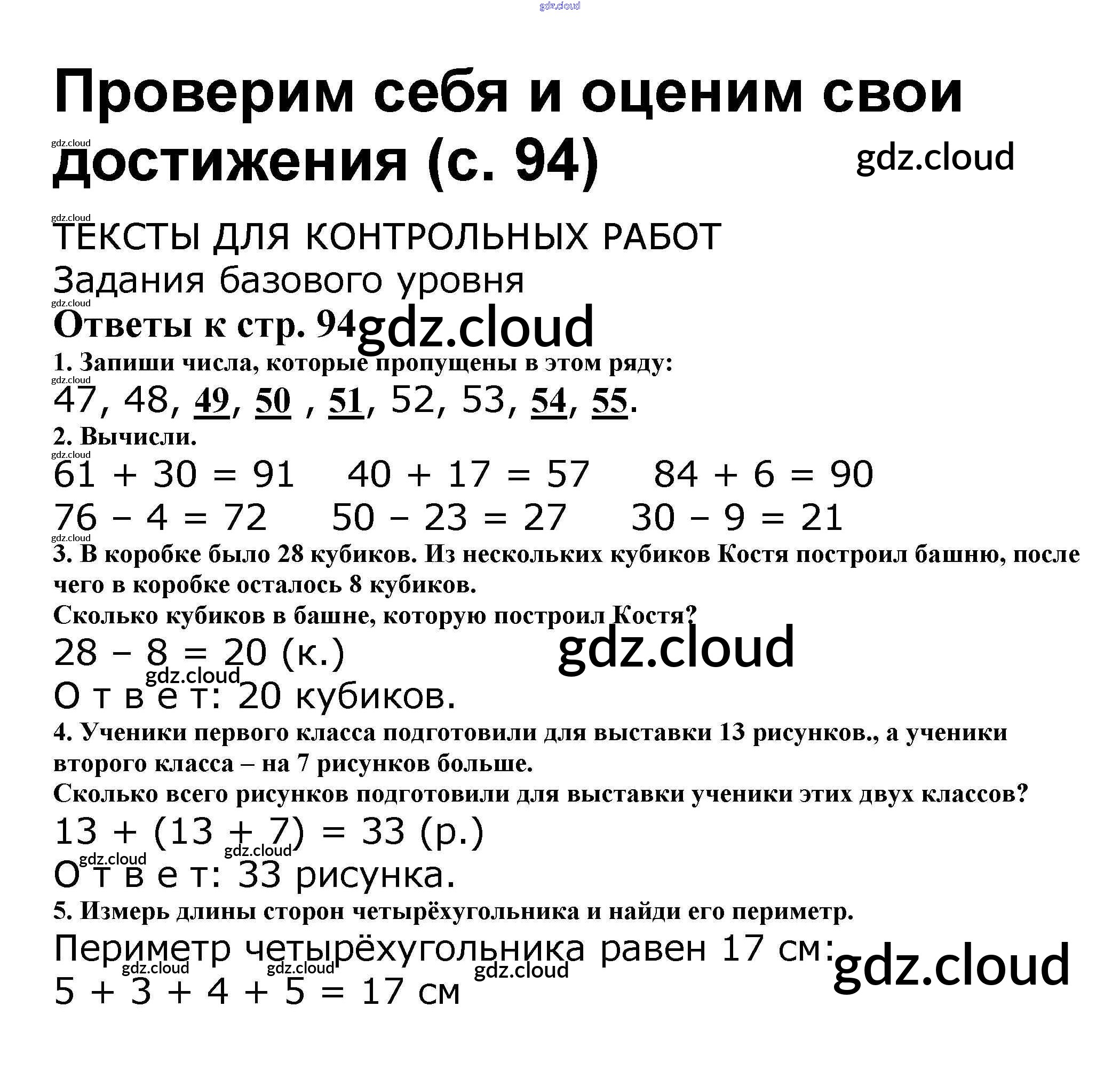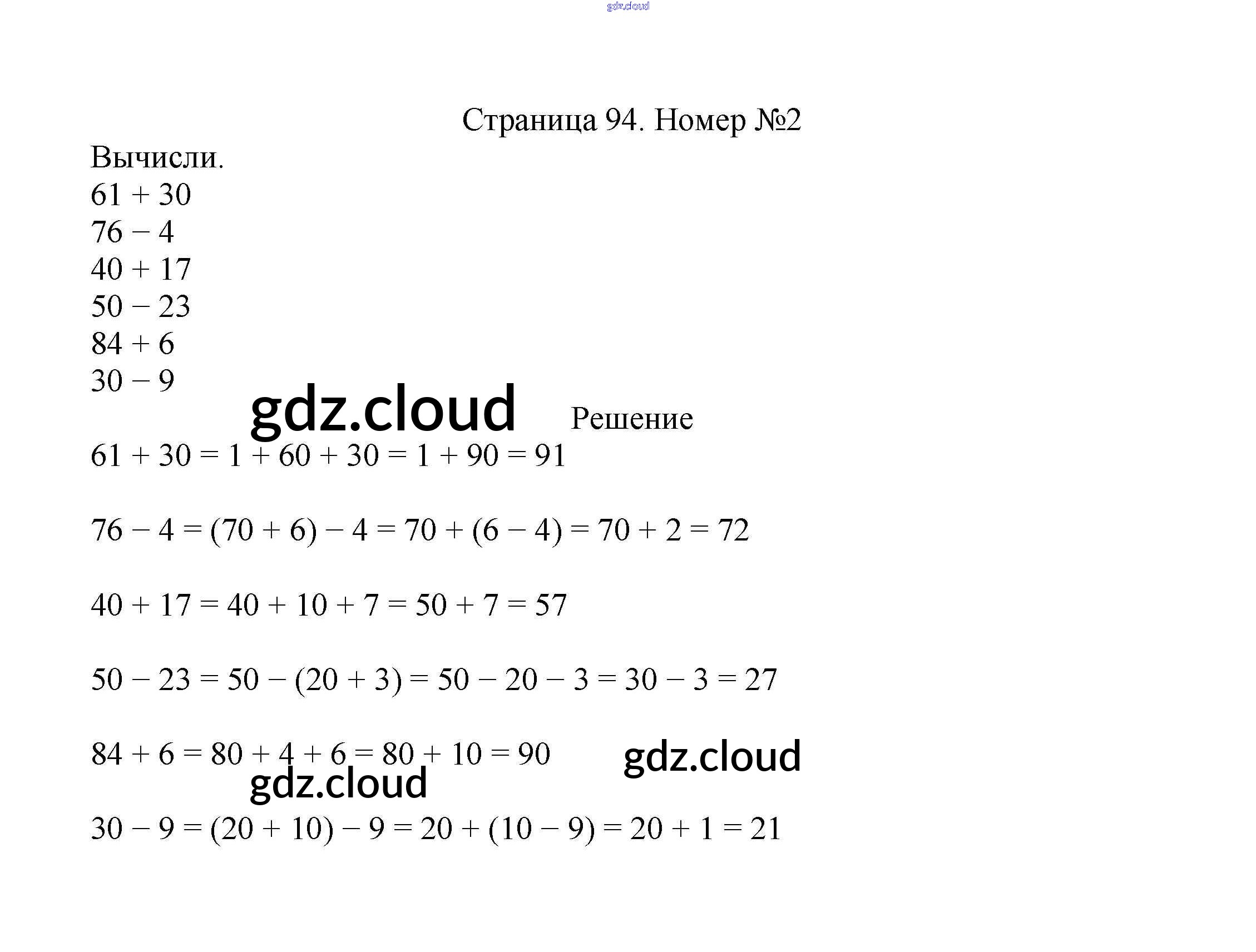 Ответ на задание стр.94 Учебник Математика за 2 (второй) класс Моро, Бантова, Бельтюкова Школа России 2015 Часть 1, 2