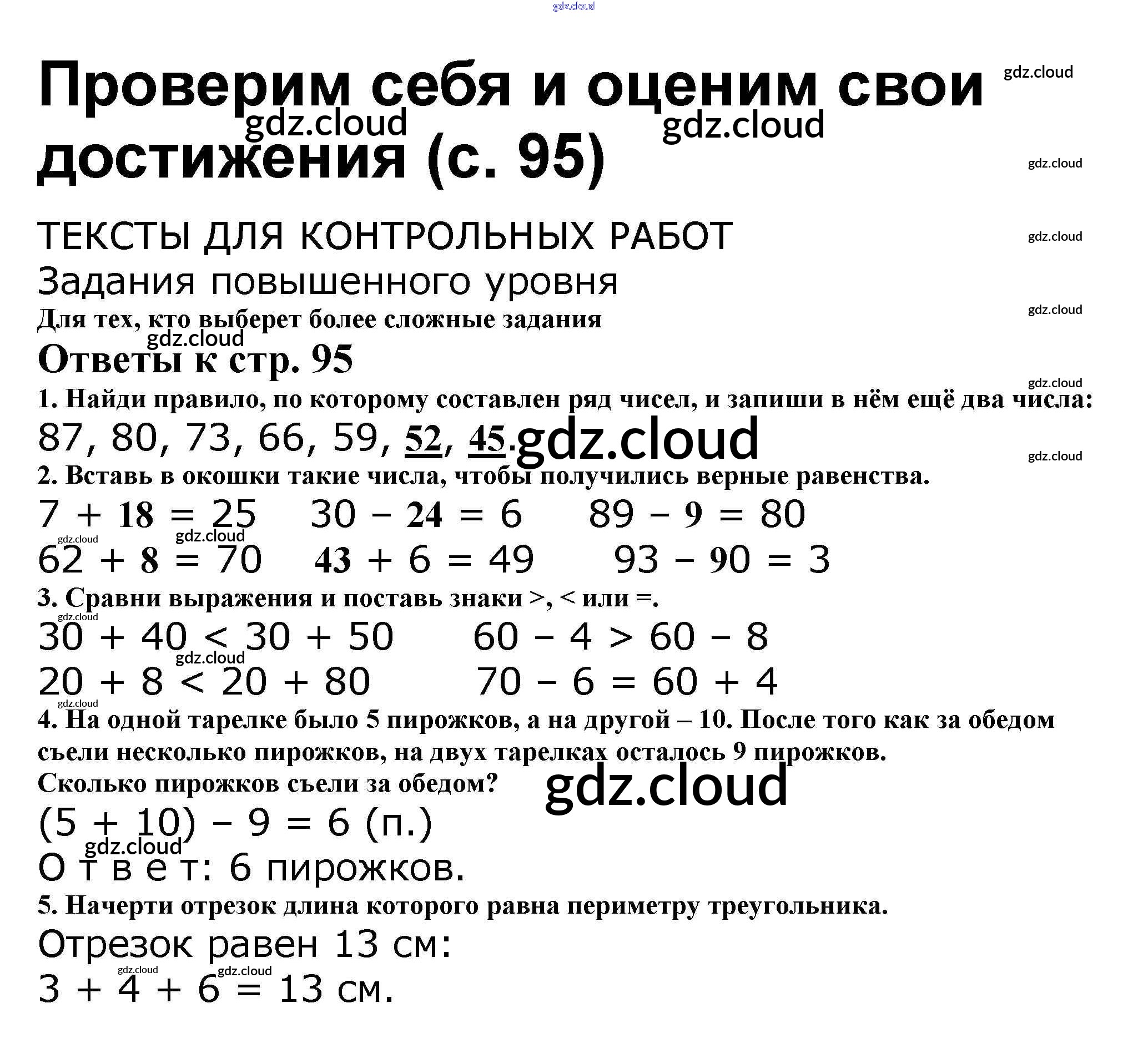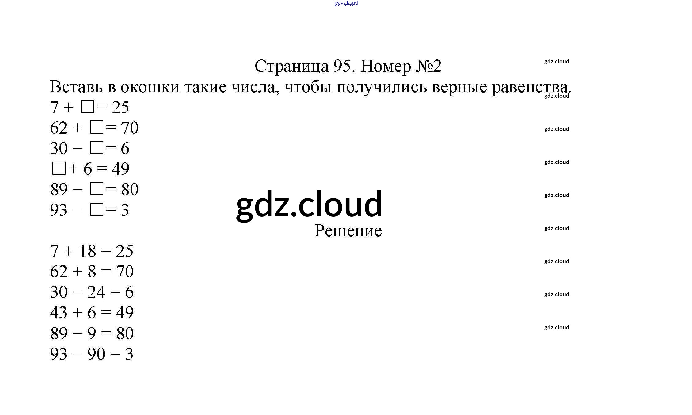 Ответ на задание стр.95 Учебник Математика за 2 (второй) класс Моро, Бантова, Бельтюкова Школа России 2015 Часть 1, 2