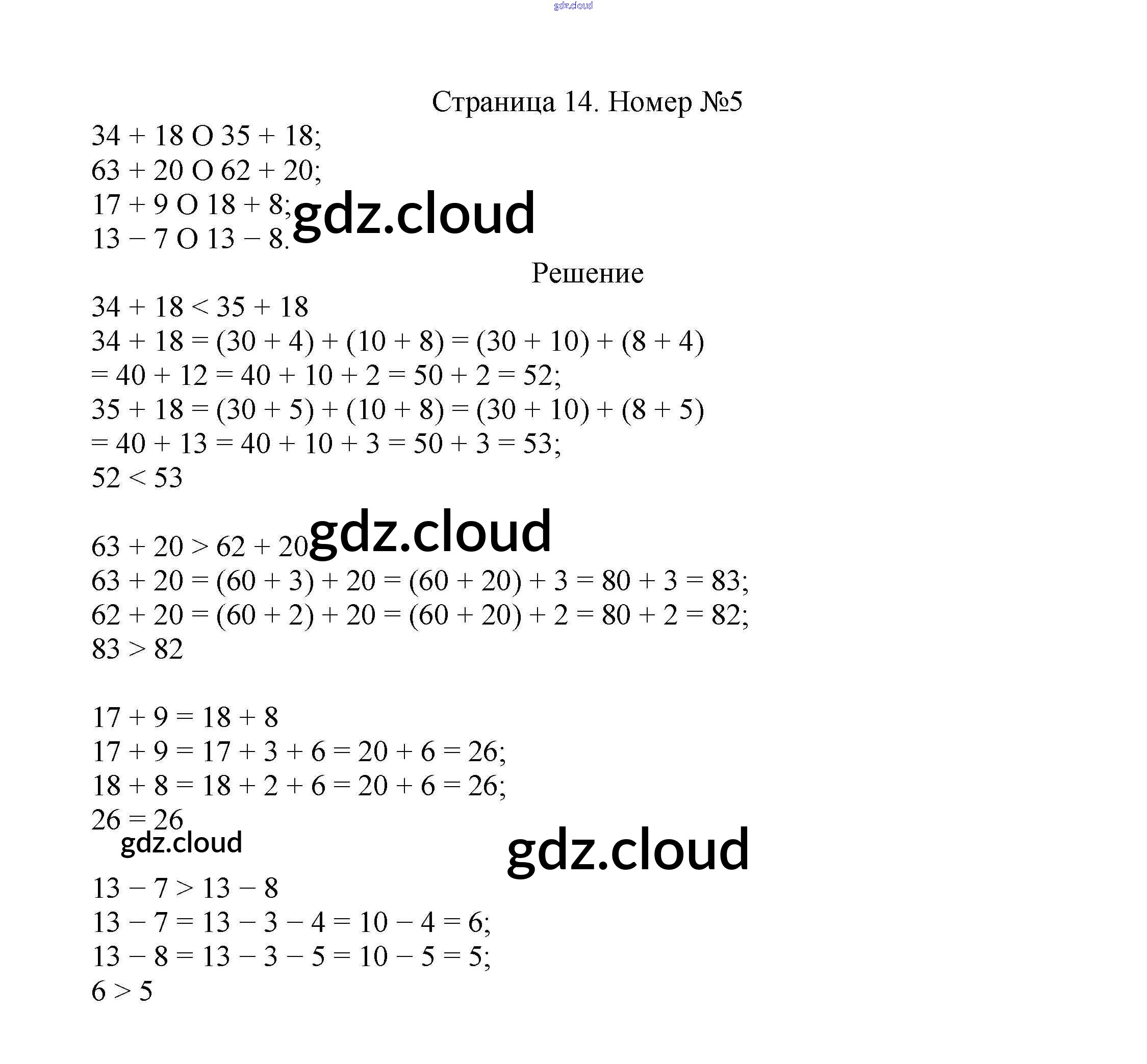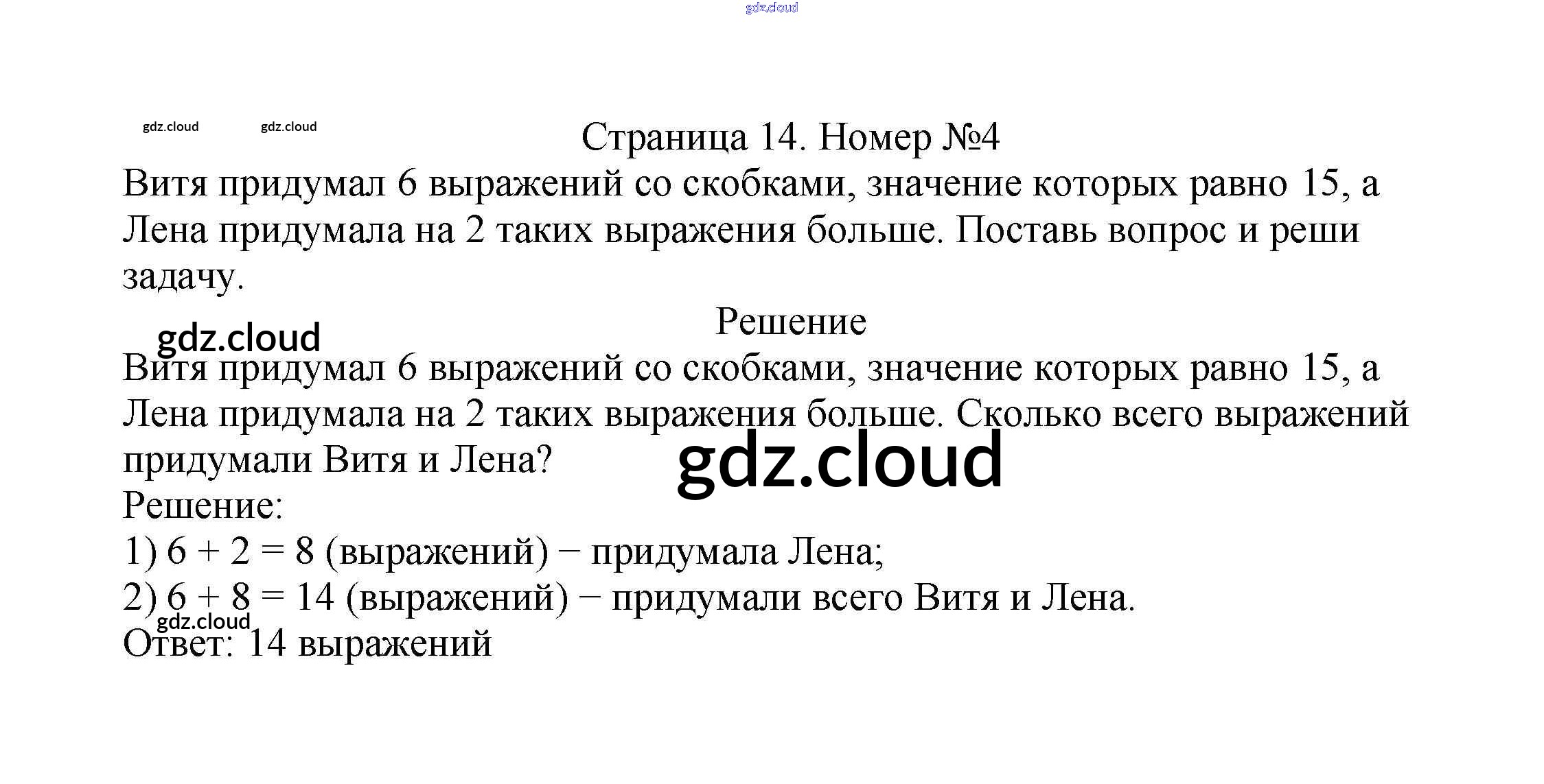 Ответ на задание стр.14 Учебник Математика за 2 (второй) класс Моро, Бантова, Бельтюкова Школа России 2015 Часть 1, 2