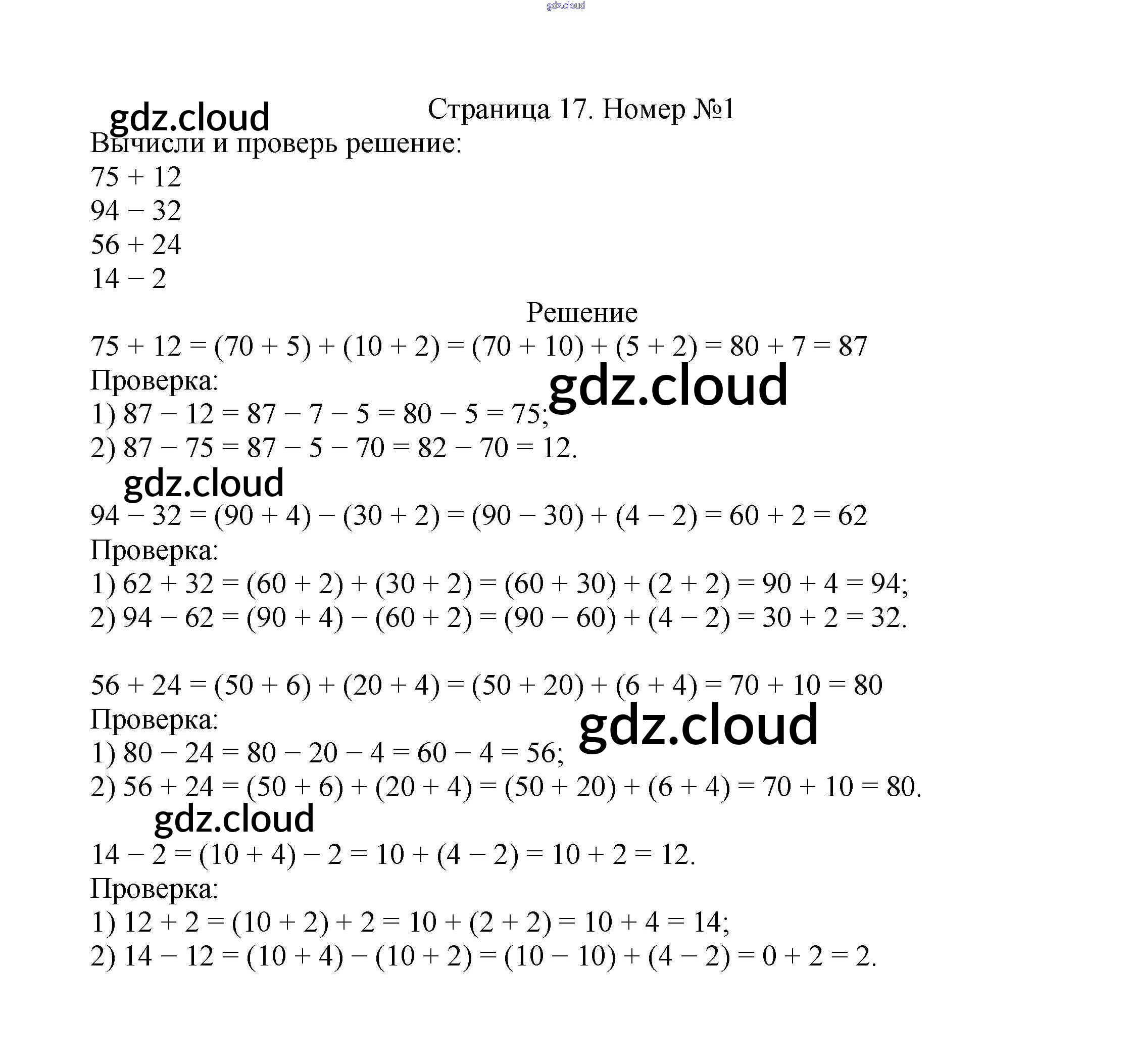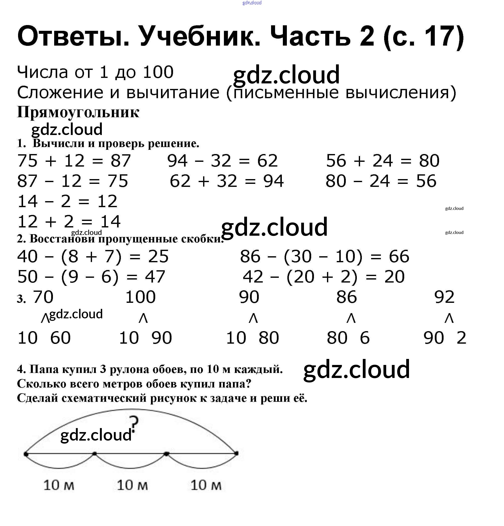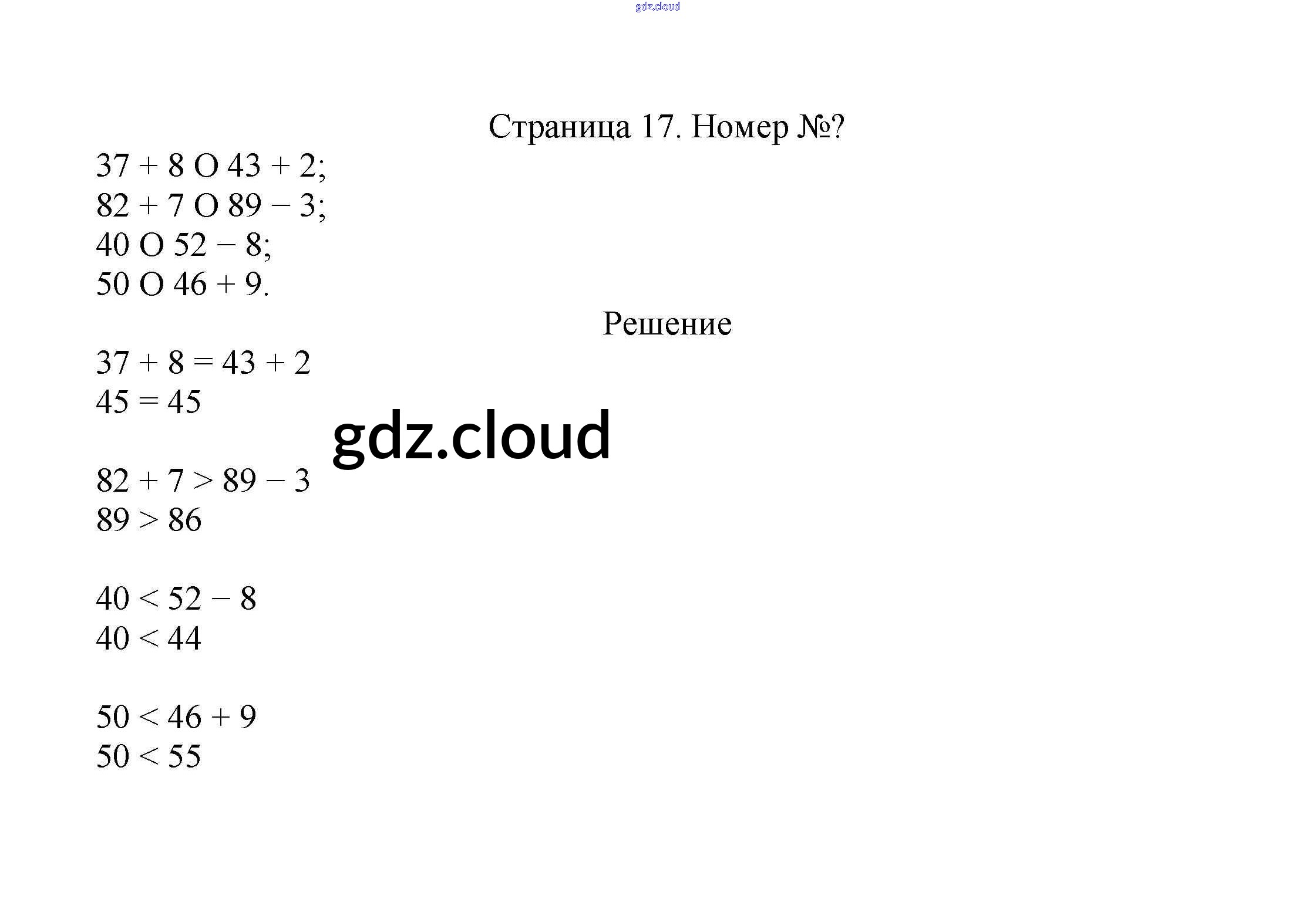 Ответ на задание стр.17 Учебник Математика за 2 (второй) класс Моро, Бантова, Бельтюкова Школа России 2015 Часть 1, 2