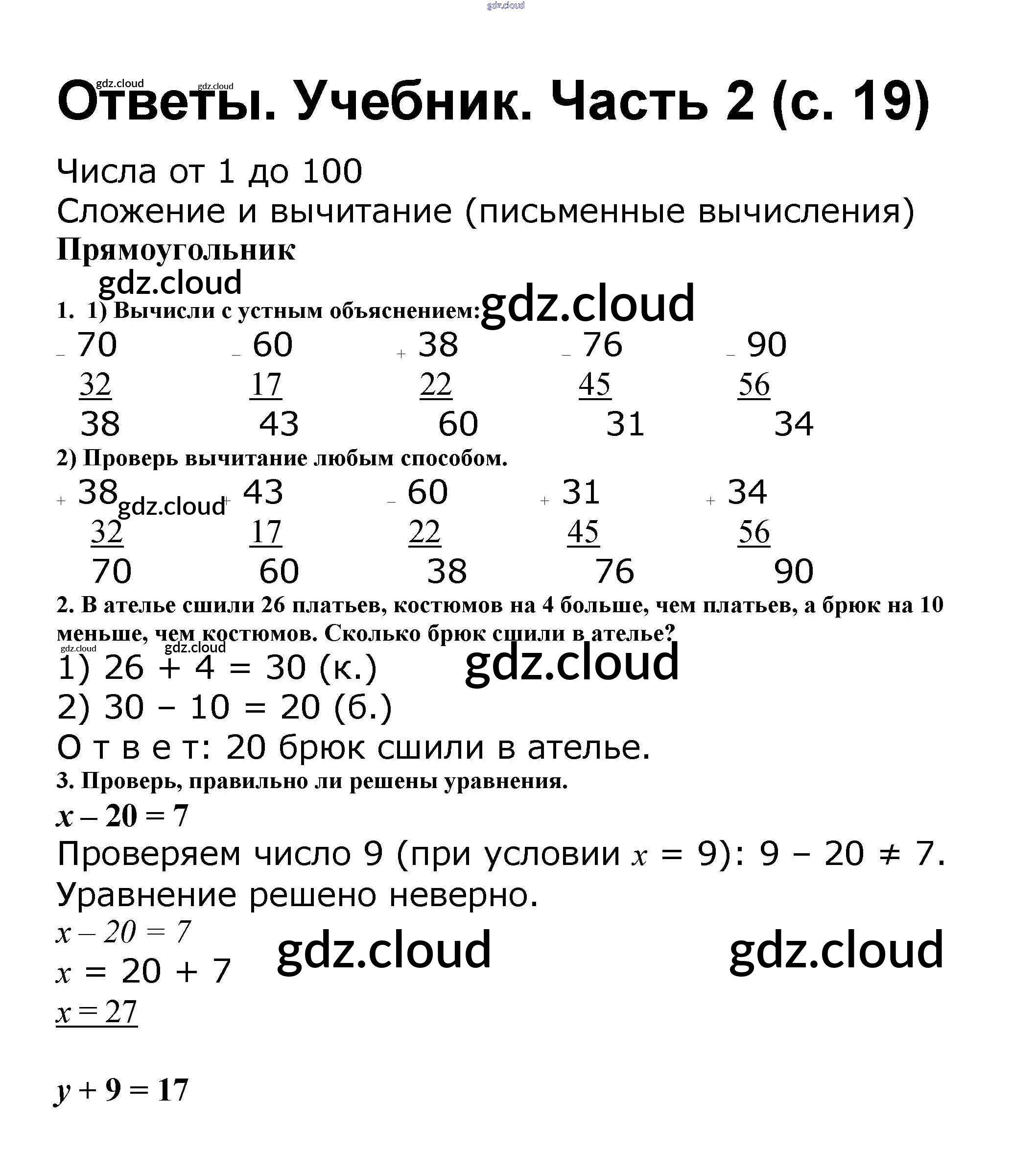 Ответ на задание стр.19 Учебник Математика за 2 (второй) класс Моро, Бантова, Бельтюкова Школа России 2015 Часть 1, 2