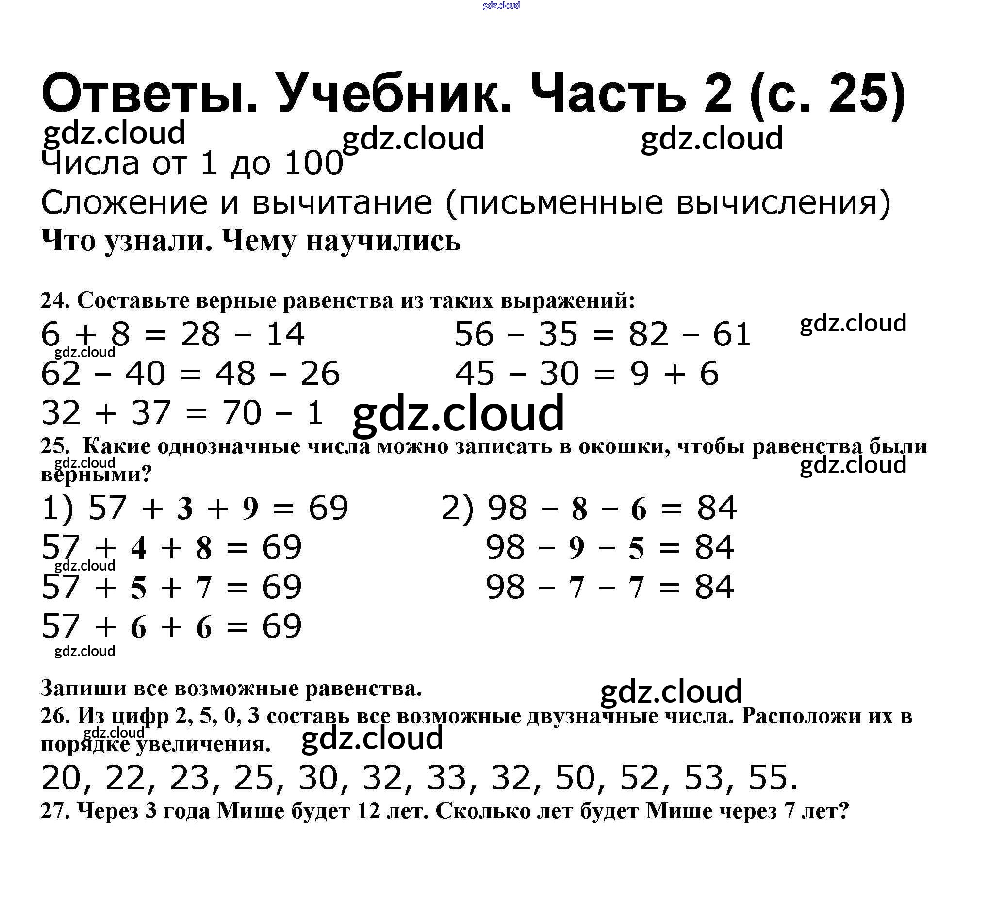 Ответ на задание стр.25 Учебник Математика за 2 (второй) класс Моро, Бантова, Бельтюкова Школа России 2015 Часть 1, 2