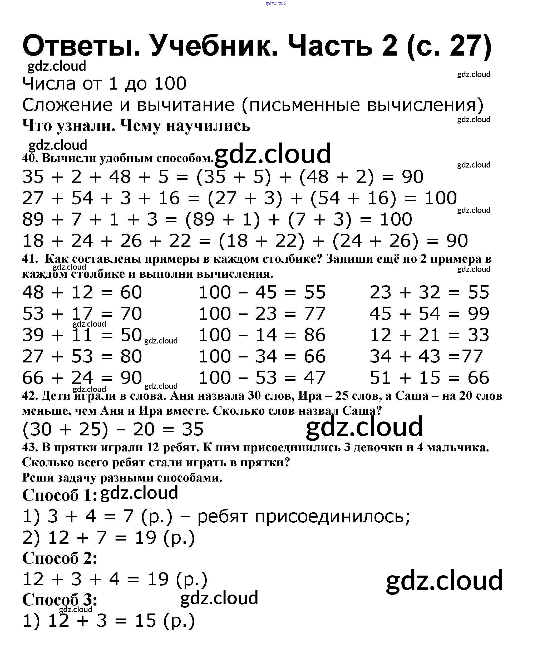 Ответ на задание стр.27 Учебник Математика за 2 (второй) класс Моро, Бантова, Бельтюкова Школа России 2015 Часть 1, 2