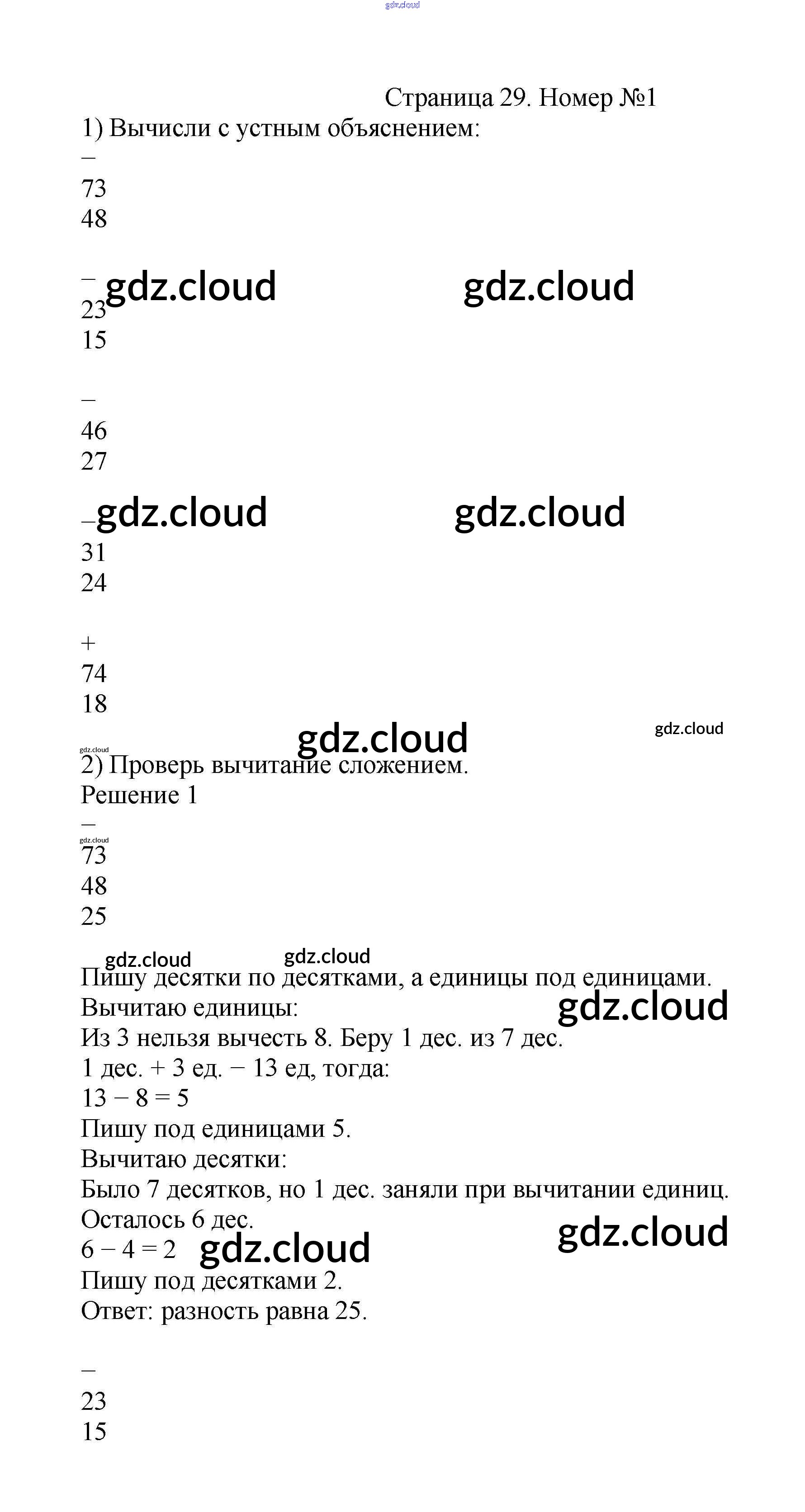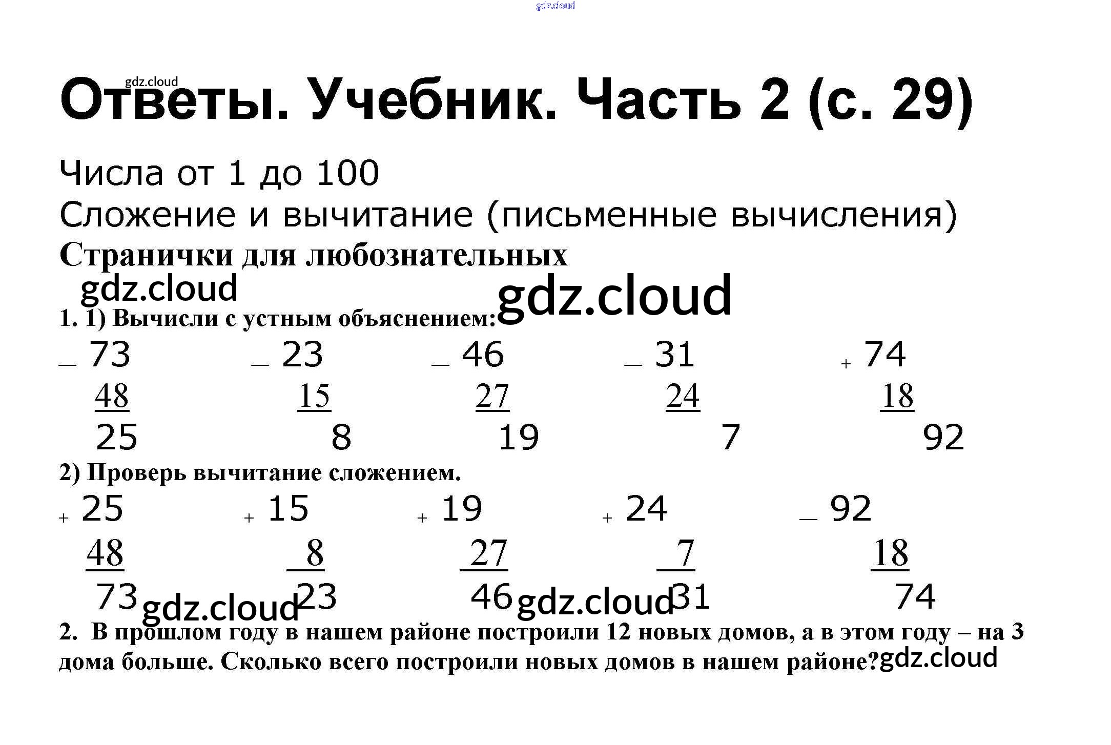 Ответ на задание стр.29 Учебник Математика за 2 (второй) класс Моро, Бантова, Бельтюкова Школа России 2015 Часть 1, 2