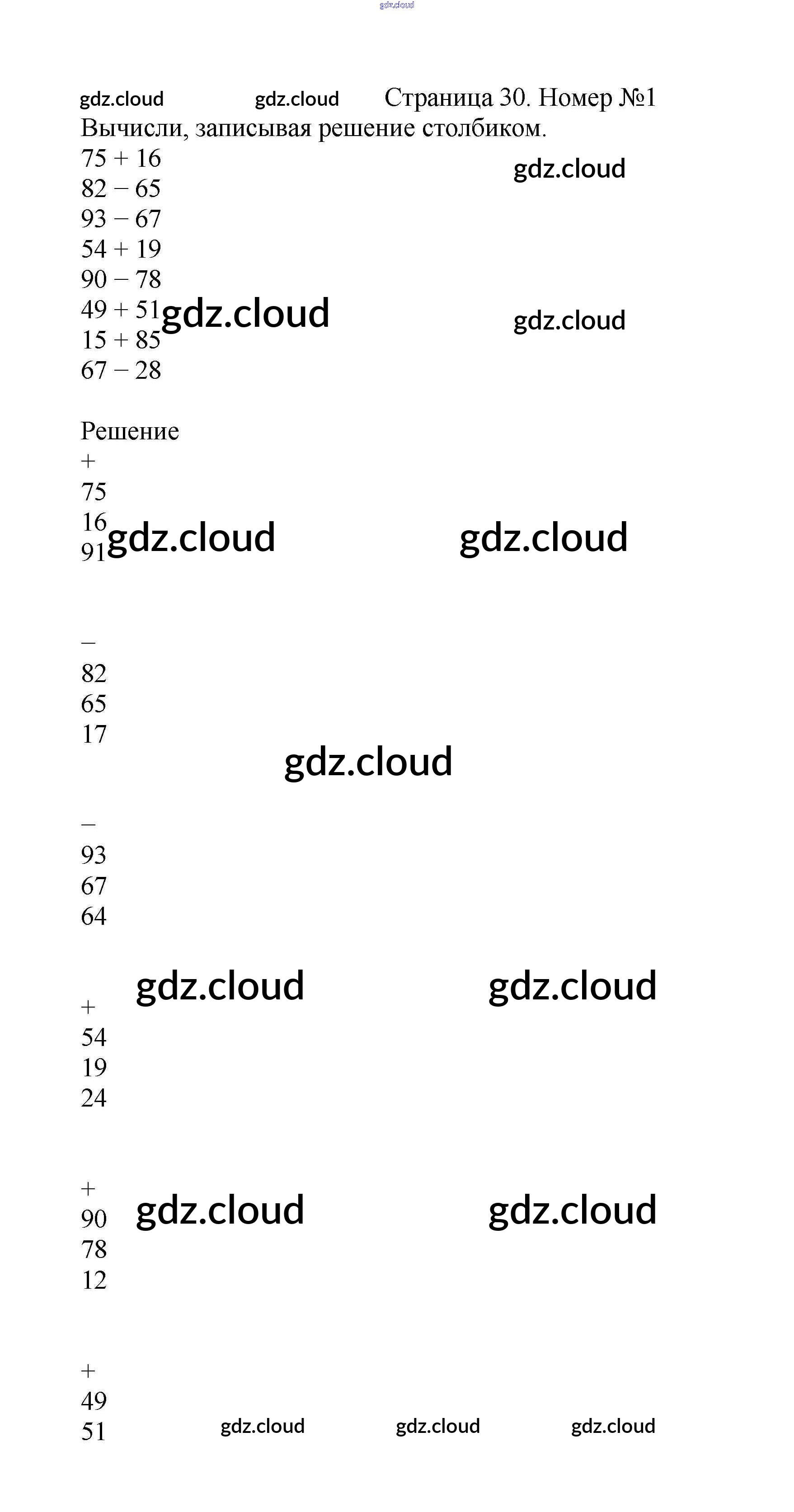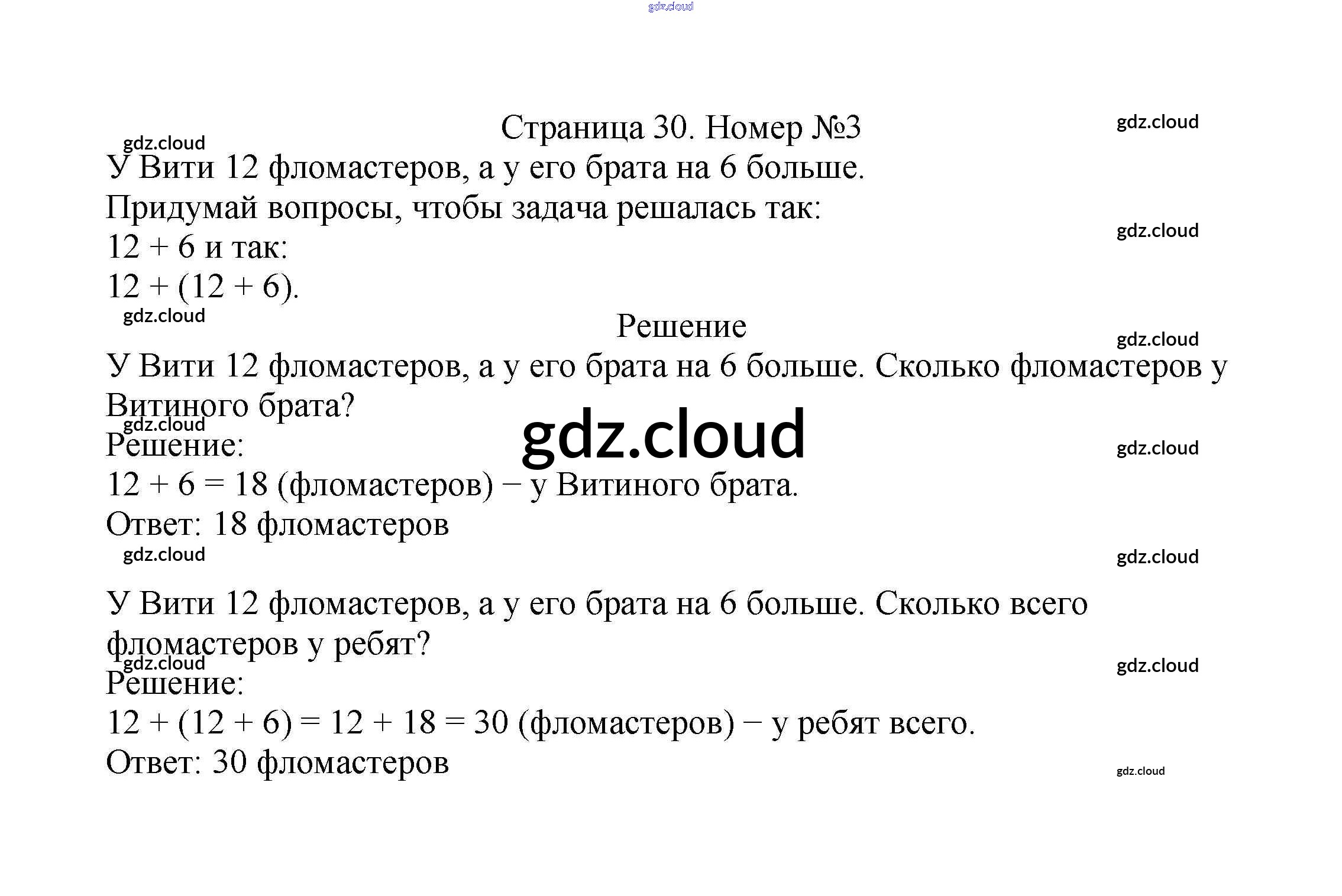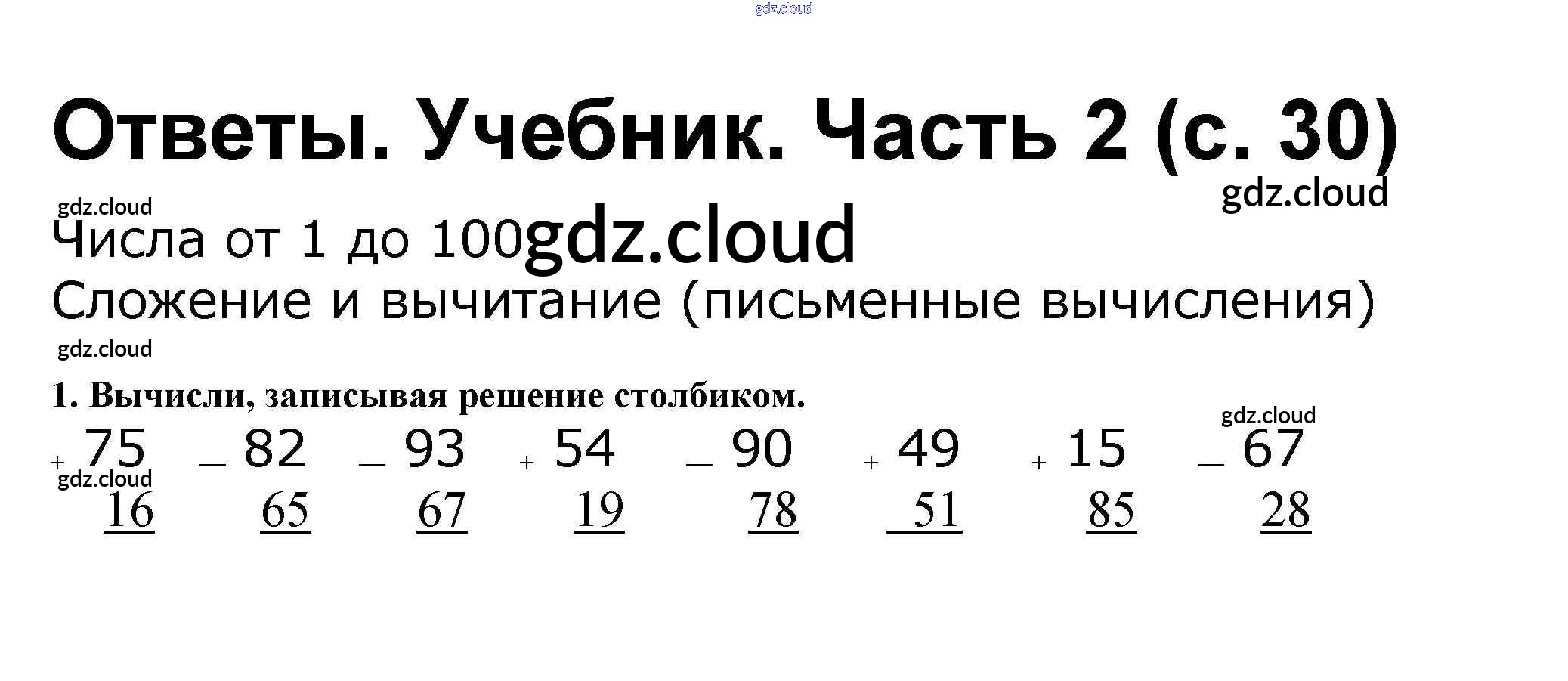 Ответ на задание стр.30 Учебник Математика за 2 (второй) класс Моро, Бантова, Бельтюкова Школа России 2015 Часть 1, 2