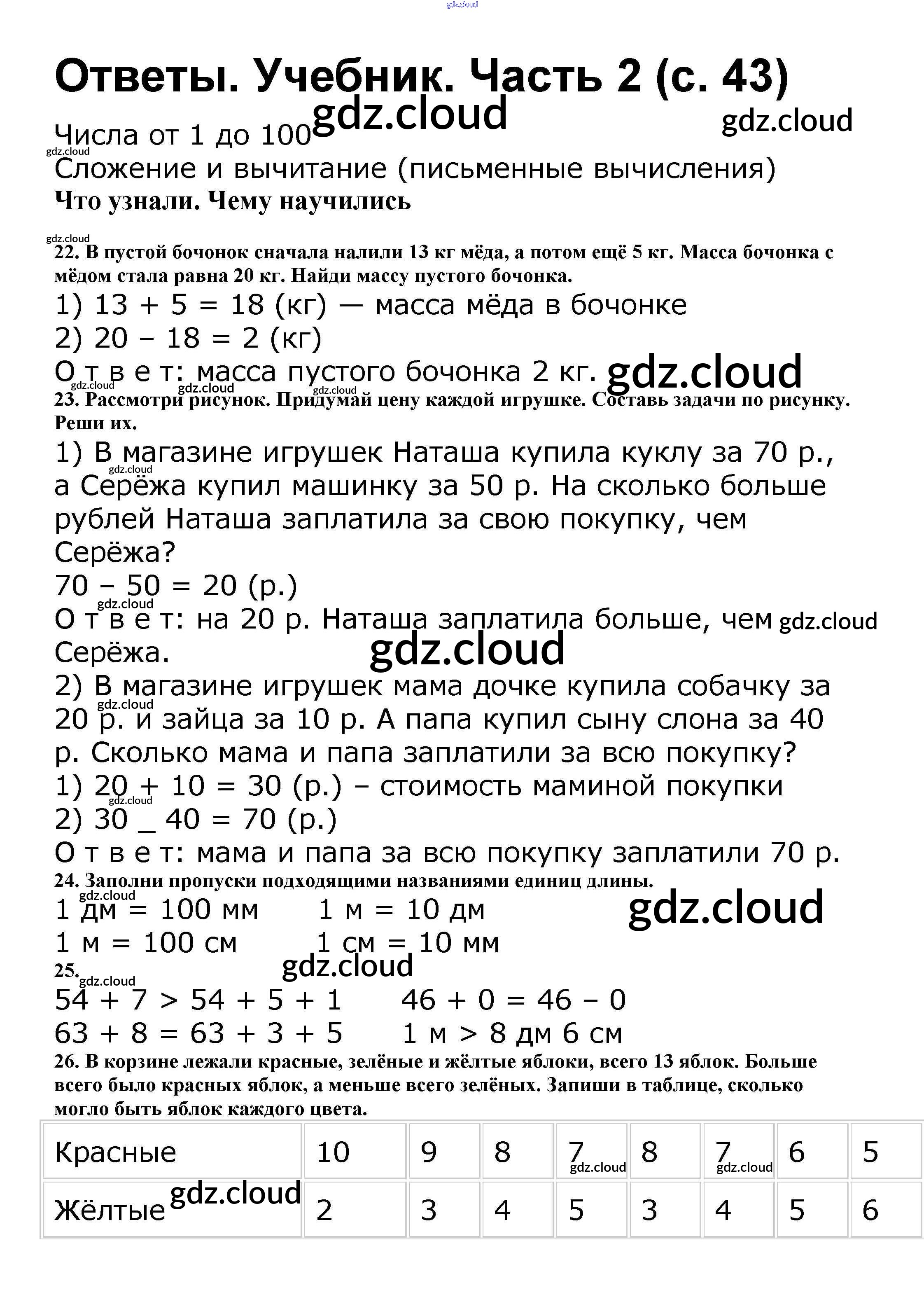 Ответ на задание стр.43 Учебник Математика за 2 (второй) класс Моро, Бантова, Бельтюкова Школа России 2015 Часть 1, 2