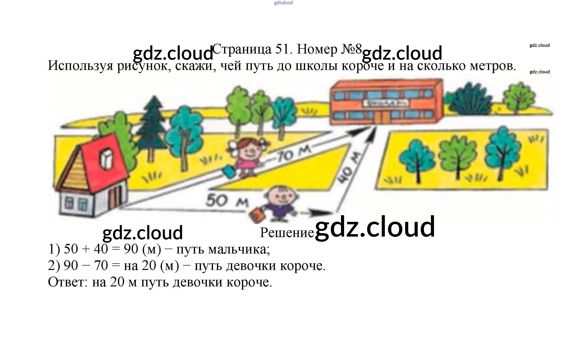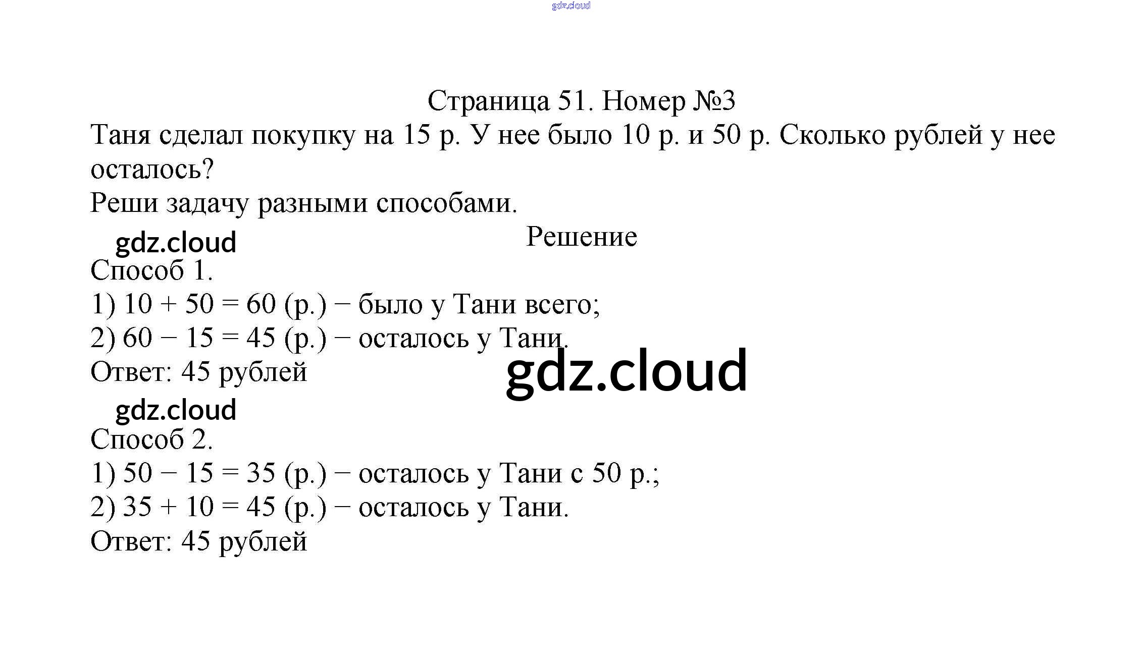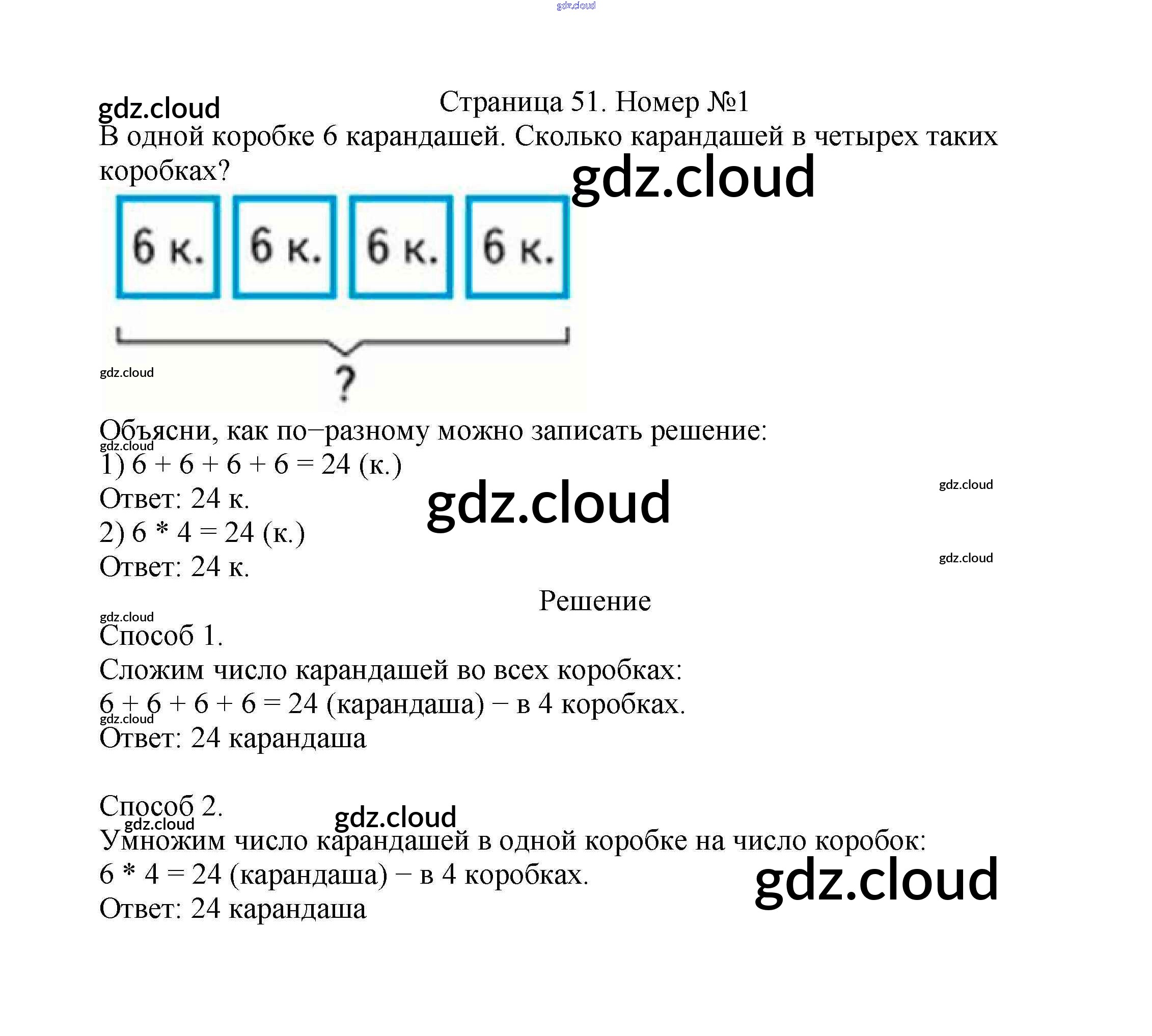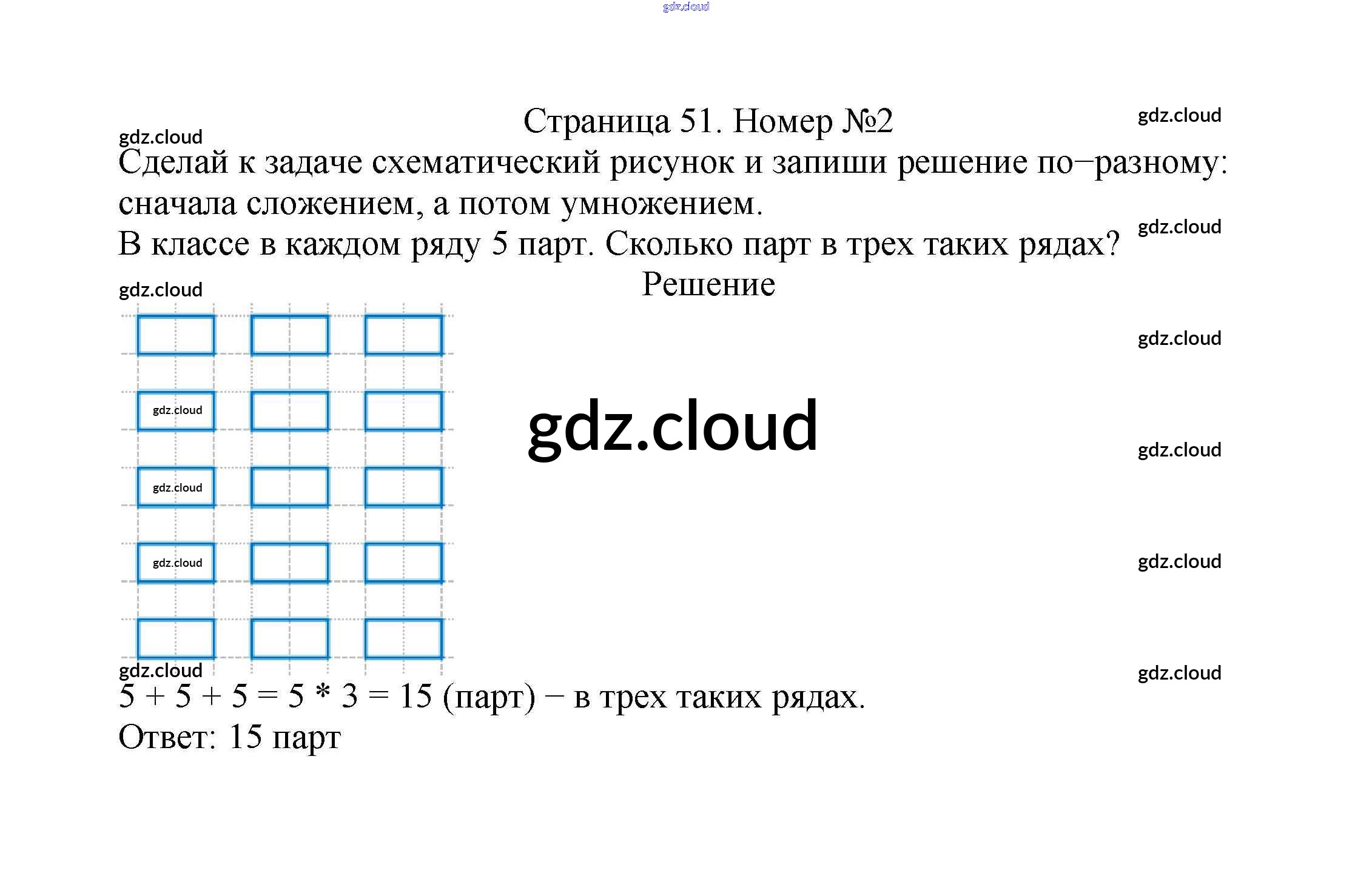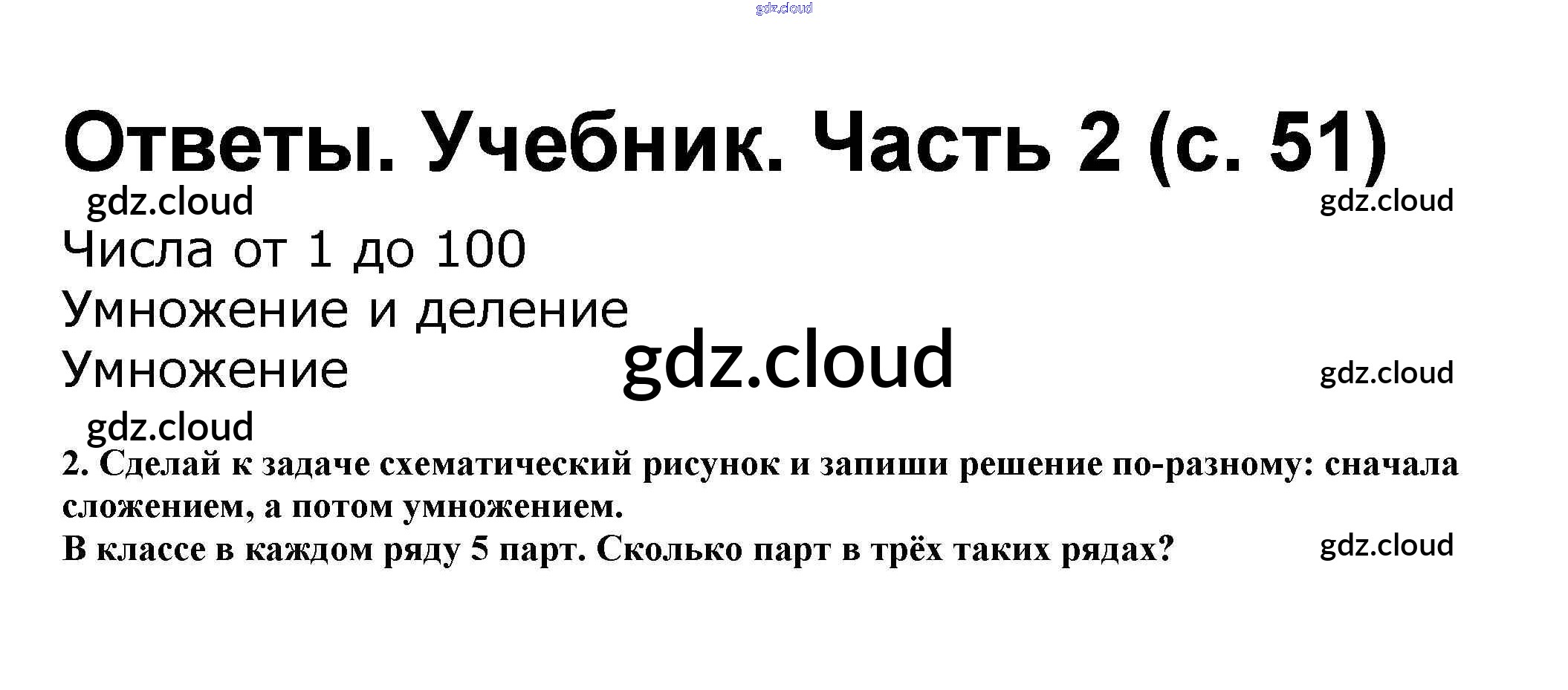 Ответ на задание стр.51 Учебник Математика за 2 (второй) класс Моро, Бантова, Бельтюкова Школа России 2015 Часть 1, 2