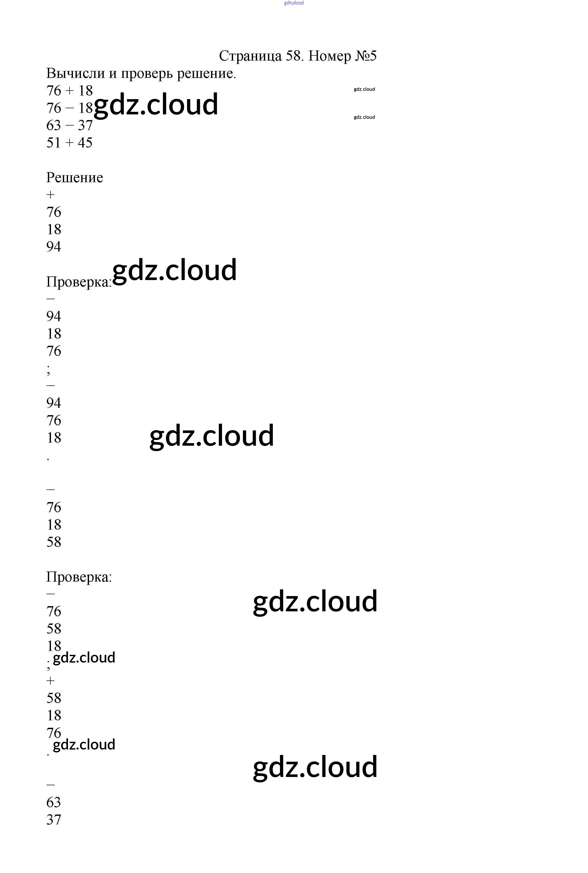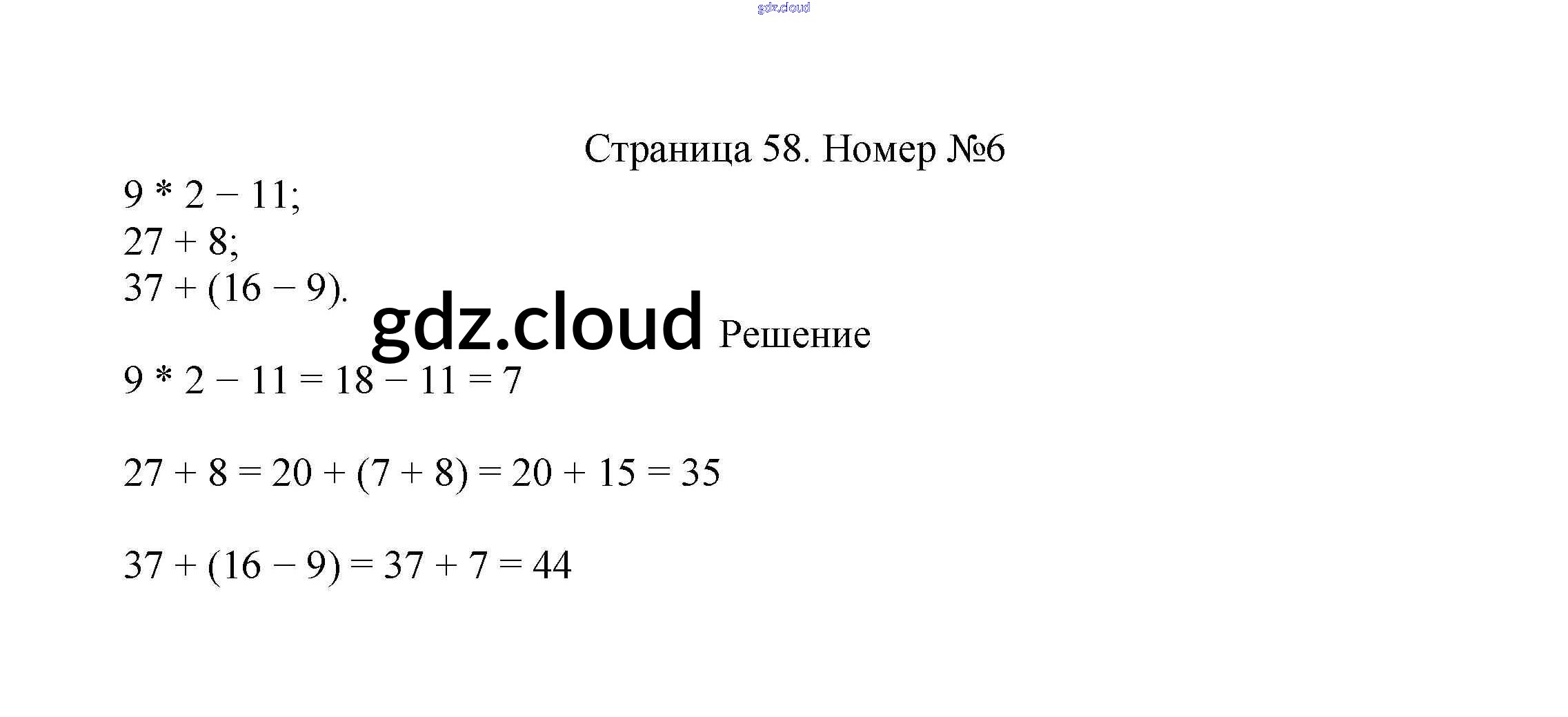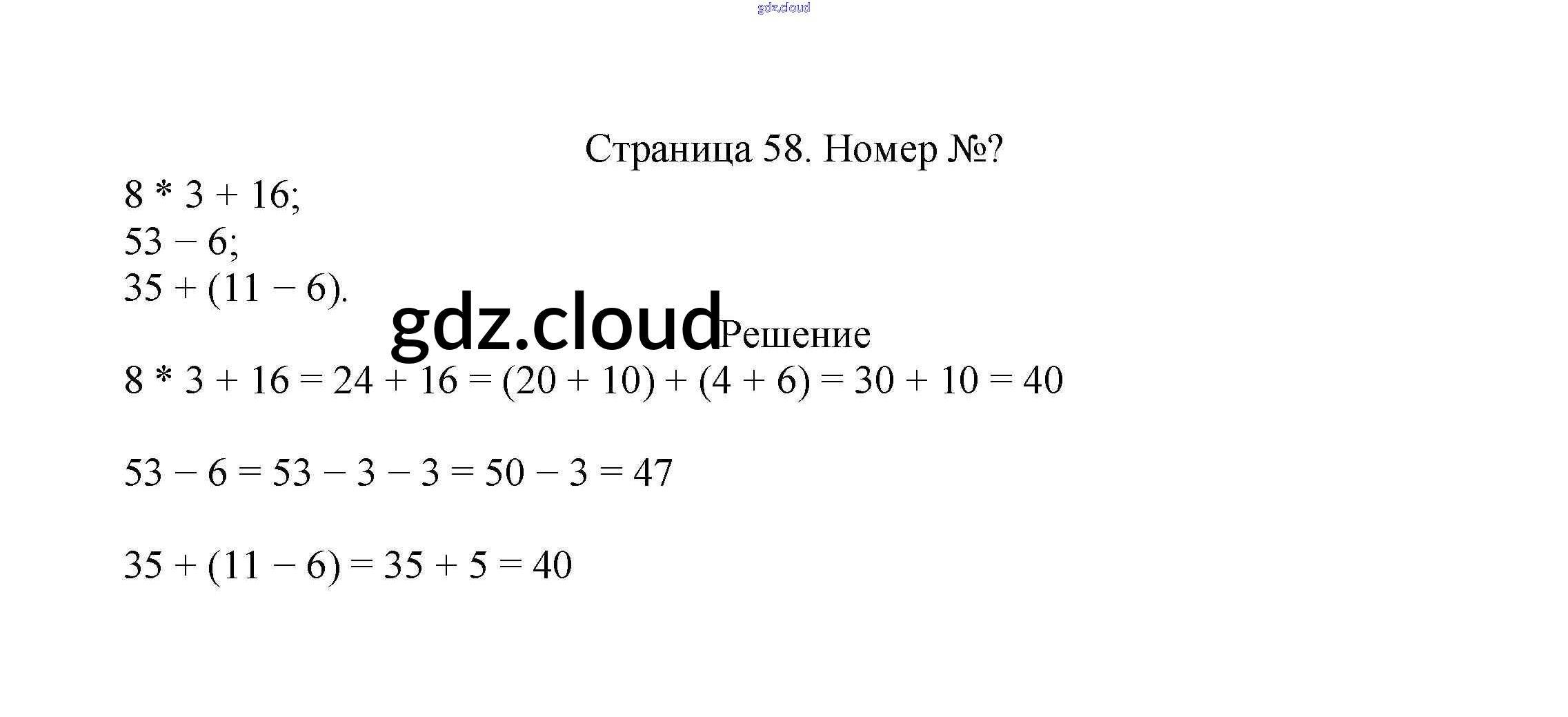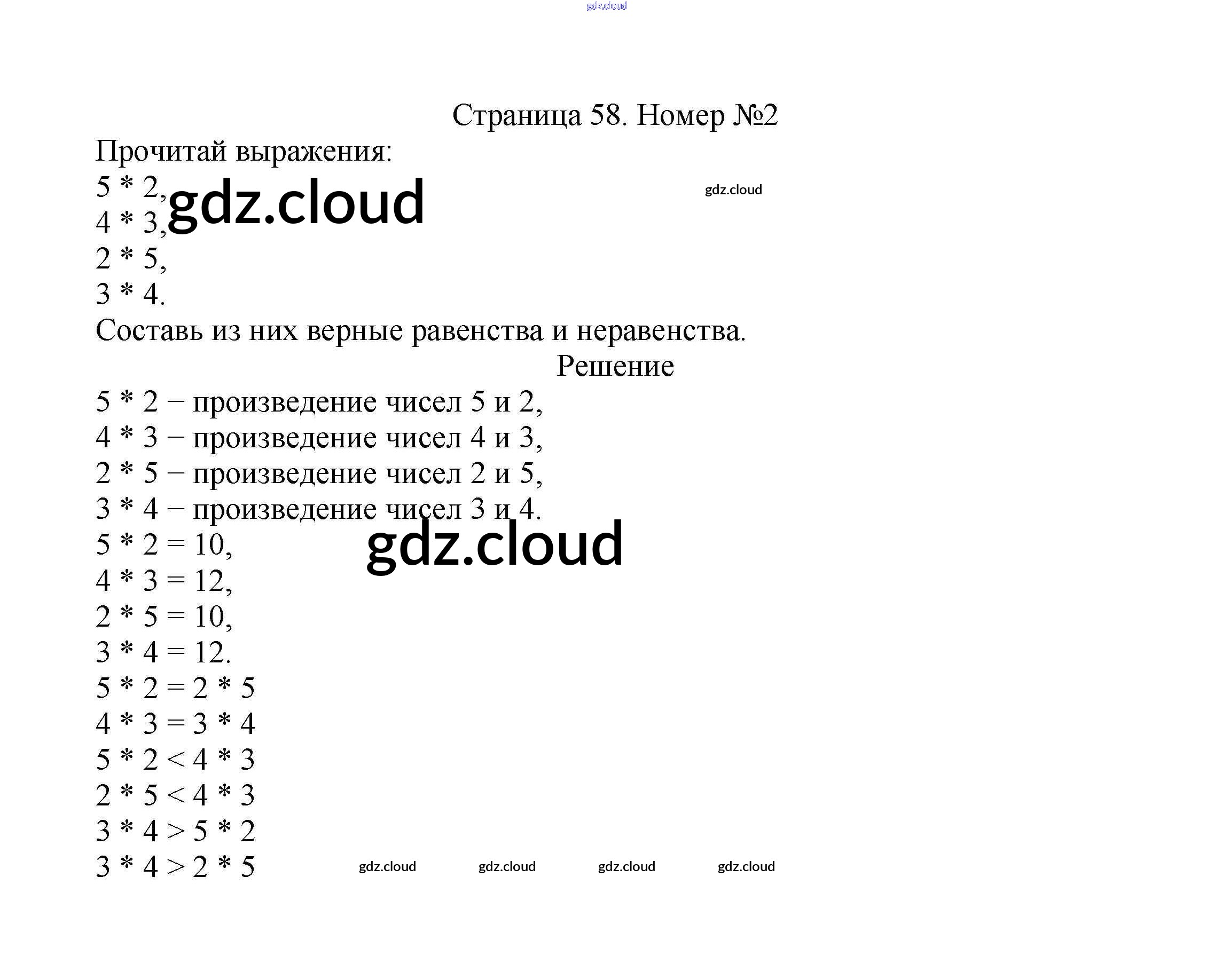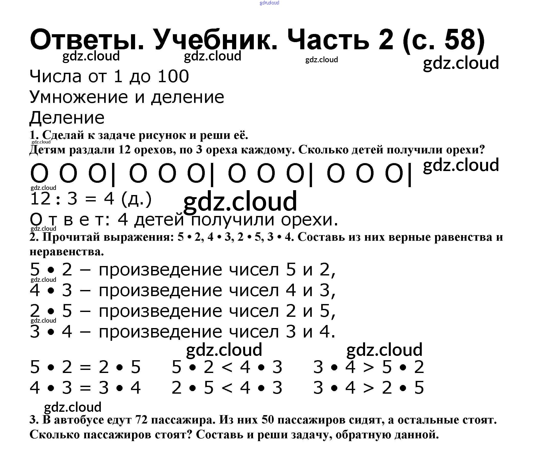 Ответ на задание стр.58 Учебник Математика за 2 (второй) класс Моро, Бантова, Бельтюкова Школа России 2015 Часть 1, 2