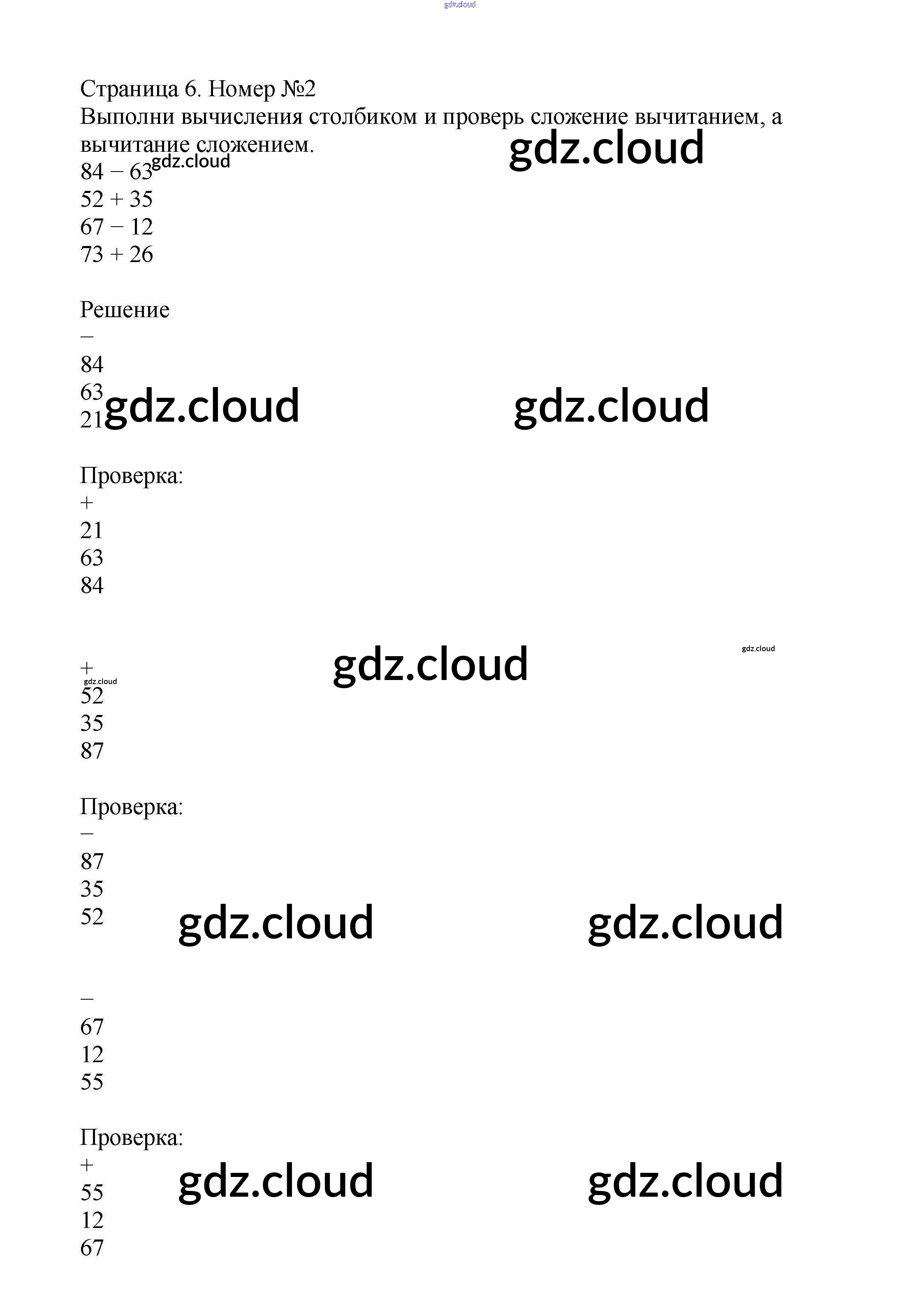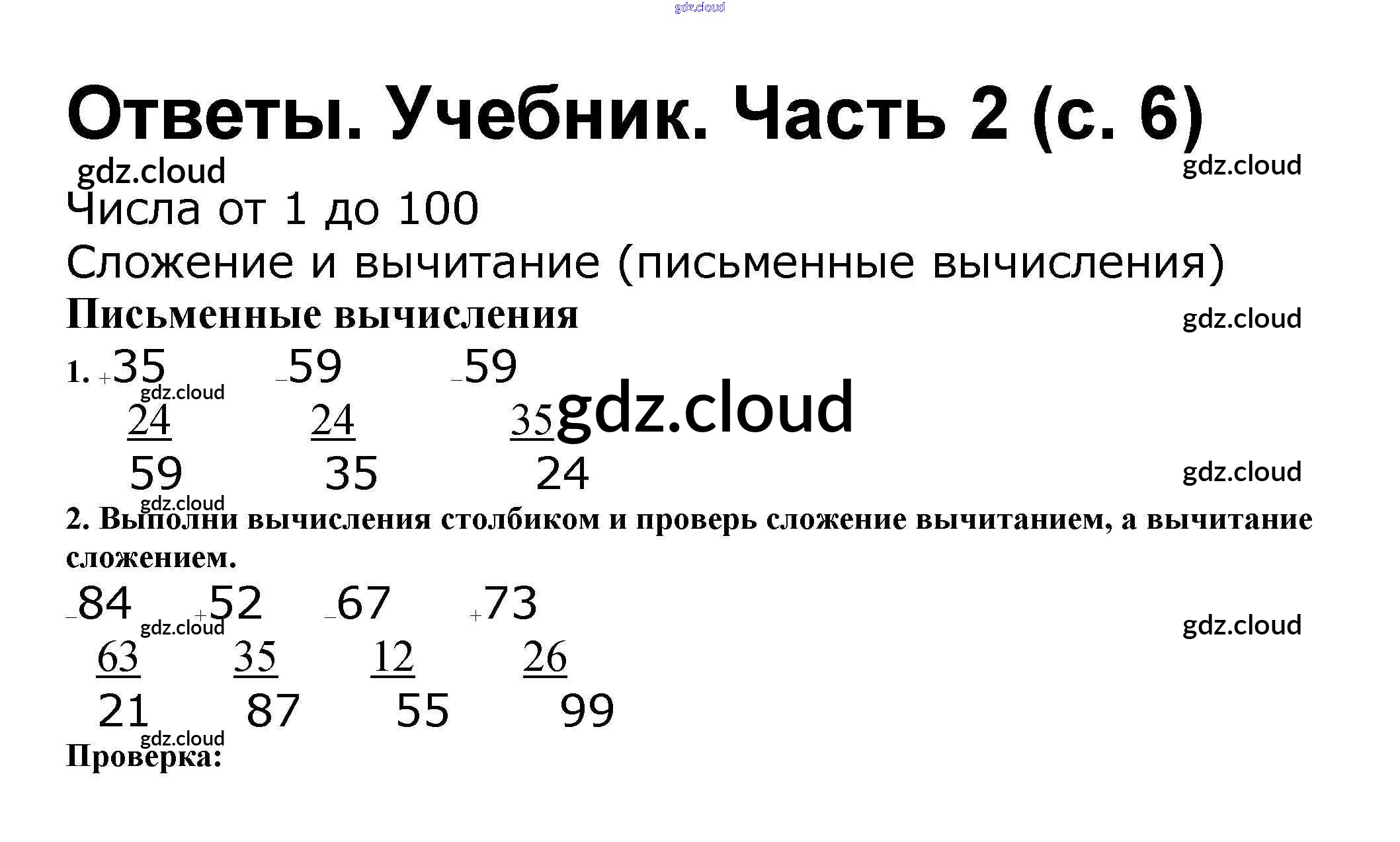 Ответ на задание стр.6 Учебник Математика за 2 (второй) класс Моро, Бантова, Бельтюкова Школа России 2015 Часть 1, 2