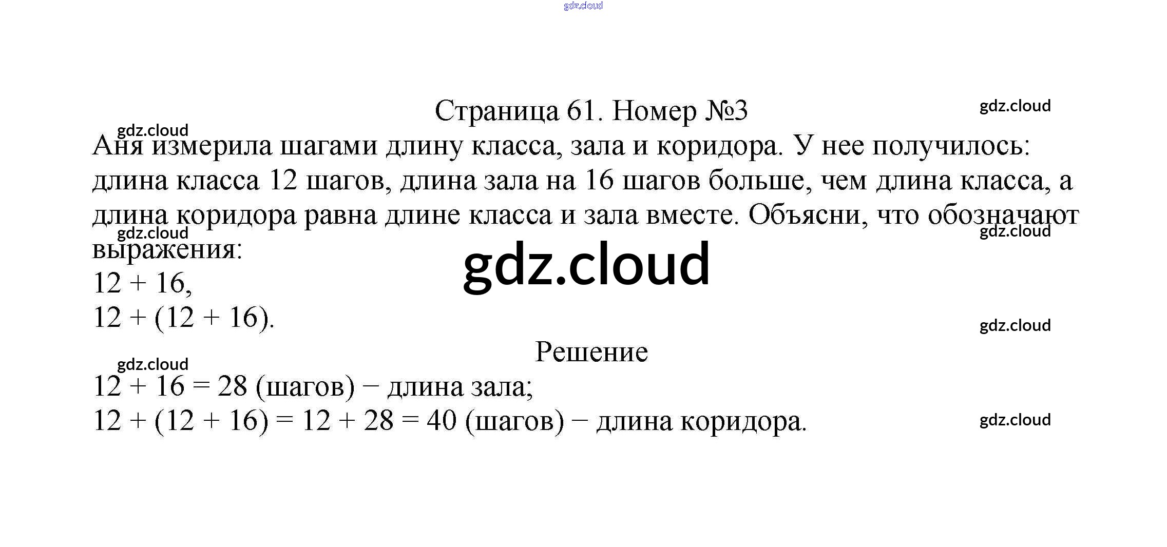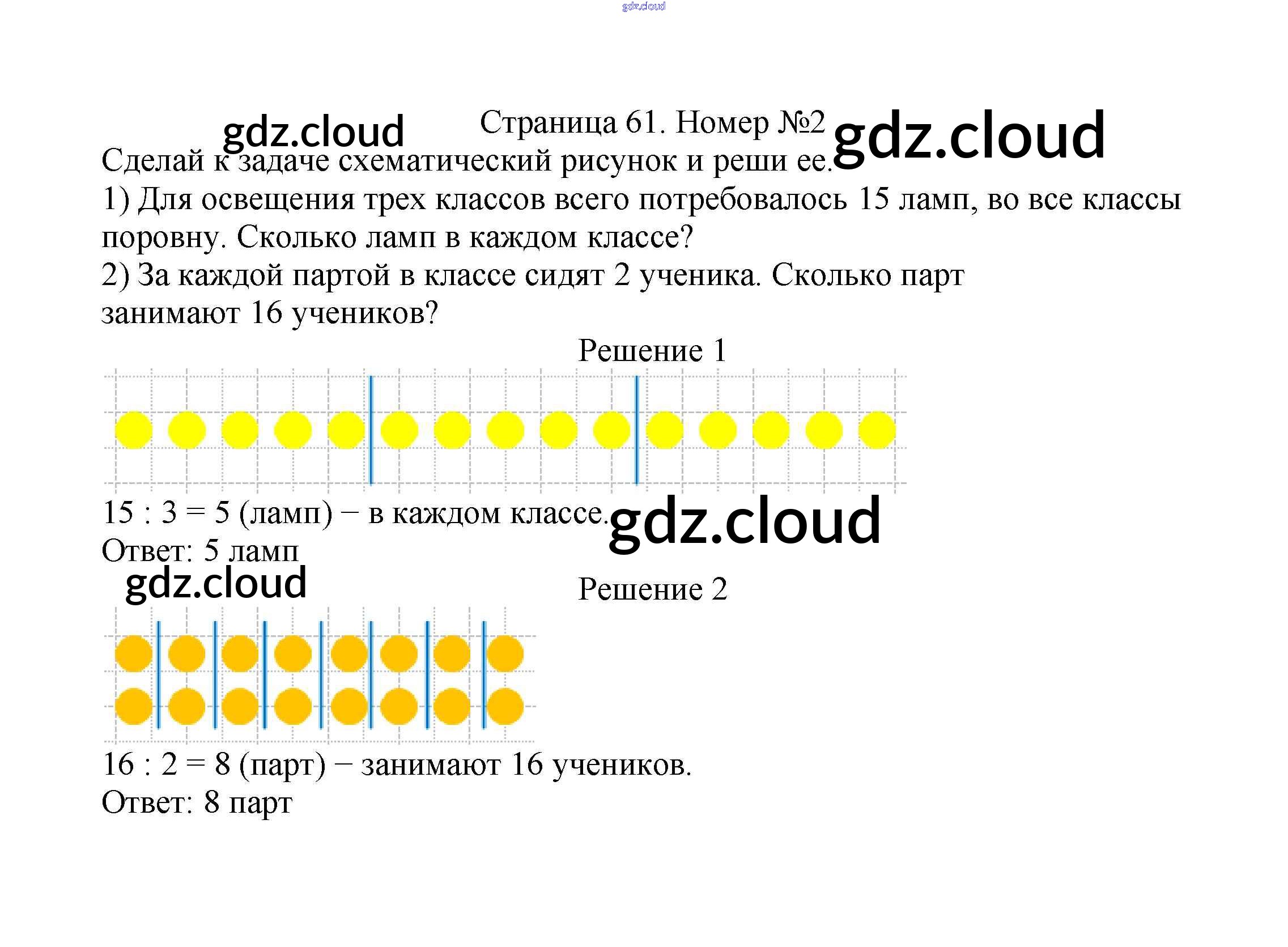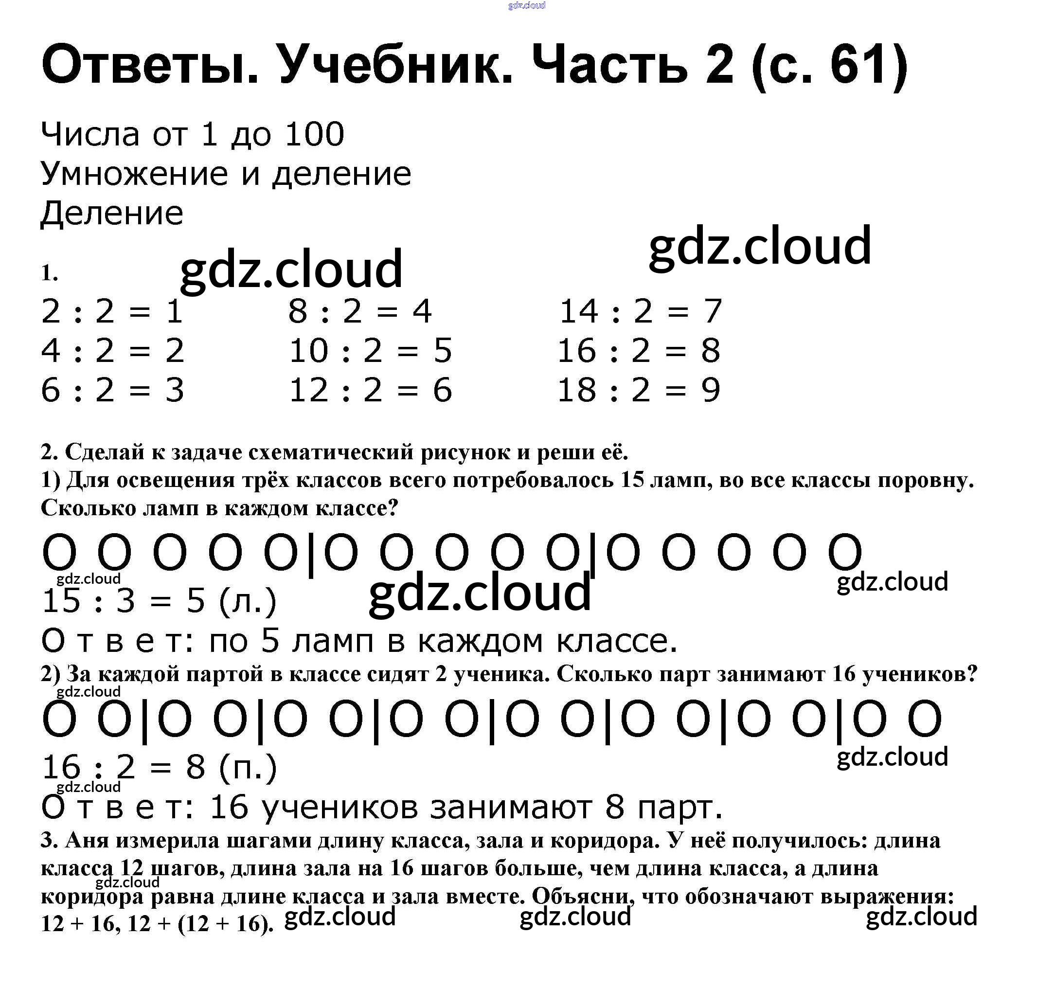 Ответ на задание стр.61 Учебник Математика за 2 (второй) класс Моро, Бантова, Бельтюкова Школа России 2015 Часть 1, 2