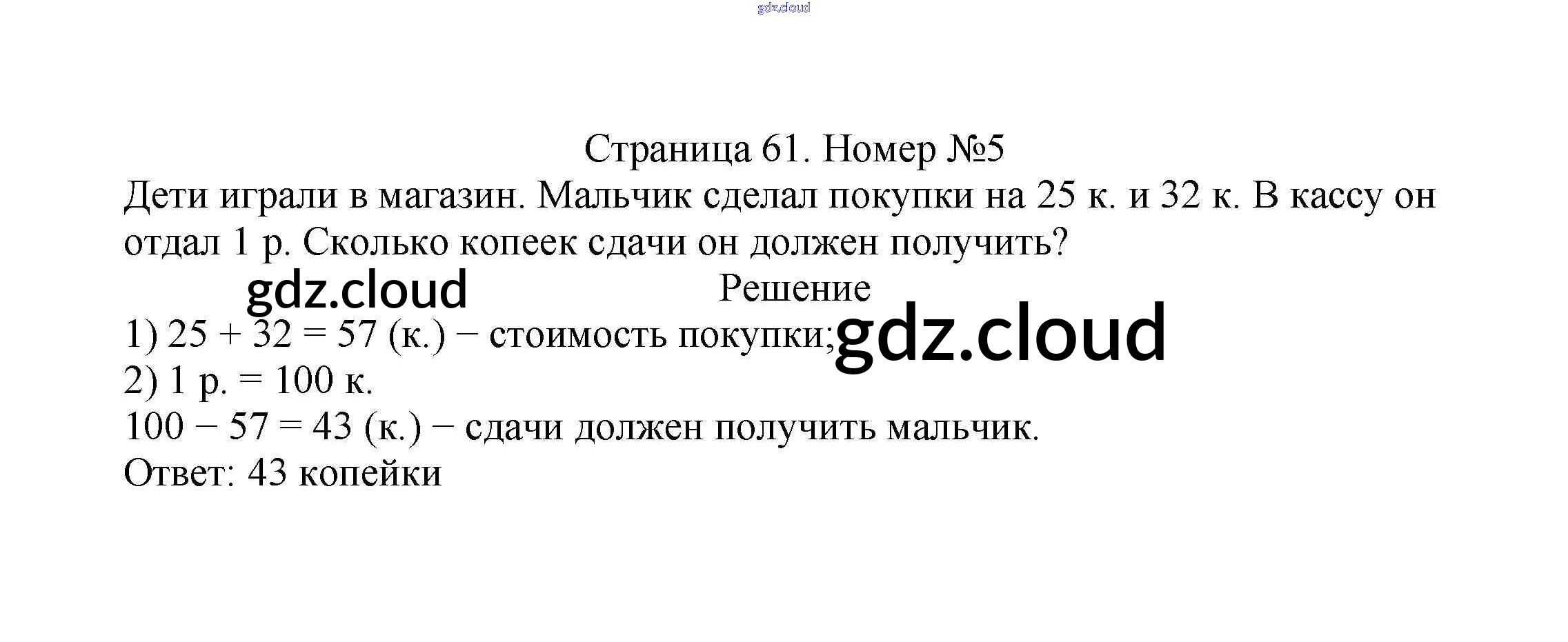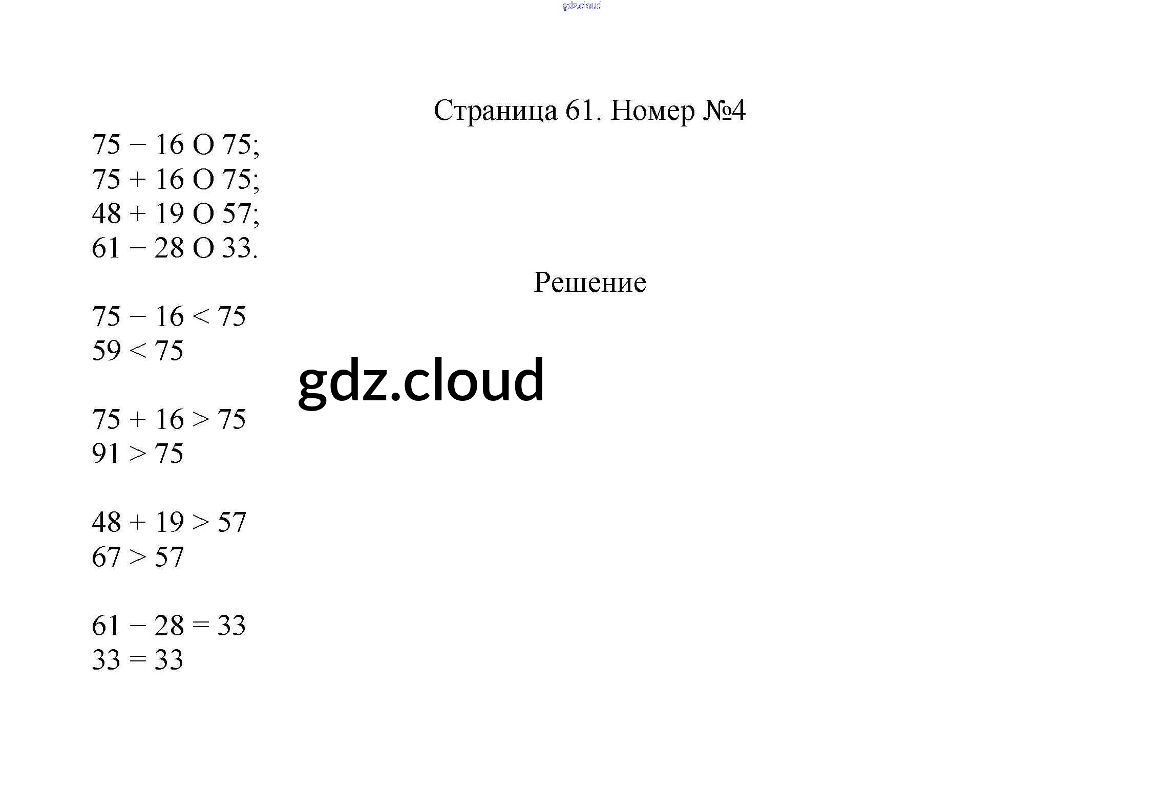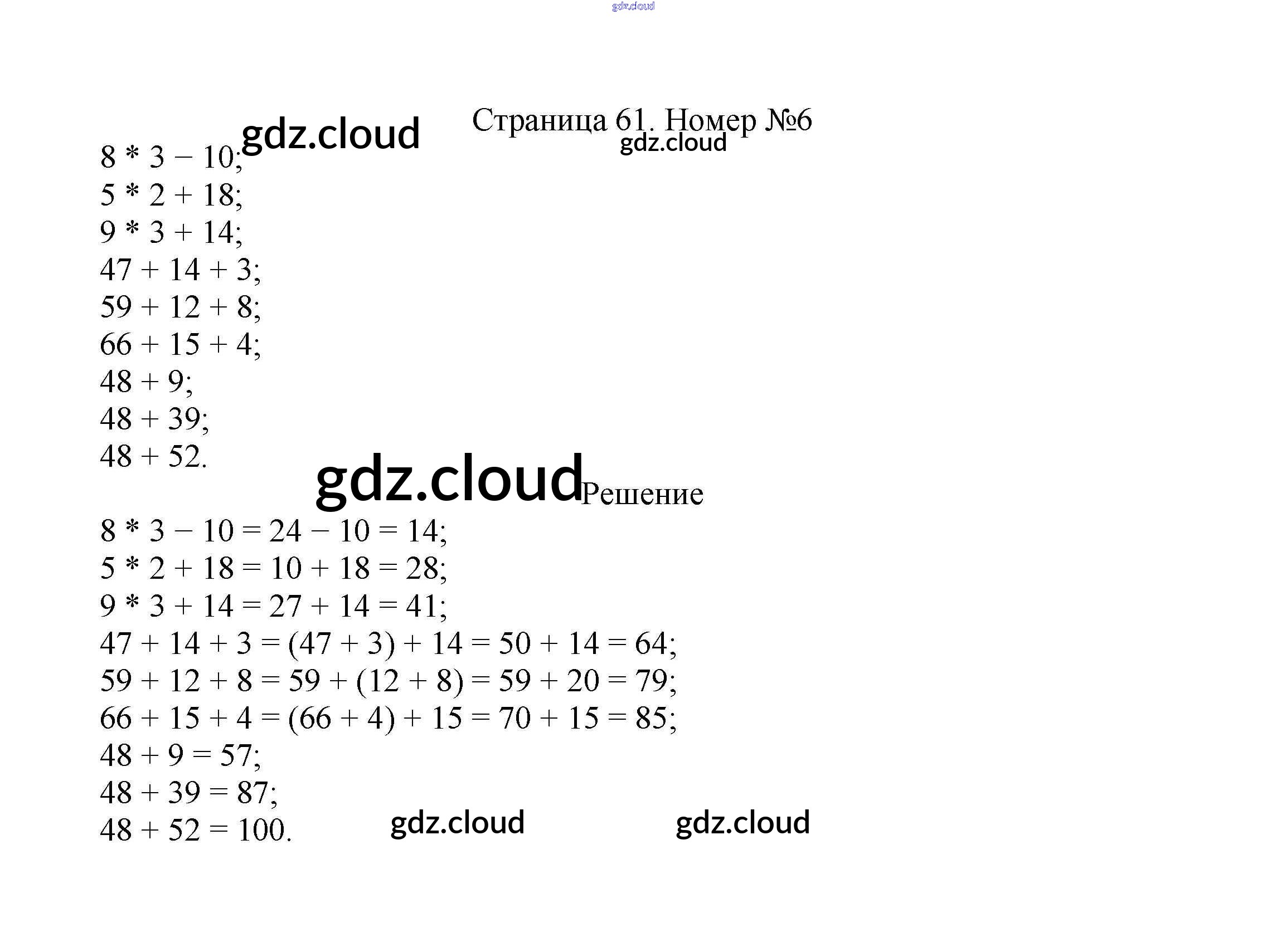 Ответ на задание стр.61 Учебник Математика за 2 (второй) класс Моро, Бантова, Бельтюкова Школа России 2015 Часть 1, 2