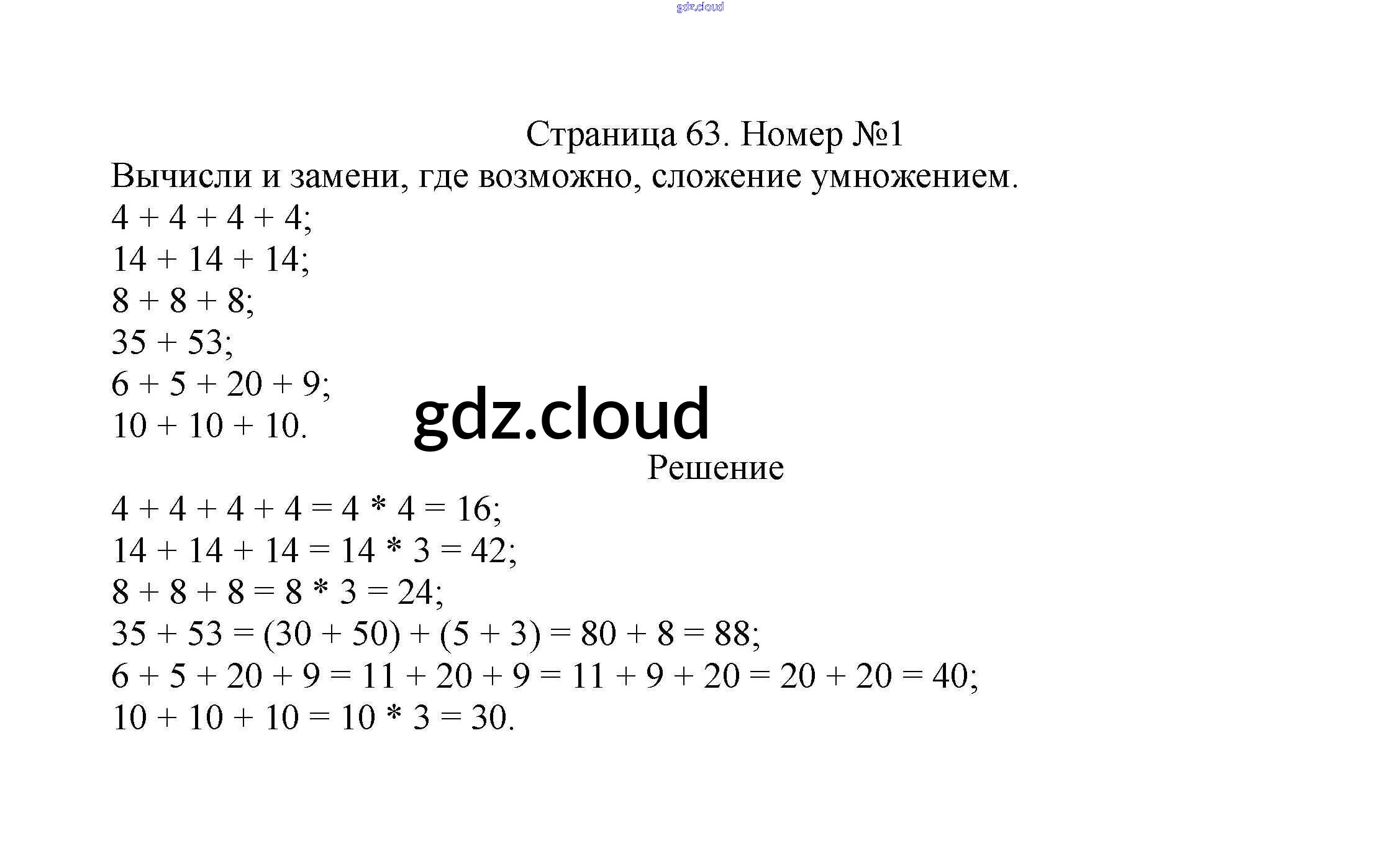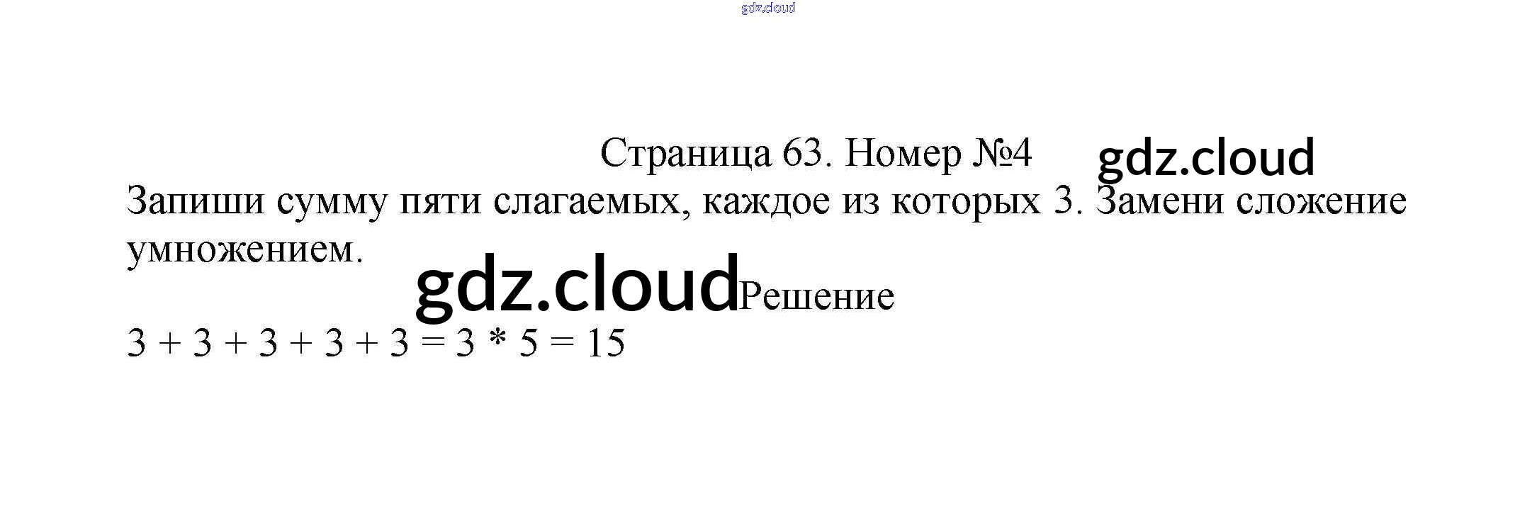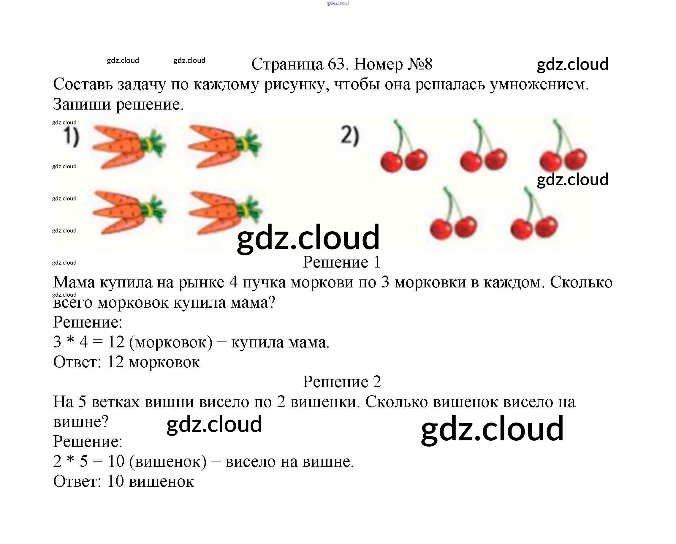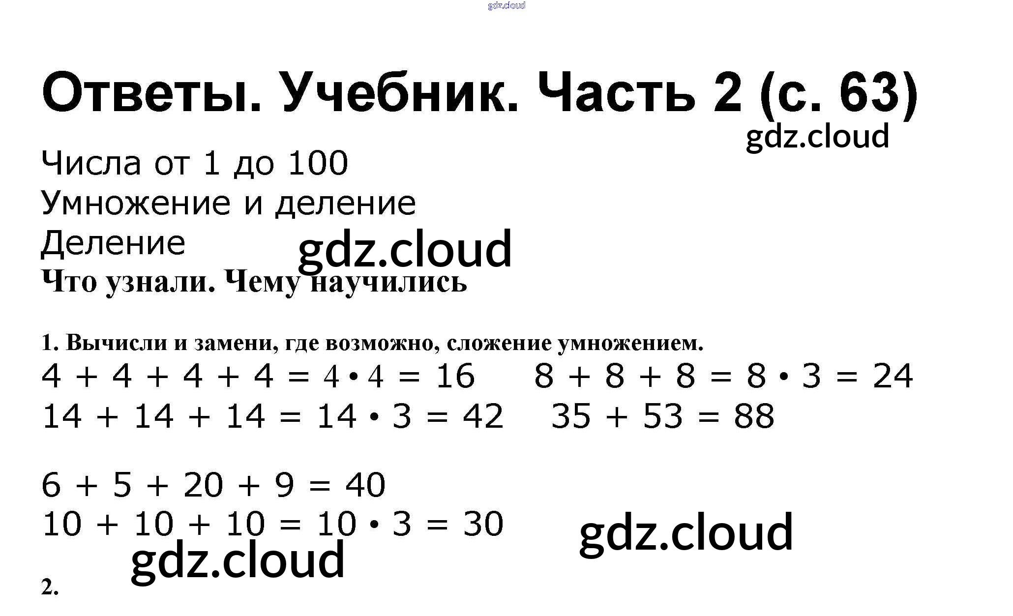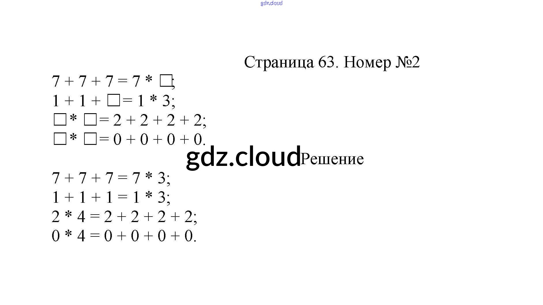Ответ на задание стр.63 Учебник Математика за 2 (второй) класс Моро, Бантова, Бельтюкова Школа России 2015 Часть 1, 2