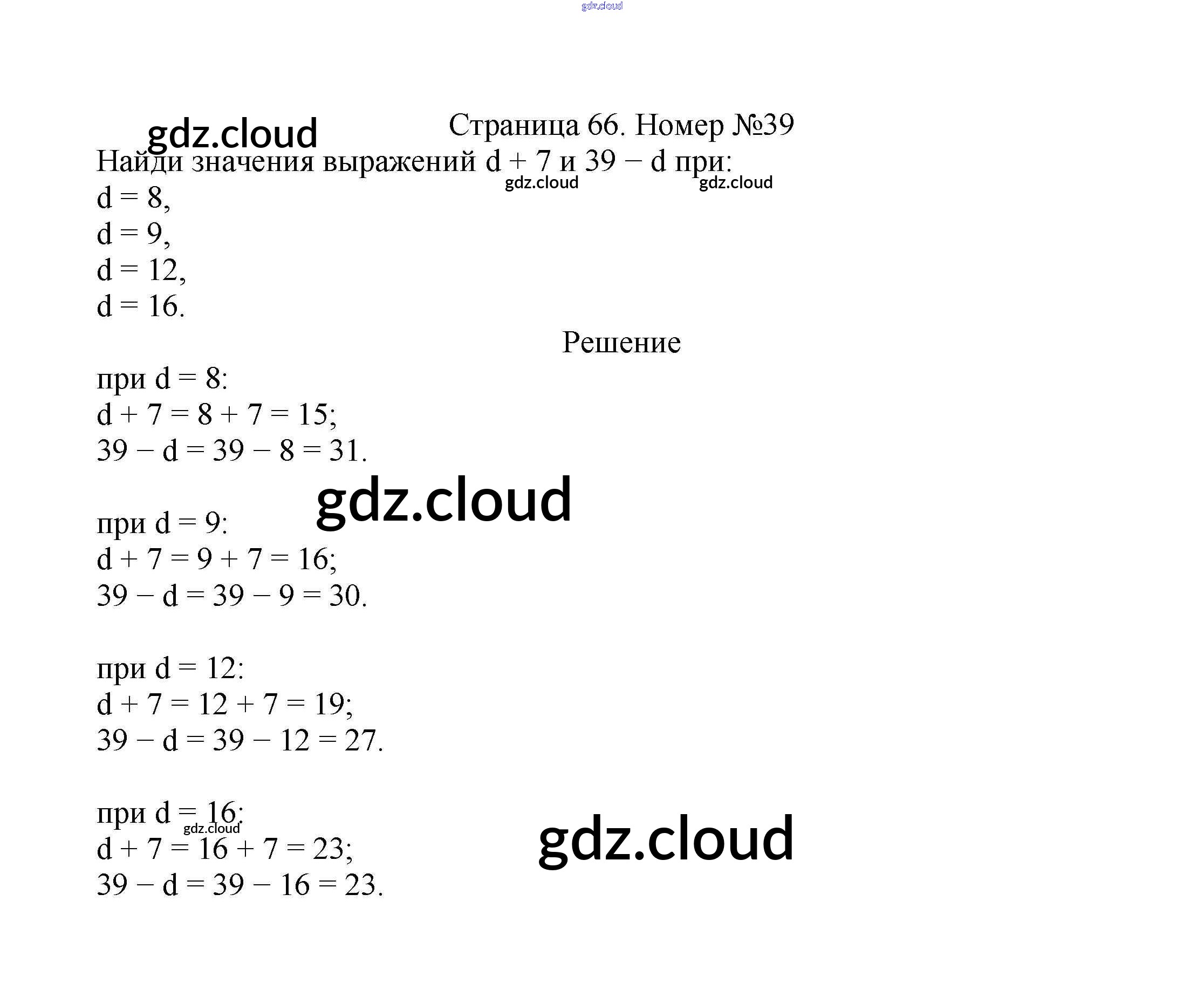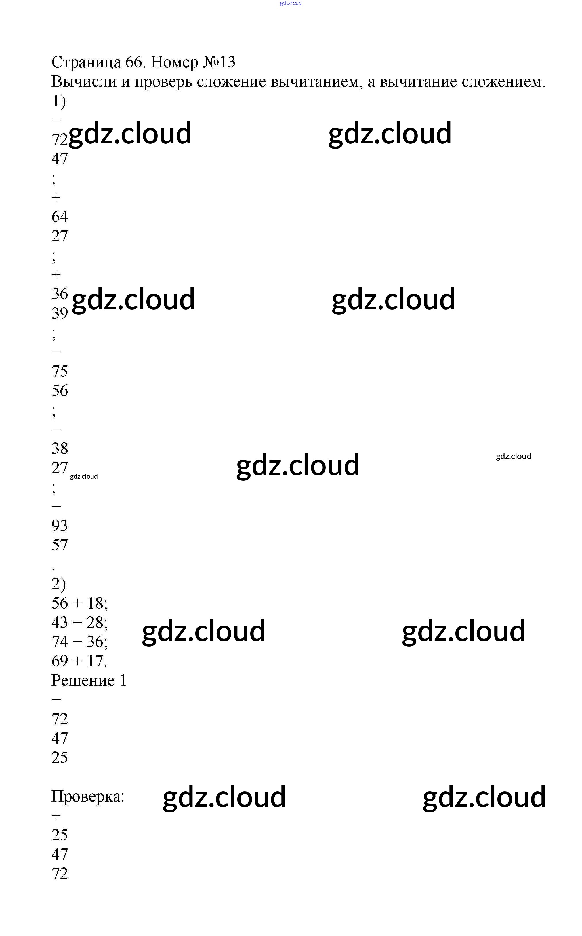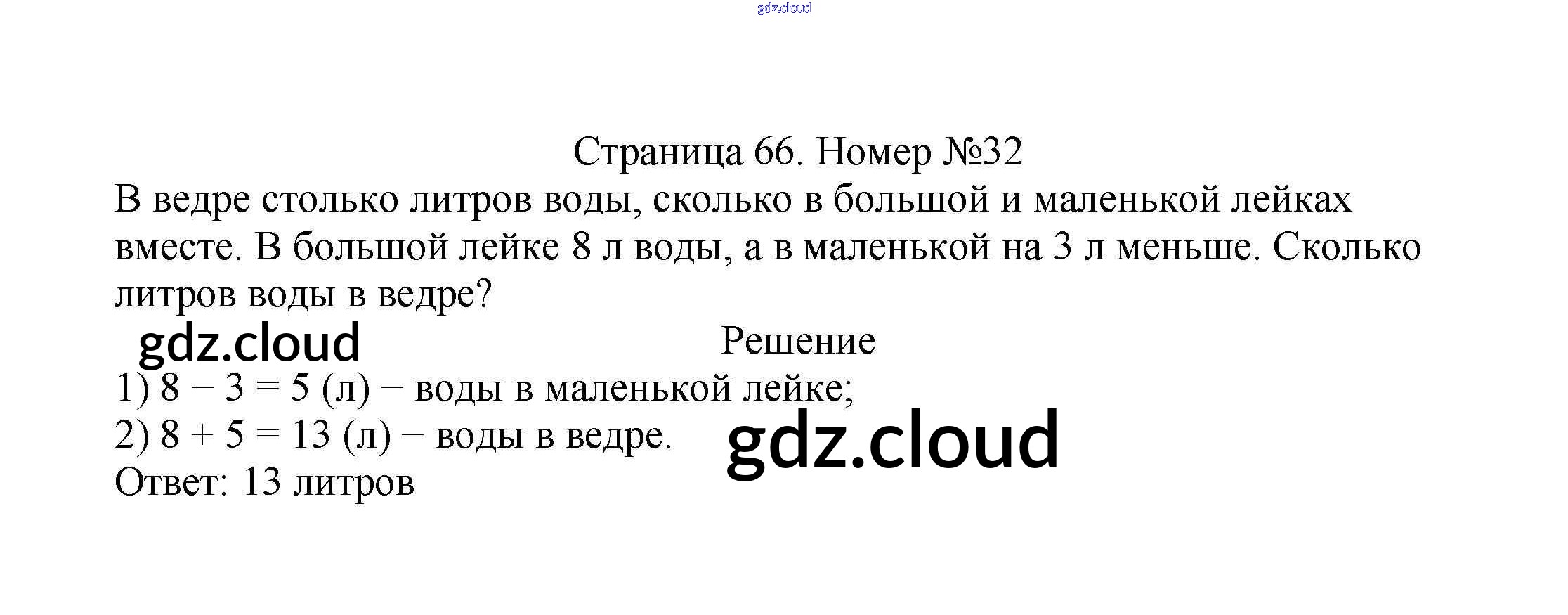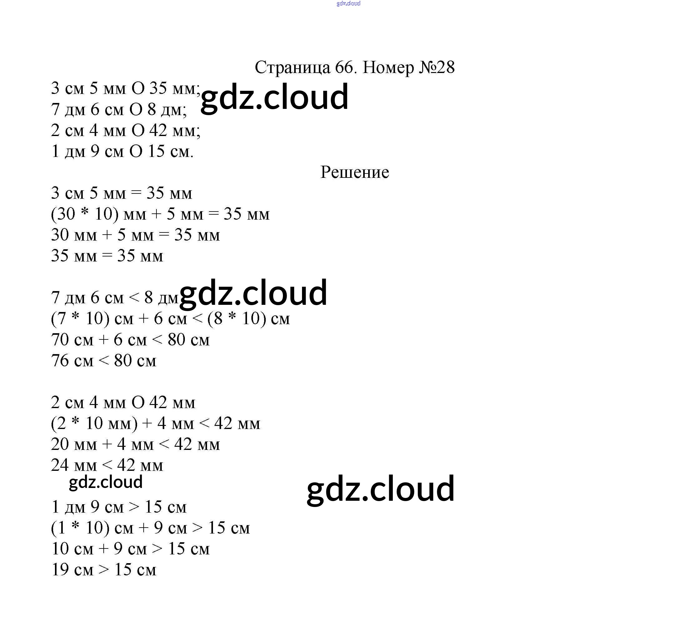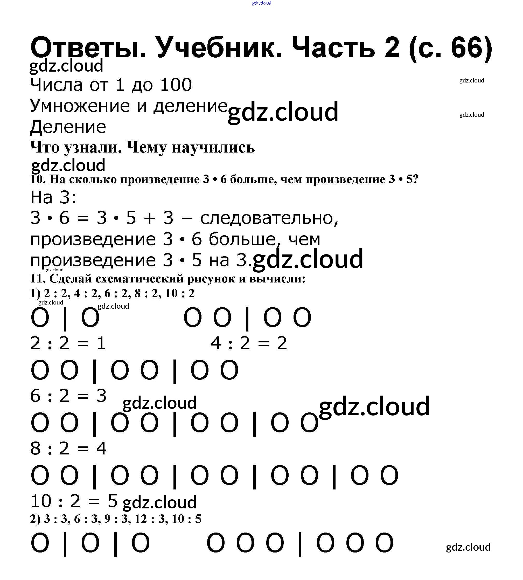 Ответ на задание стр.66 Учебник Математика за 2 (второй) класс Моро, Бантова, Бельтюкова Школа России 2015 Часть 1, 2