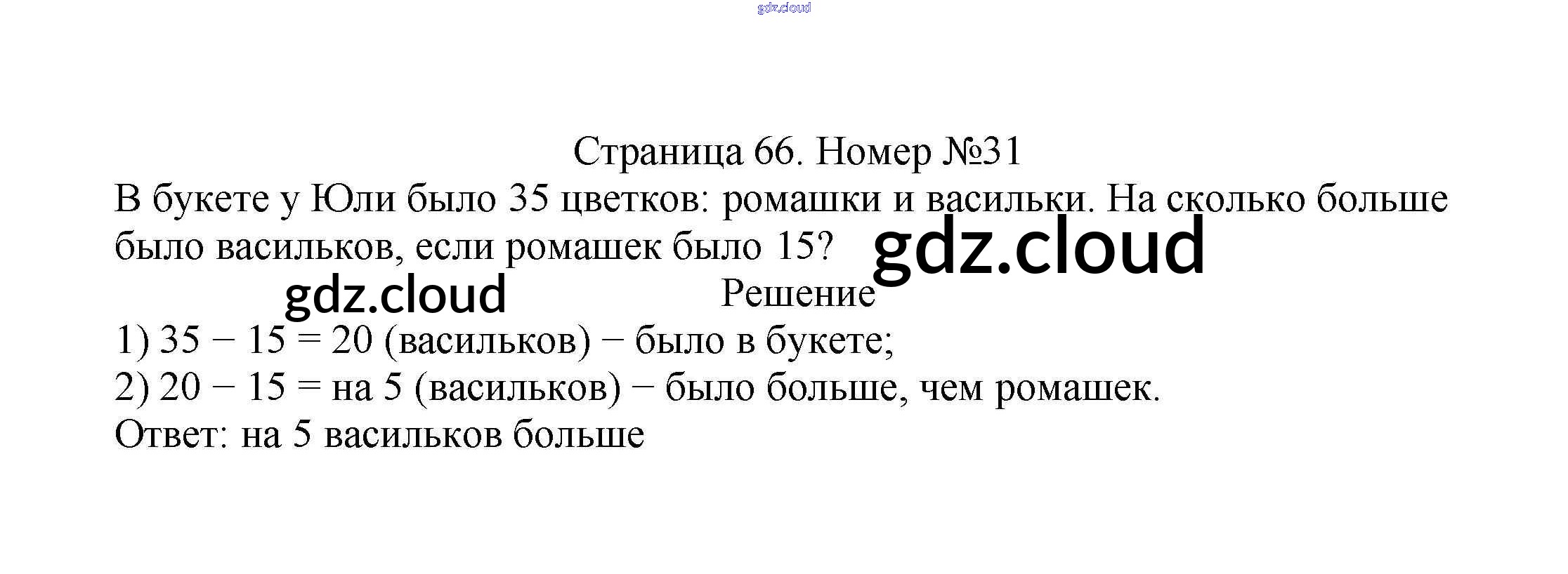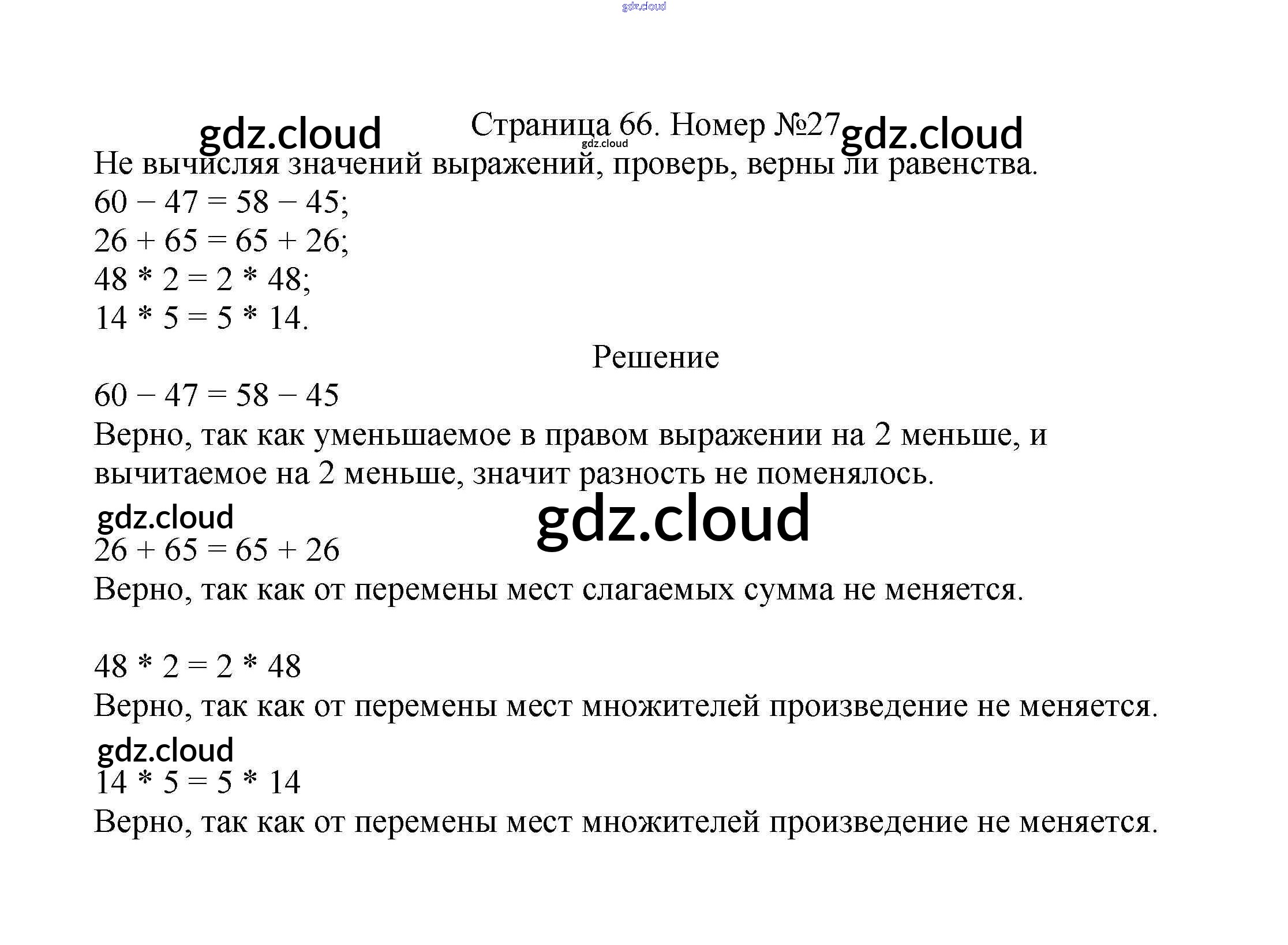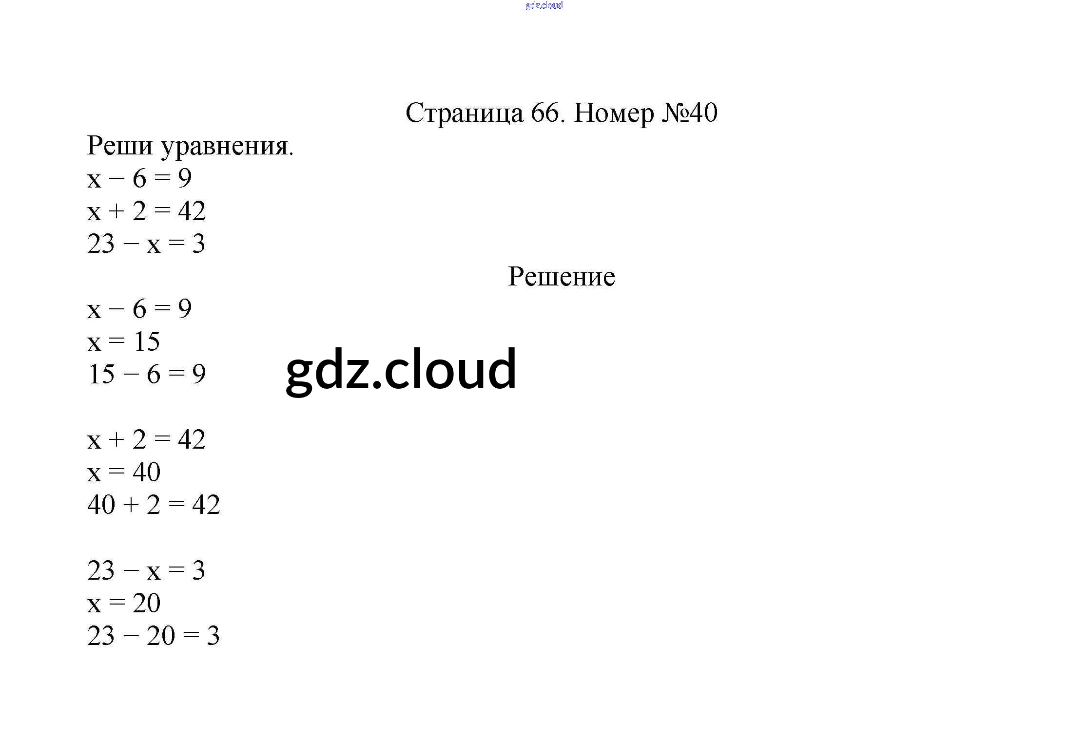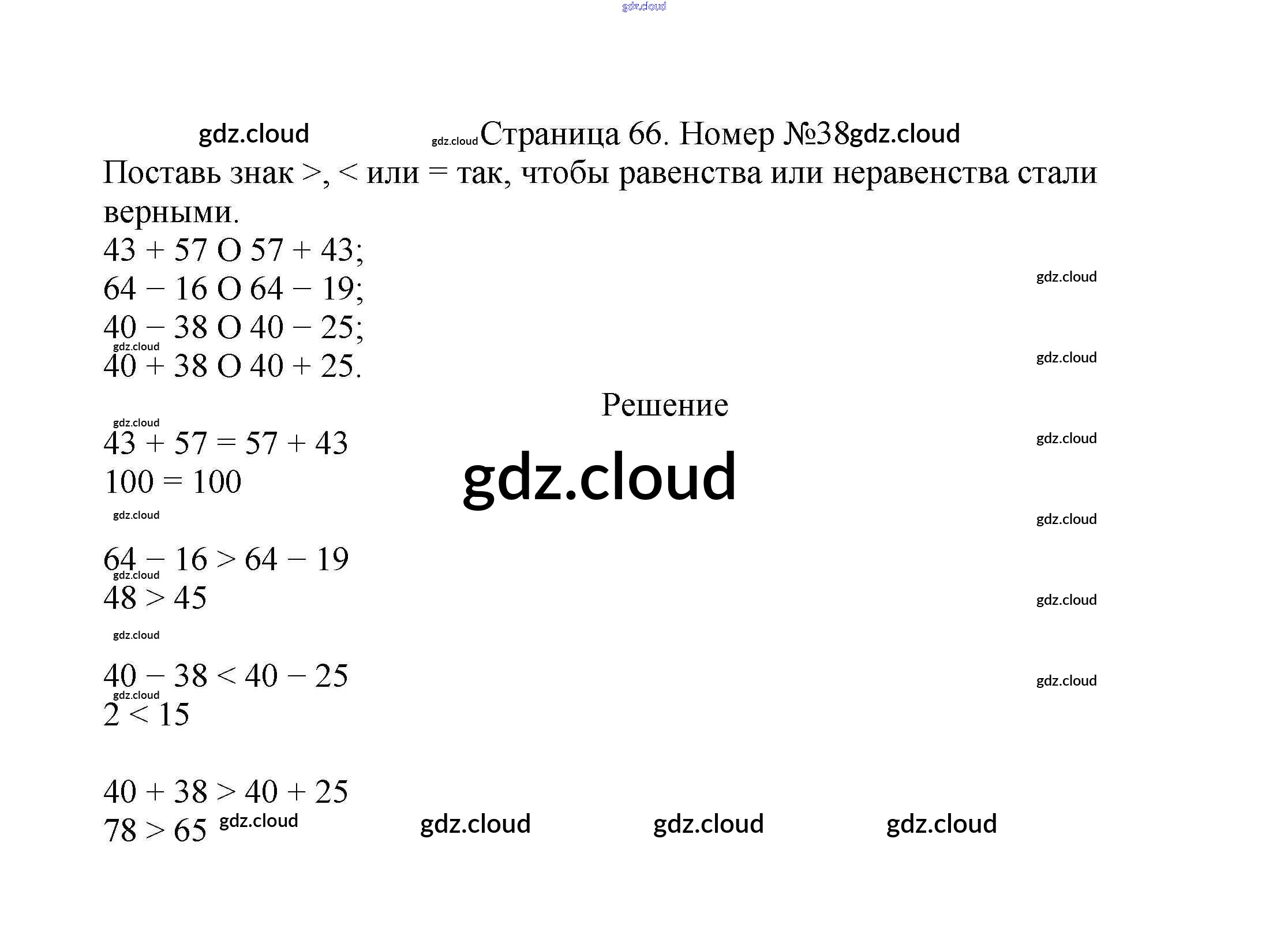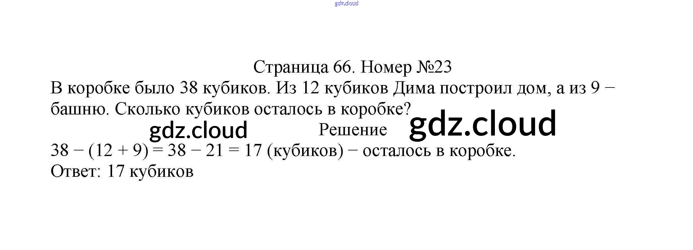 Ответ на задание стр.66 Учебник Математика за 2 (второй) класс Моро, Бантова, Бельтюкова Школа России 2015 Часть 1, 2