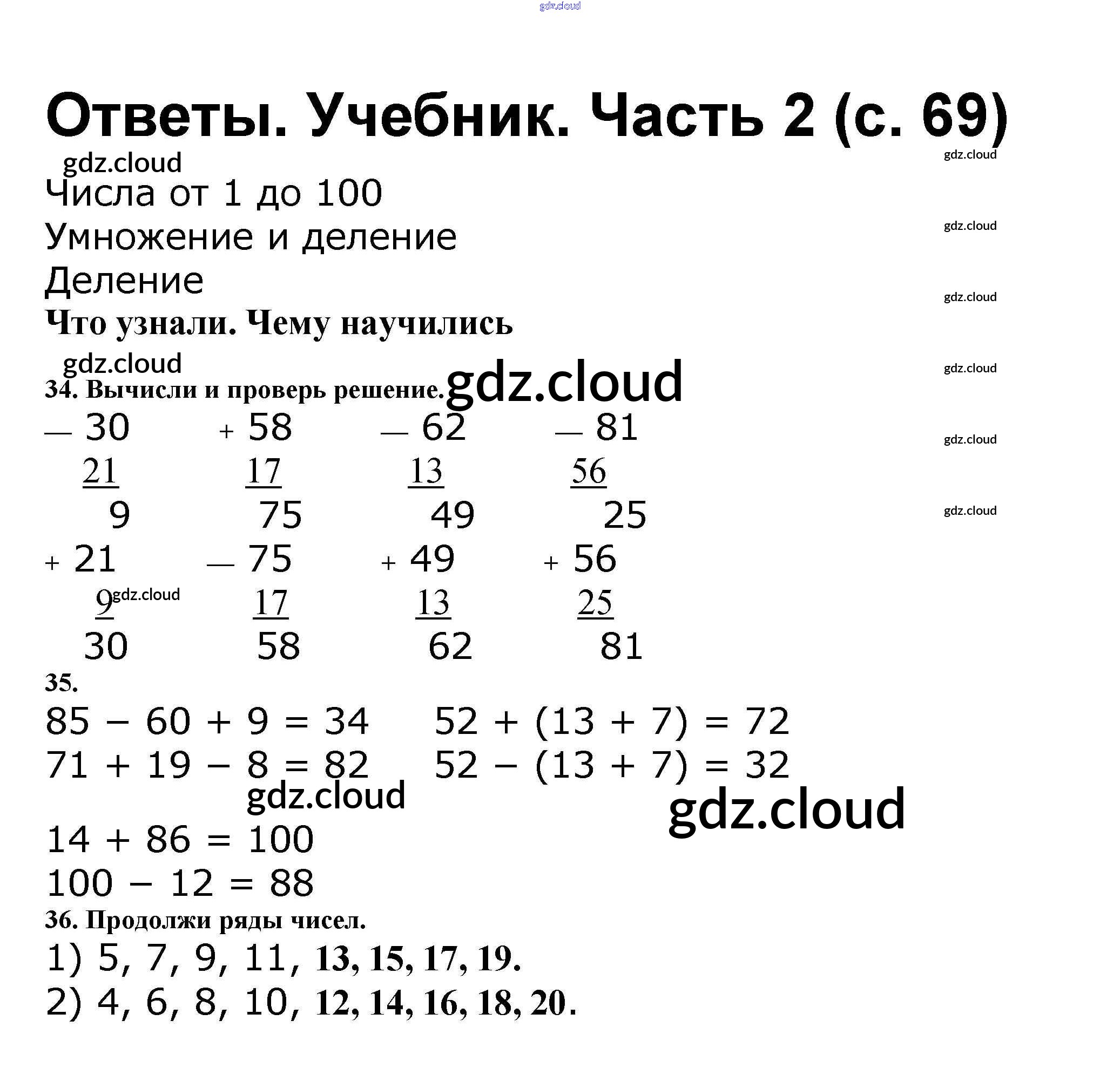 Ответ на задание стр.69 Учебник Математика за 2 (второй) класс Моро, Бантова, Бельтюкова Школа России 2015 Часть 1, 2