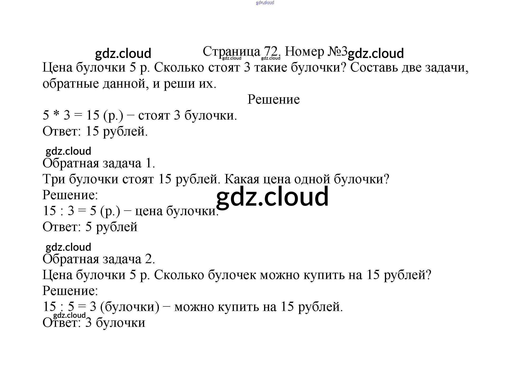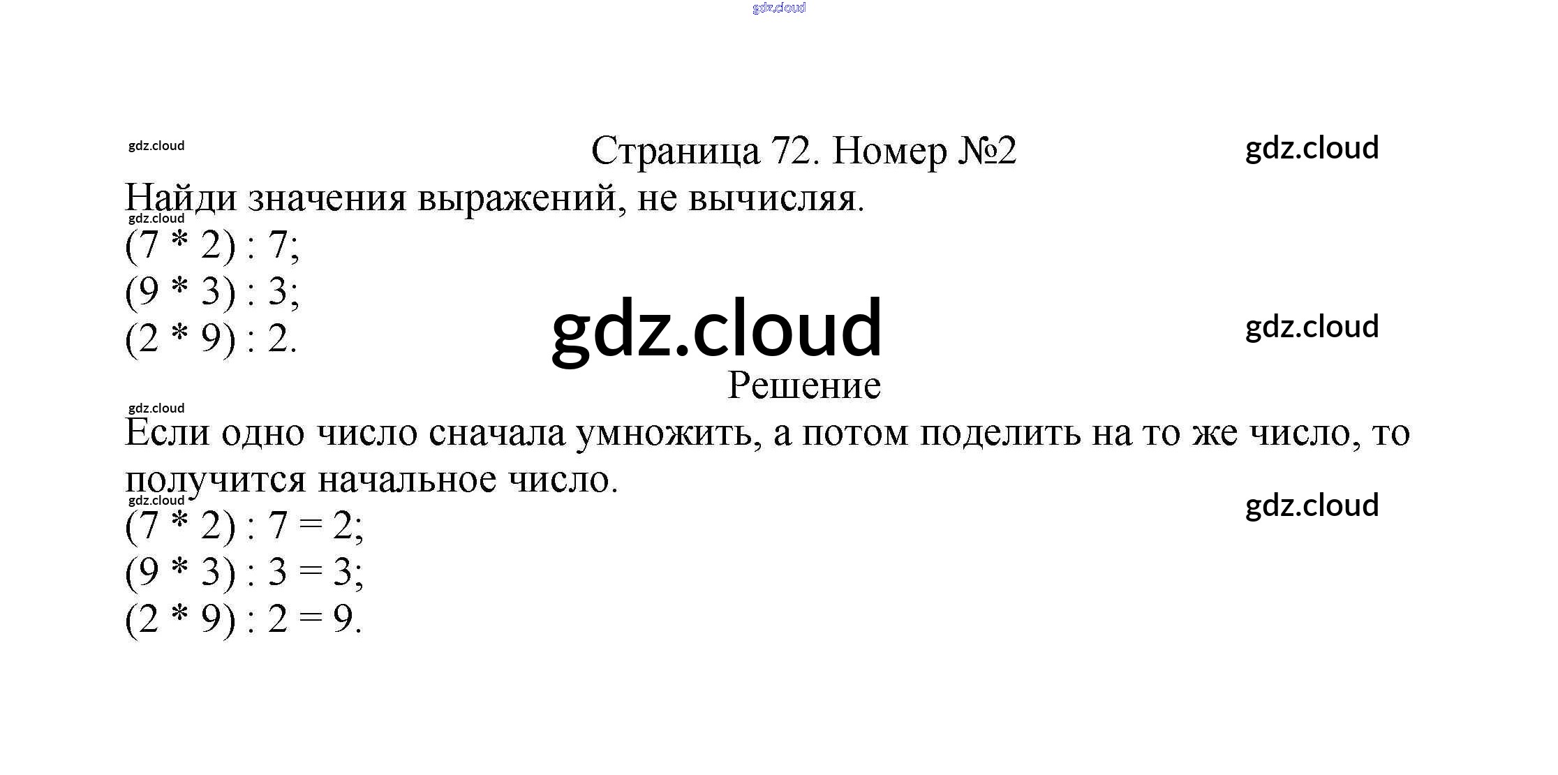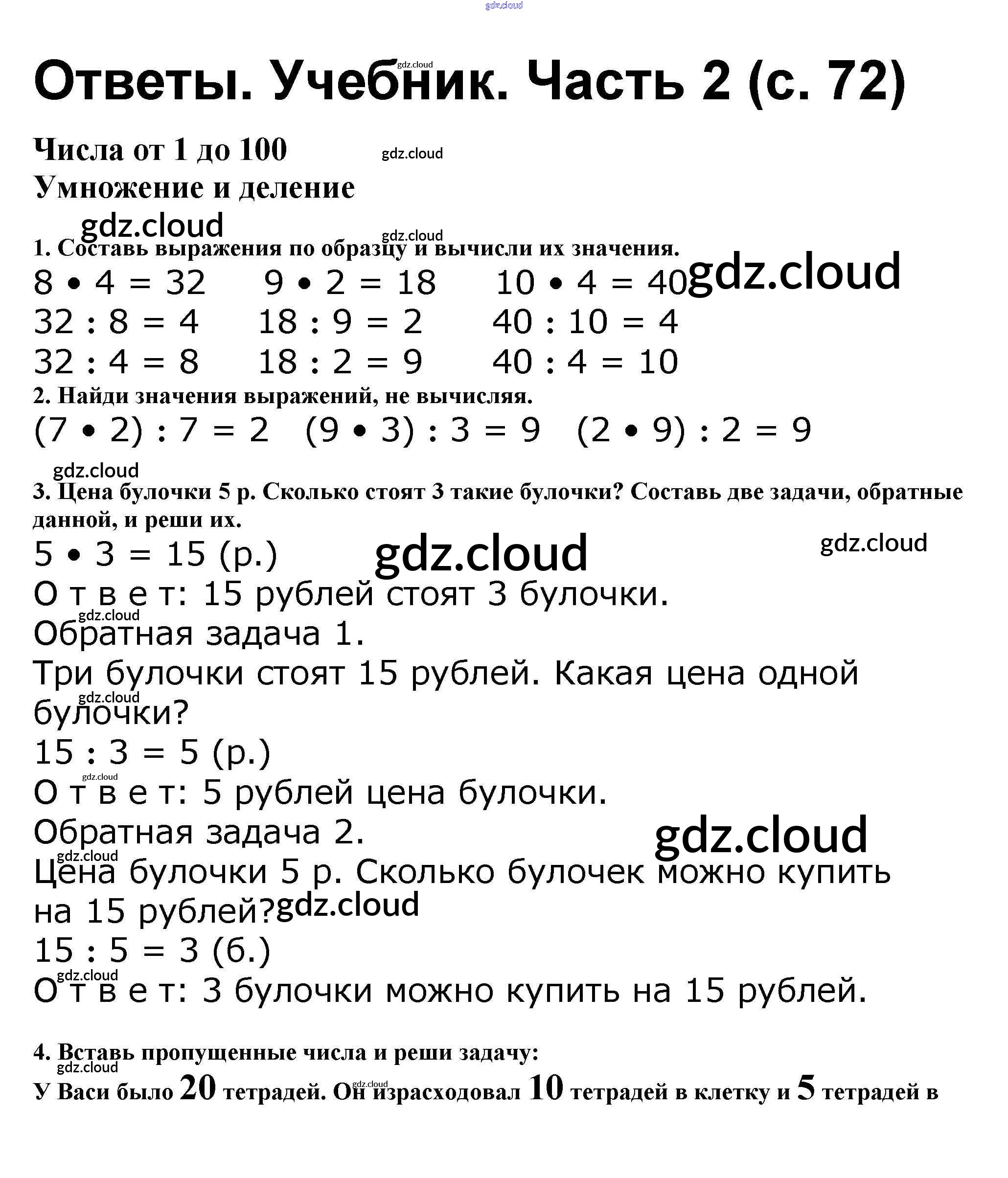 Ответ на задание стр.72 Учебник Математика за 2 (второй) класс Моро, Бантова, Бельтюкова Школа России 2015 Часть 1, 2
