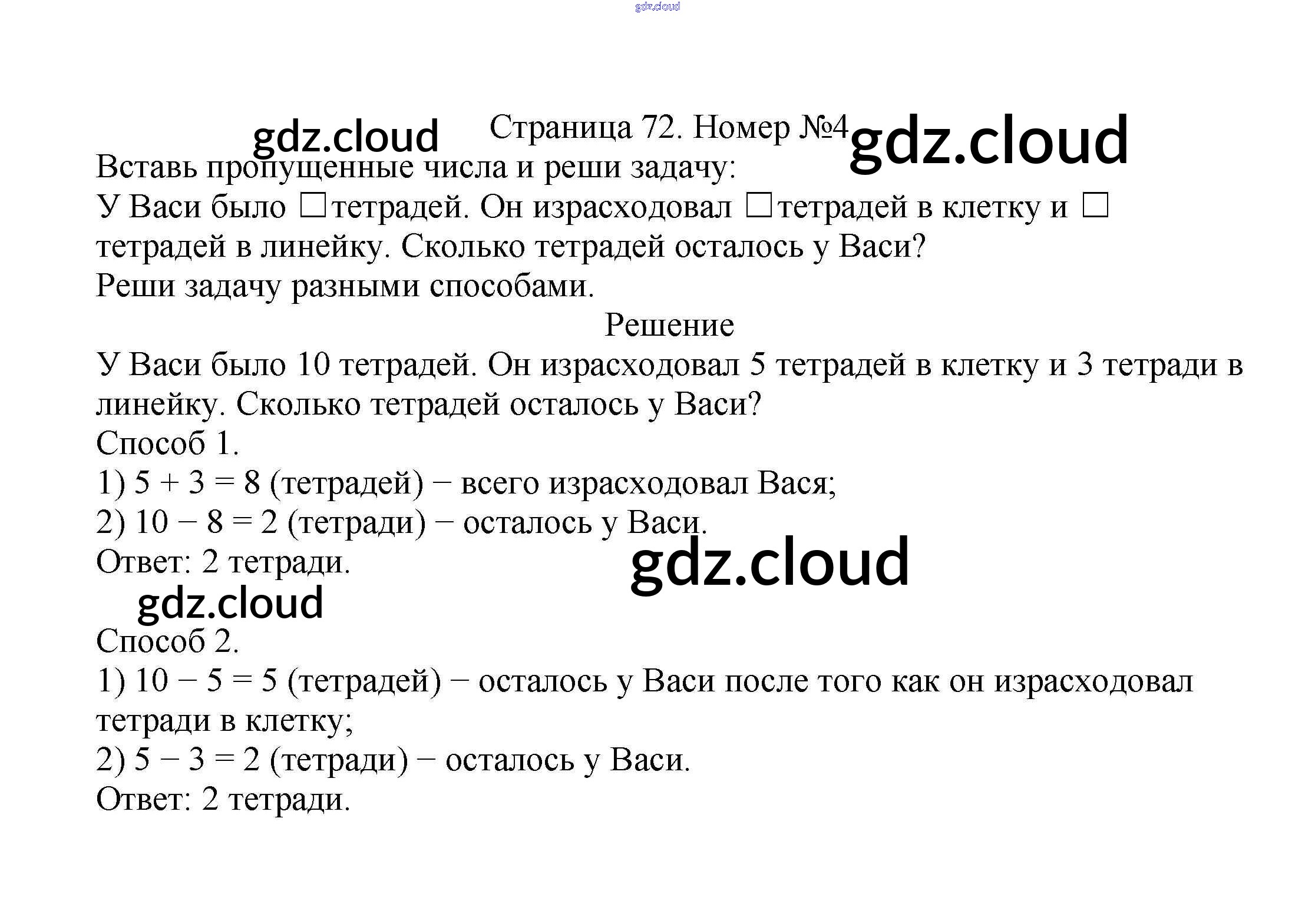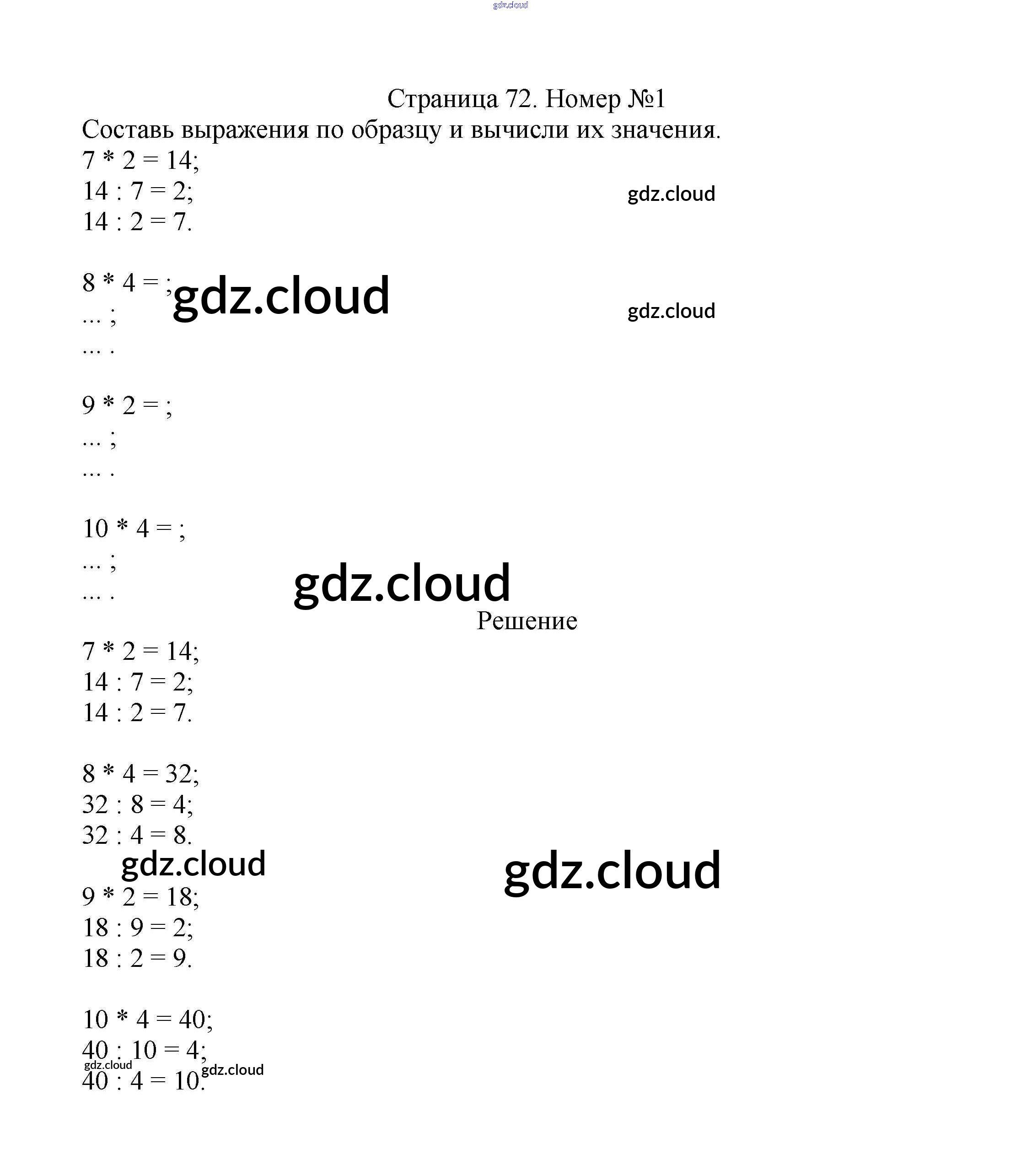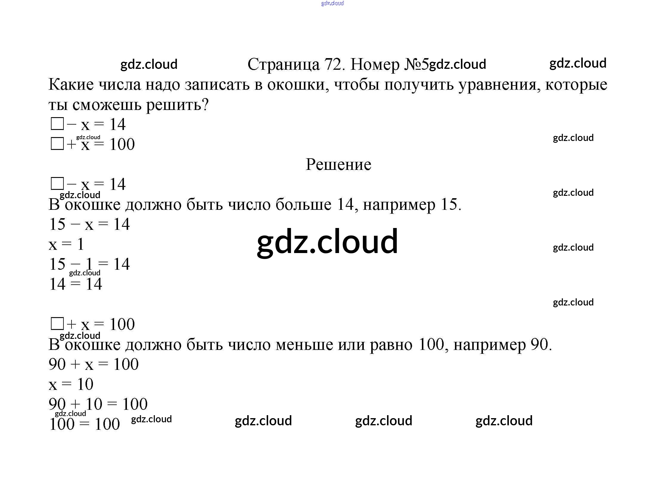 Ответ на задание стр.72 Учебник Математика за 2 (второй) класс Моро, Бантова, Бельтюкова Школа России 2015 Часть 1, 2