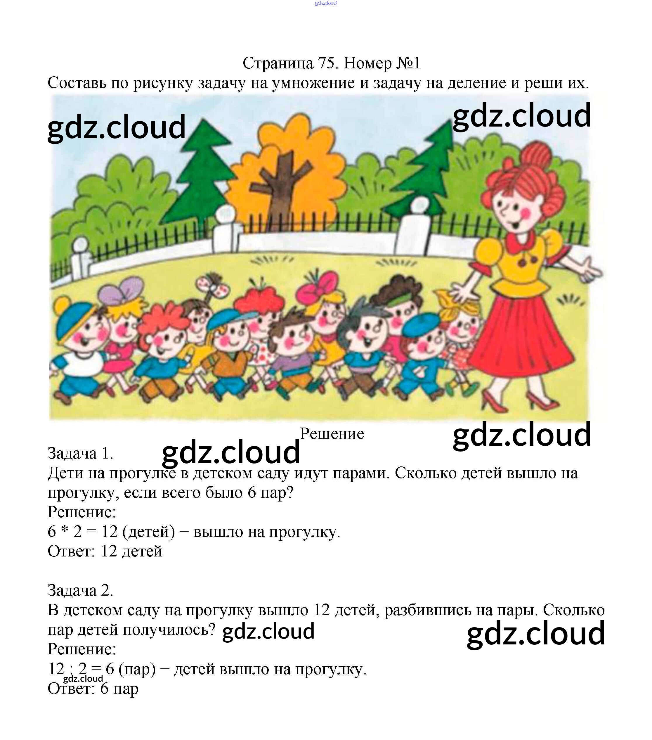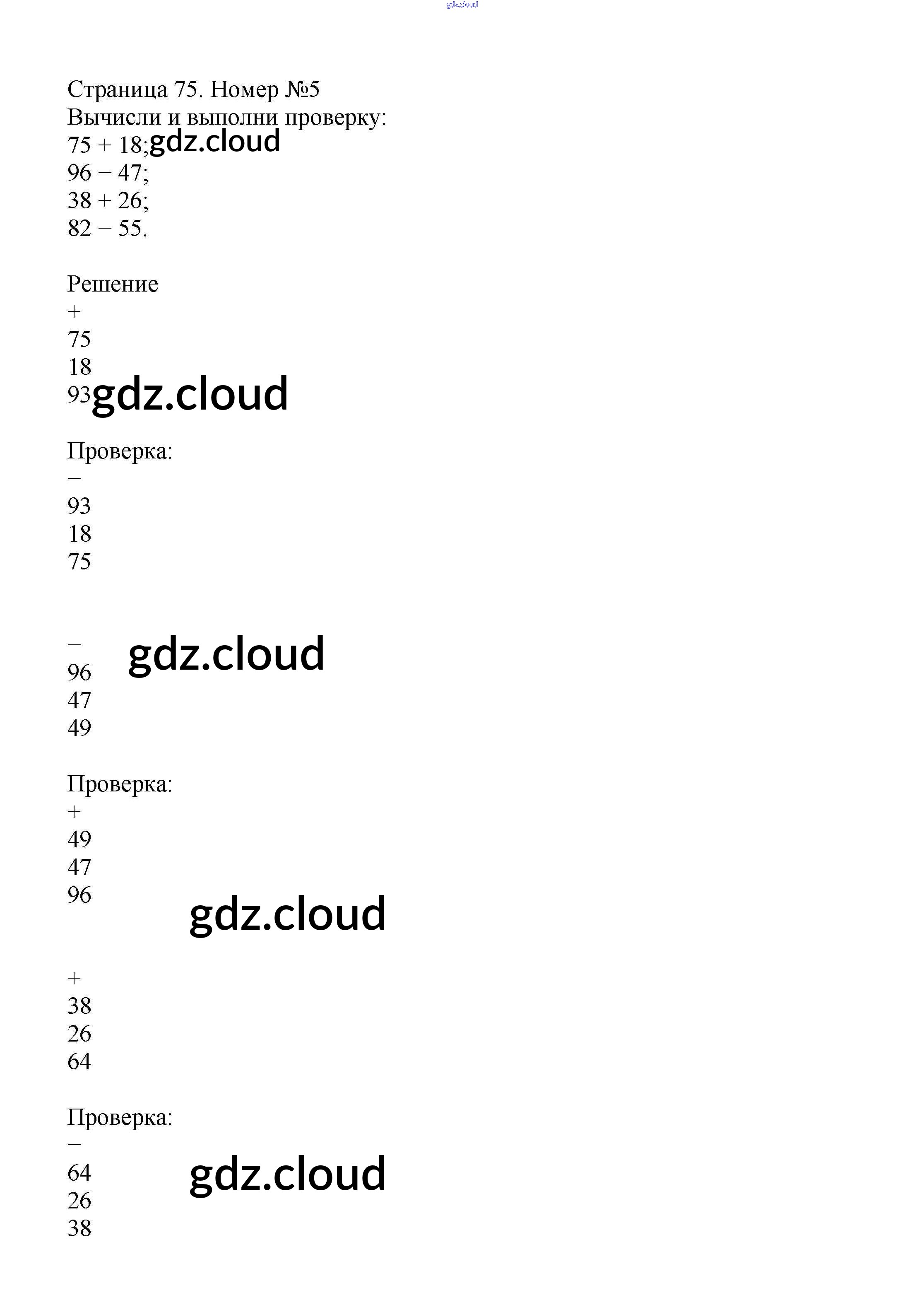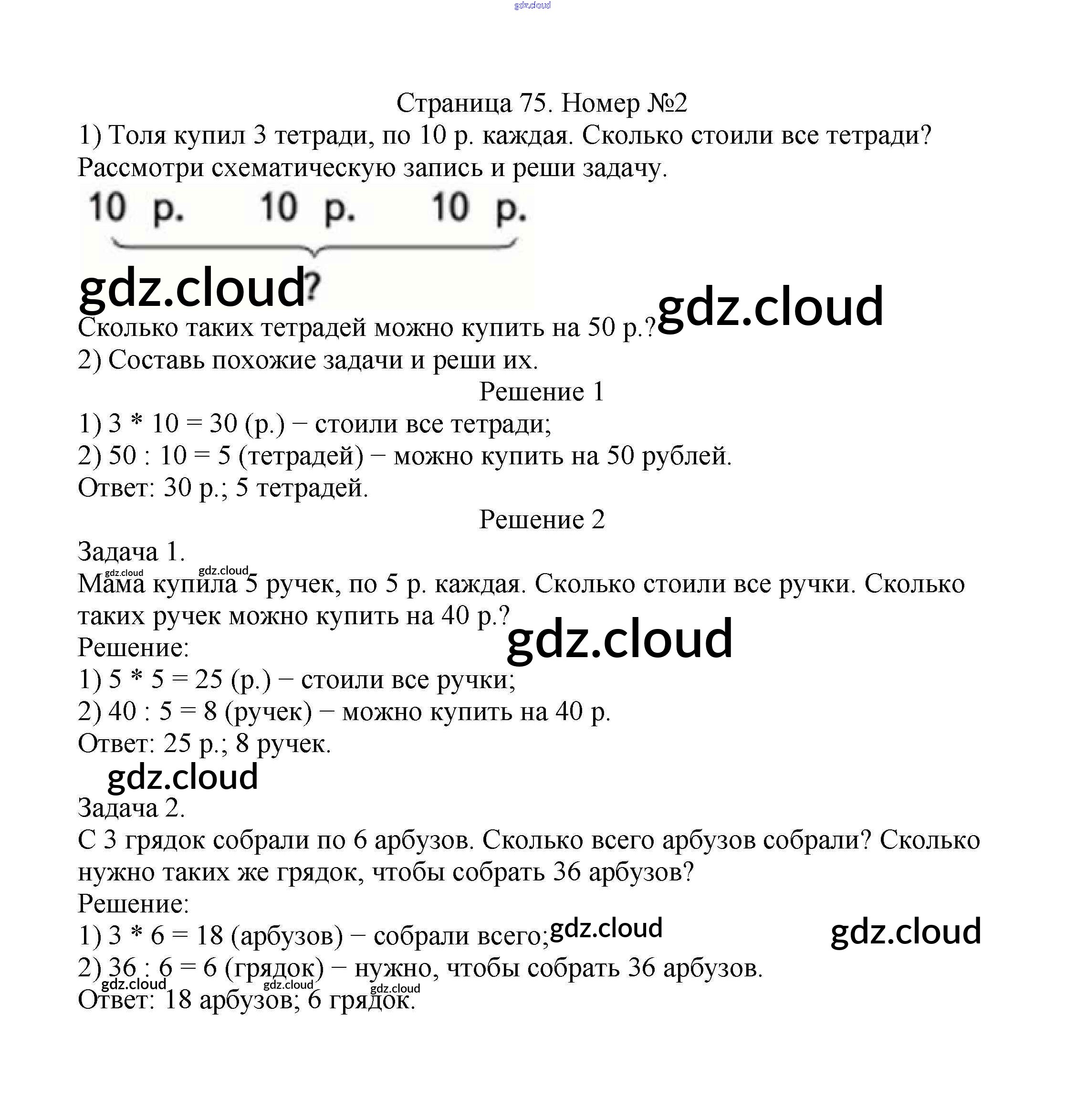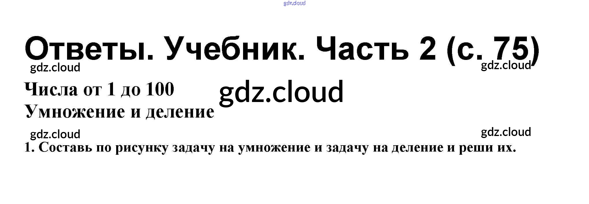 Ответ на задание стр.75 Учебник Математика за 2 (второй) класс Моро, Бантова, Бельтюкова Школа России 2015 Часть 1, 2
