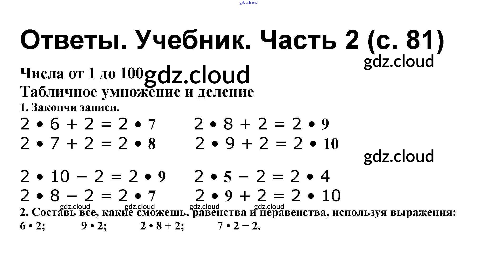 Ответ на задание стр.81 Учебник Математика за 2 (второй) класс Моро, Бантова, Бельтюкова Школа России 2015 Часть 1, 2