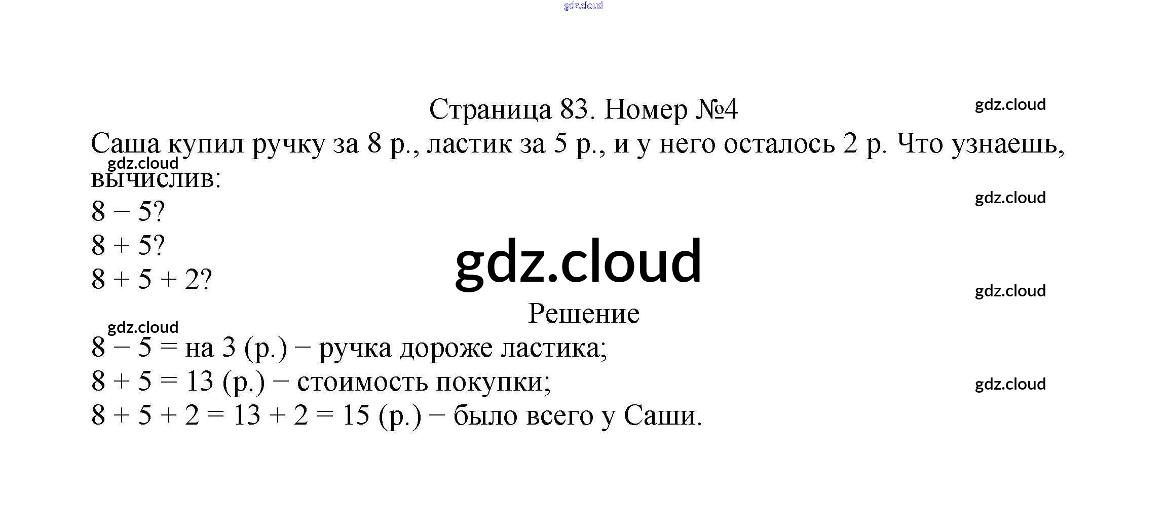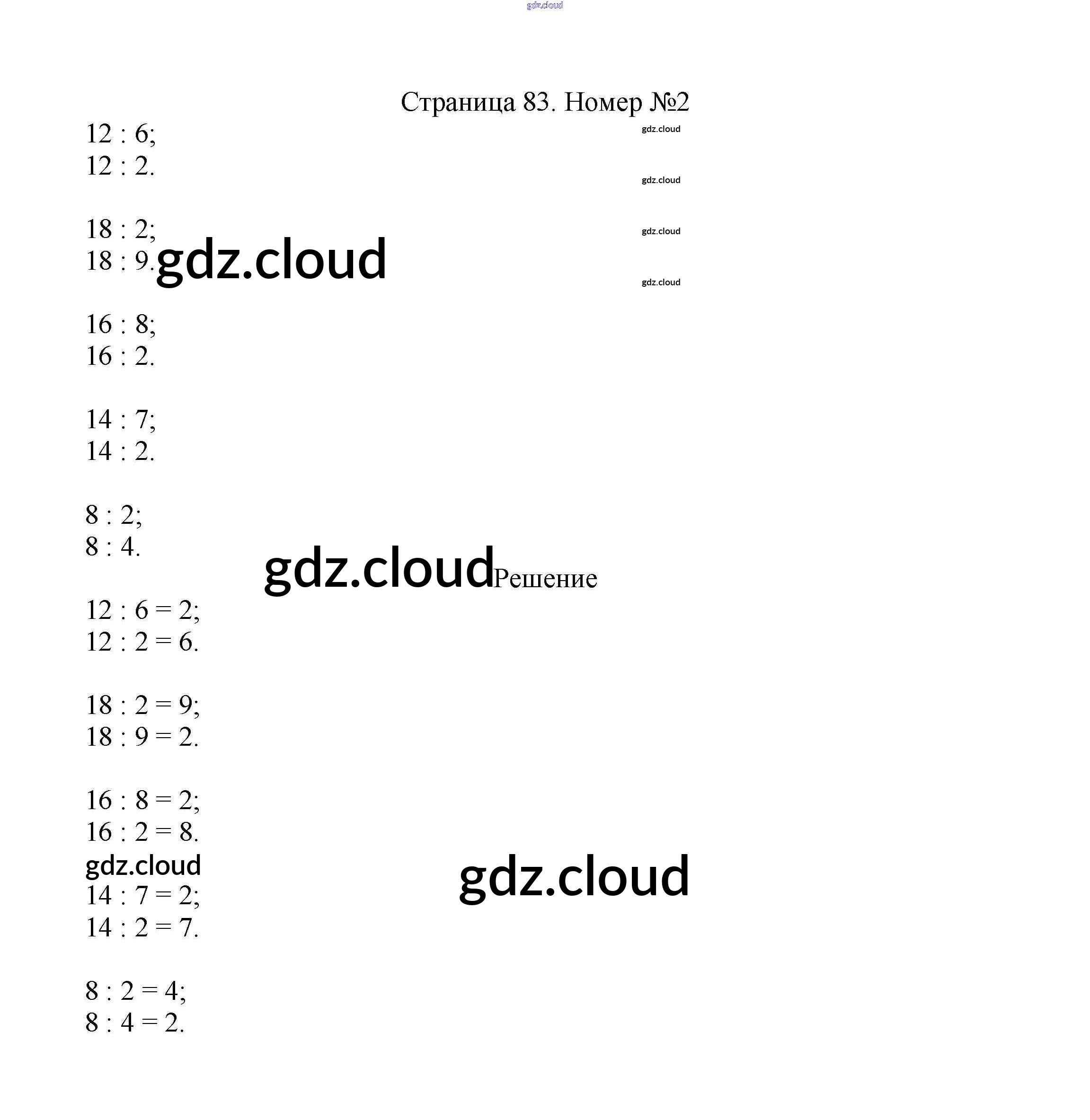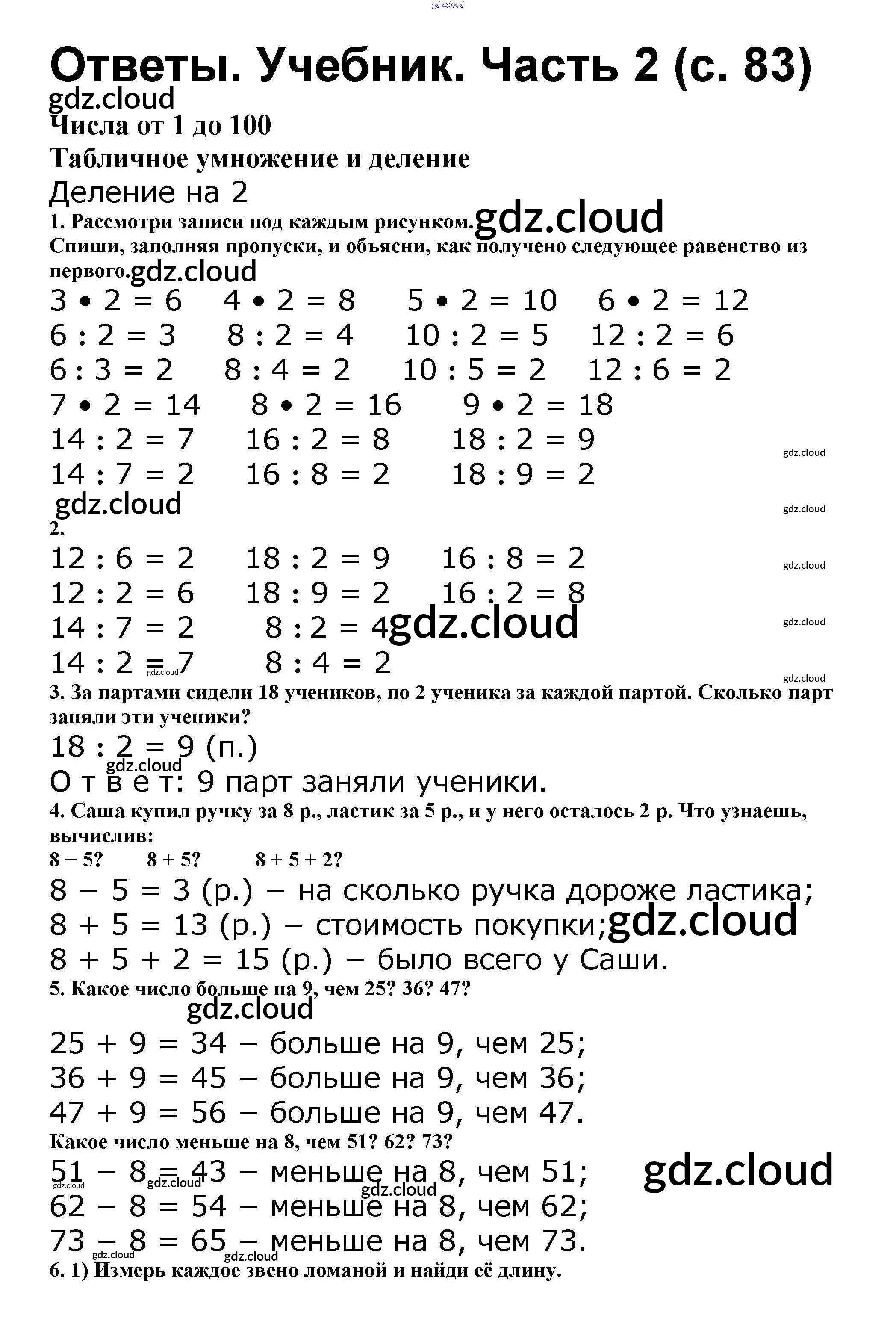 Ответ на задание стр.83 Учебник Математика за 2 (второй) класс Моро, Бантова, Бельтюкова Школа России 2015 Часть 1, 2