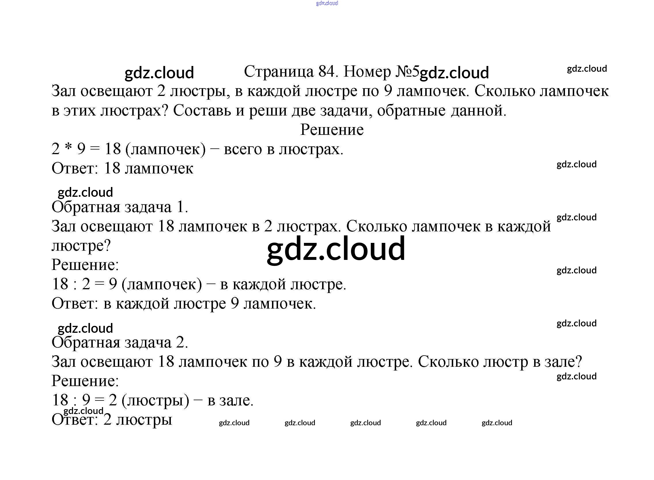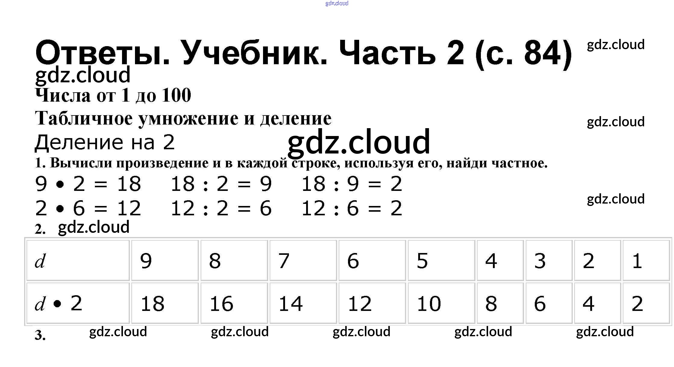 Ответ на задание стр.84 Учебник Математика за 2 (второй) класс Моро, Бантова, Бельтюкова Школа России 2015 Часть 1, 2