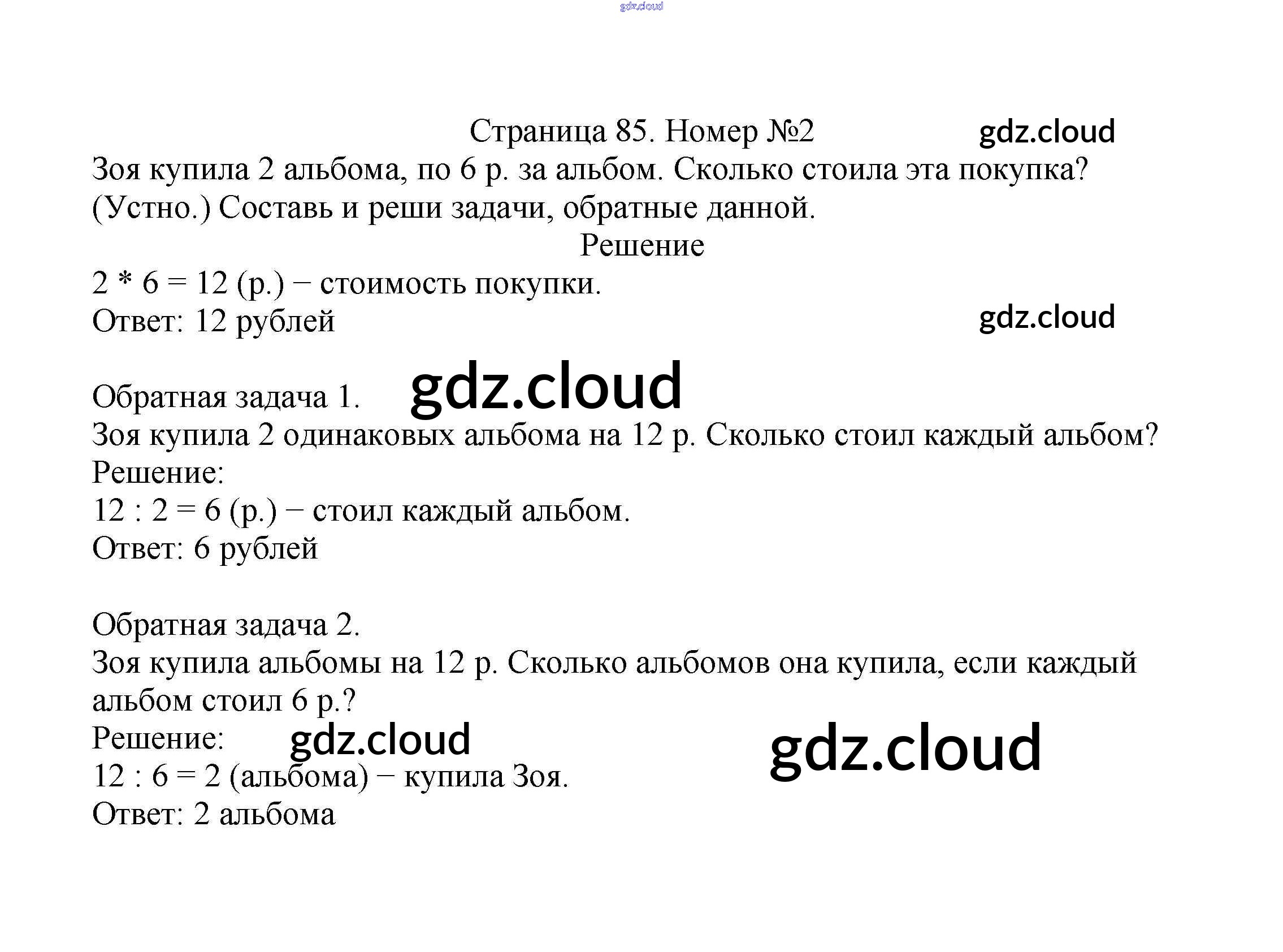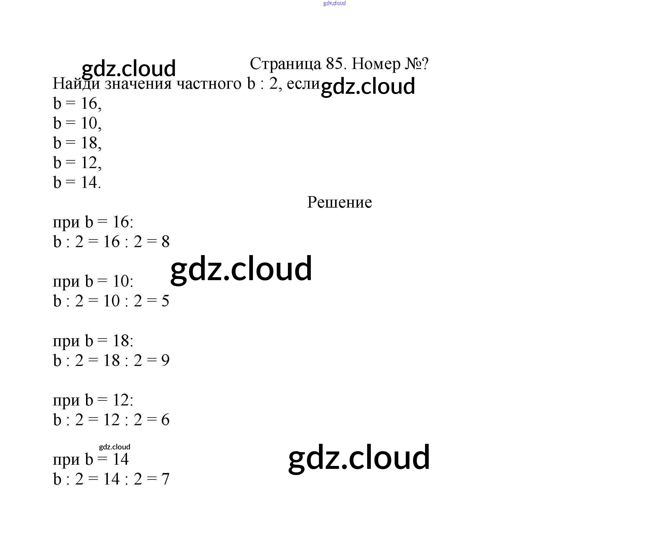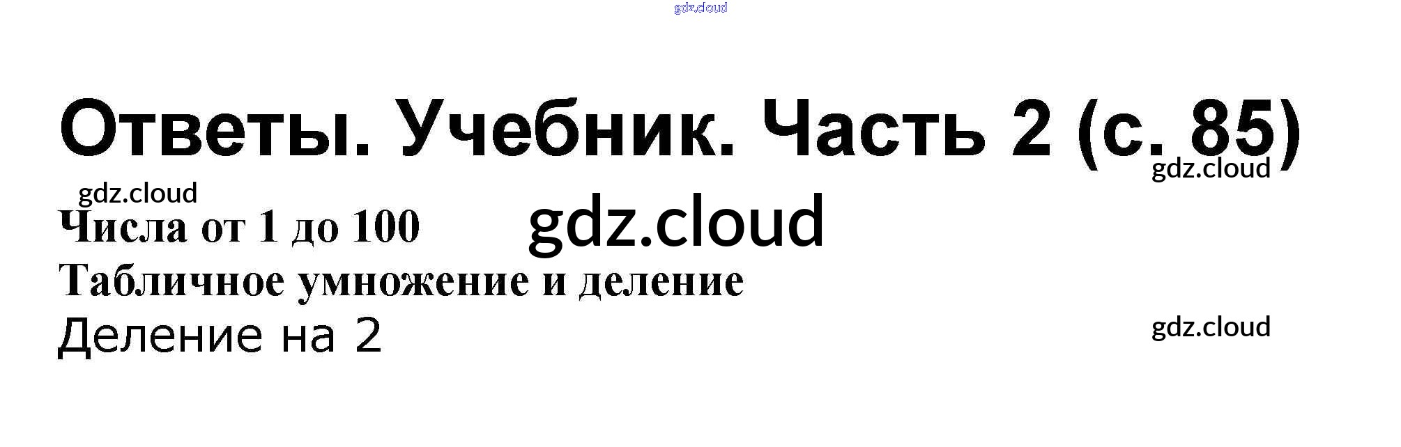 Ответ на задание стр.85 Учебник Математика за 2 (второй) класс Моро, Бантова, Бельтюкова Школа России 2015 Часть 1, 2