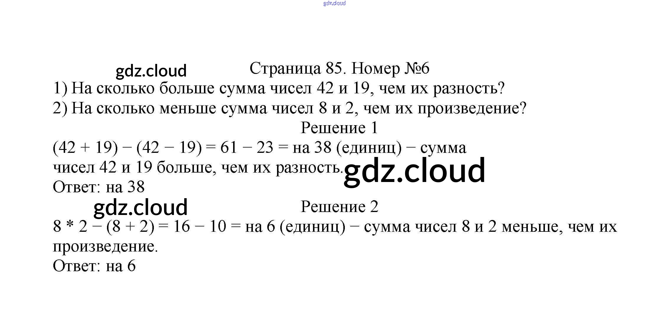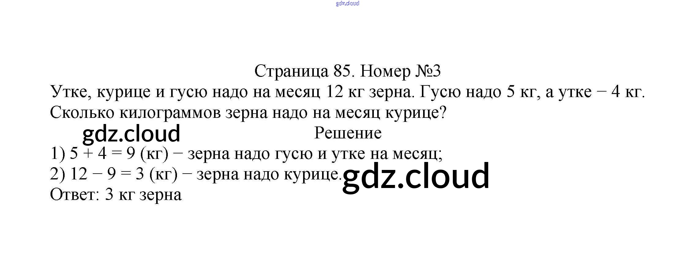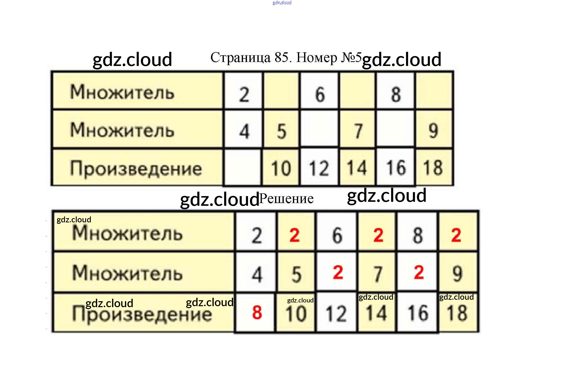 Ответ на задание стр.85 Учебник Математика за 2 (второй) класс Моро, Бантова, Бельтюкова Школа России 2015 Часть 1, 2