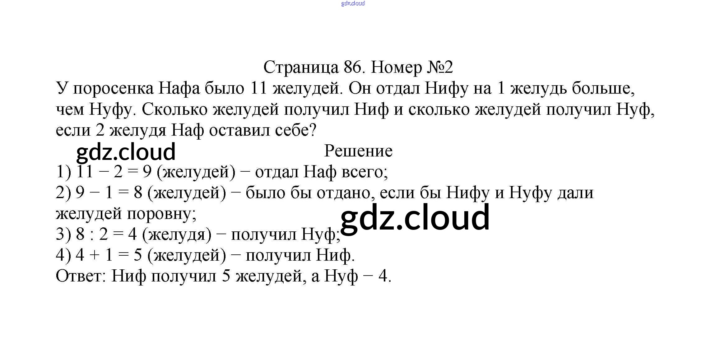 Ответ на задание стр.86 Учебник Математика за 2 (второй) класс Моро, Бантова, Бельтюкова Школа России 2015 Часть 1, 2