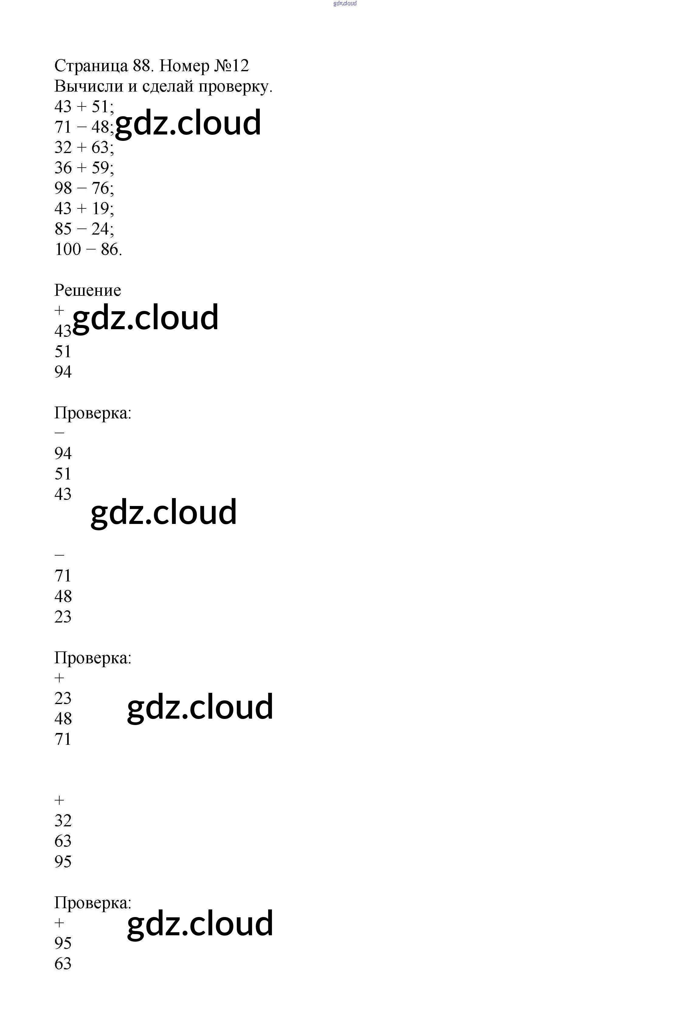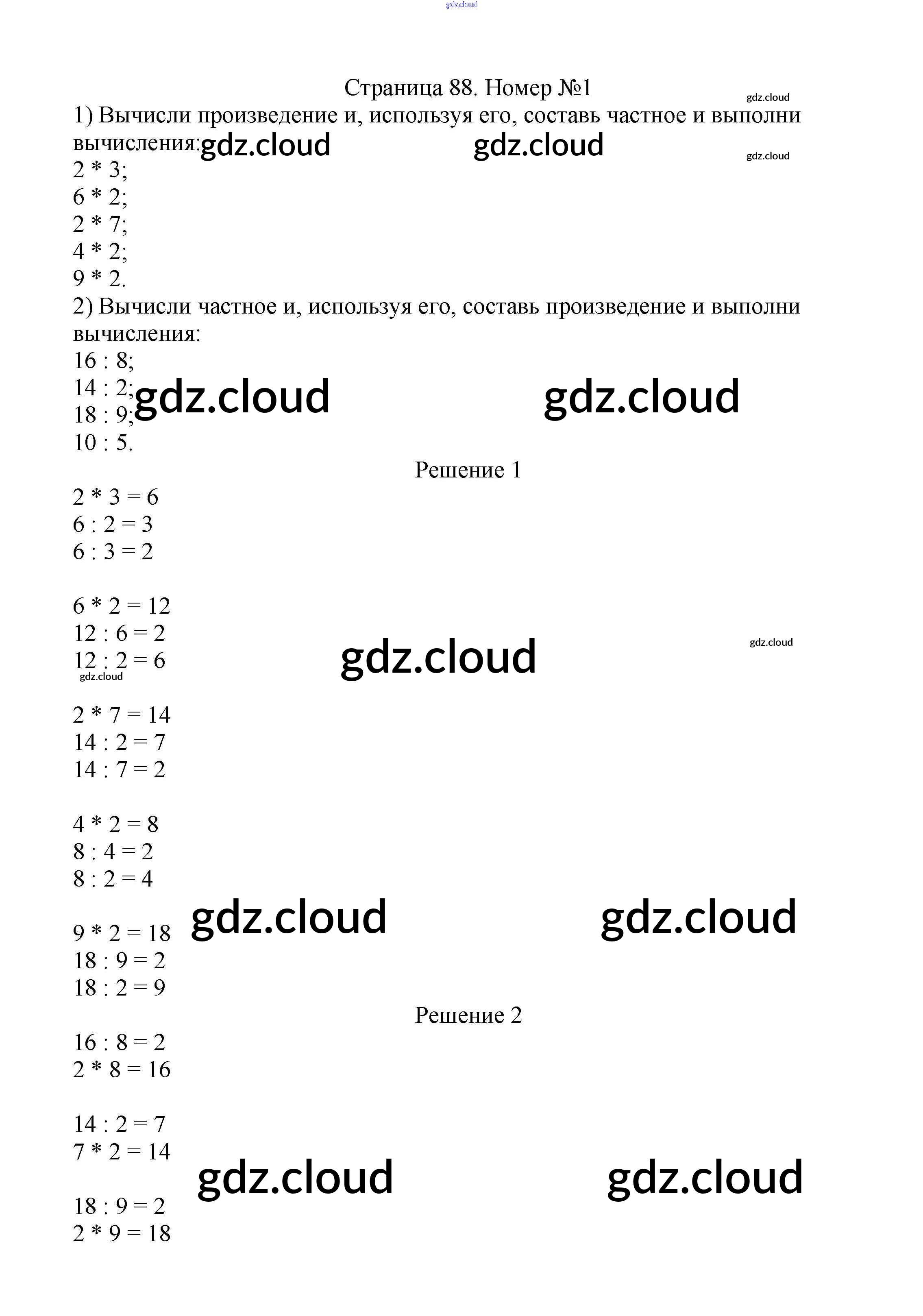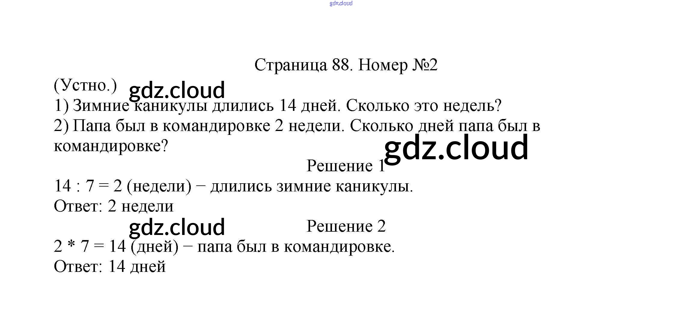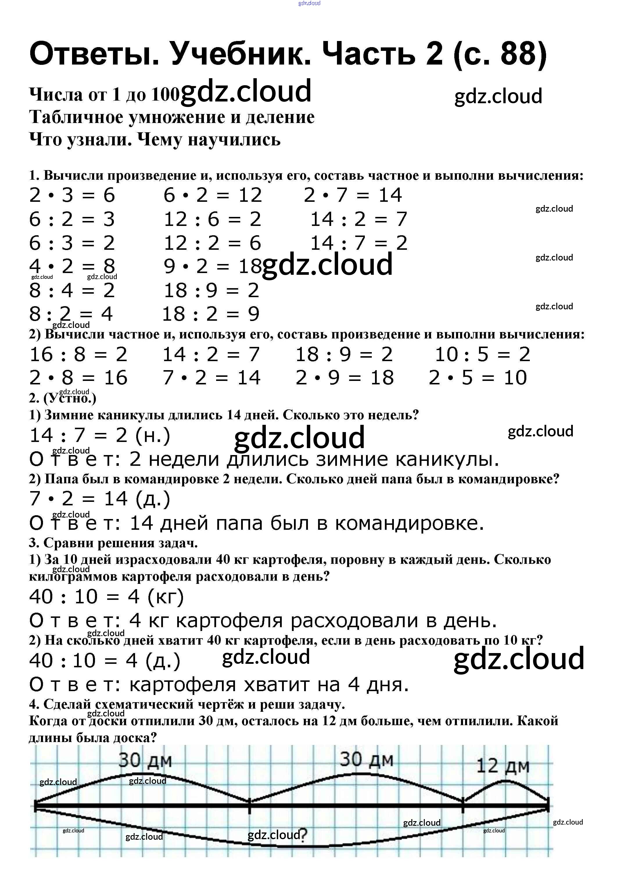 Ответ на задание стр.88 Учебник Математика за 2 (второй) класс Моро, Бантова, Бельтюкова Школа России 2015 Часть 1, 2