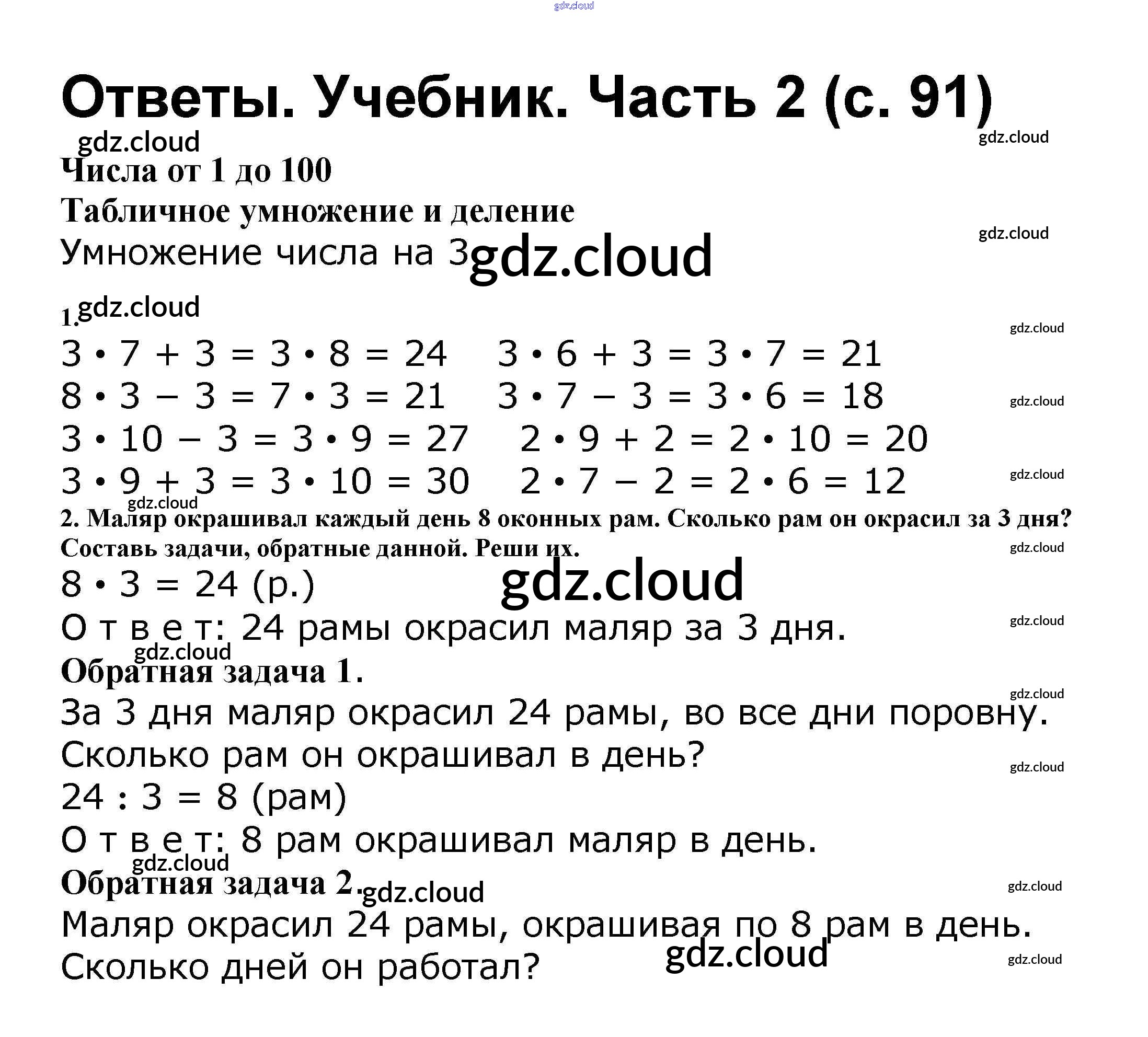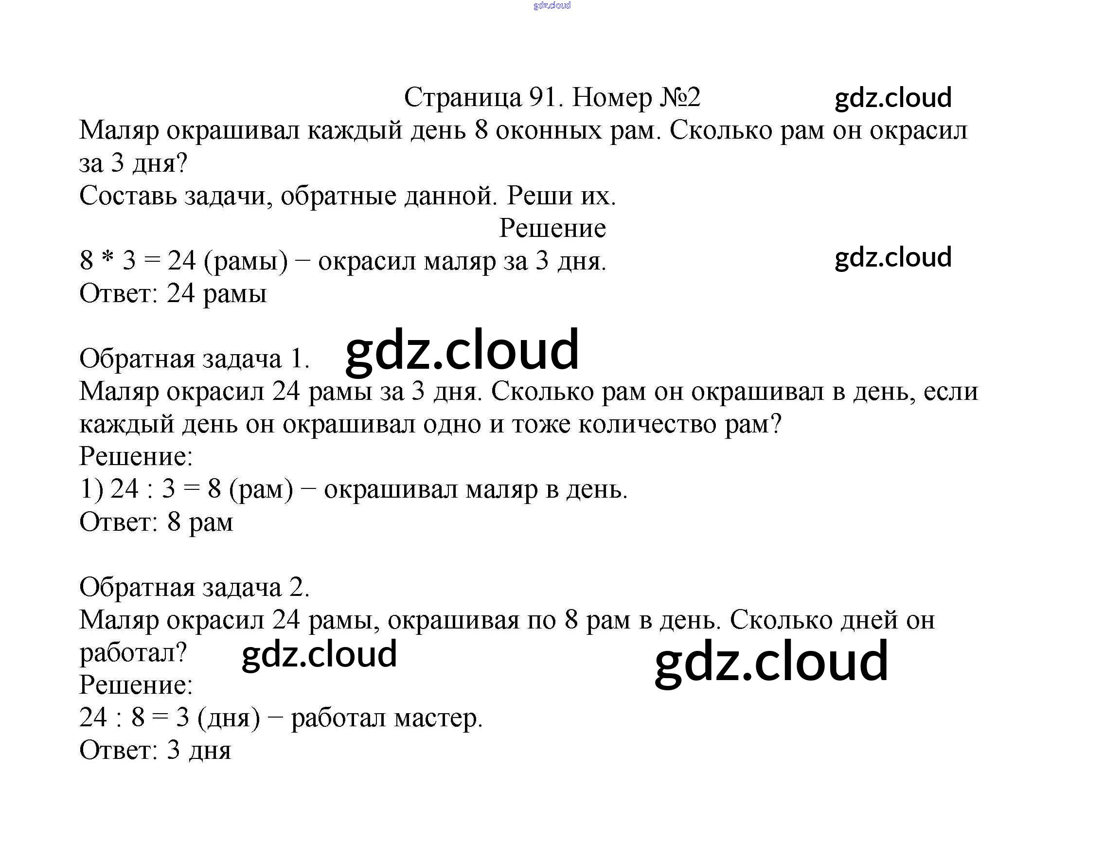 Ответ на задание стр.91 Учебник Математика за 2 (второй) класс Моро, Бантова, Бельтюкова Школа России 2015 Часть 1, 2