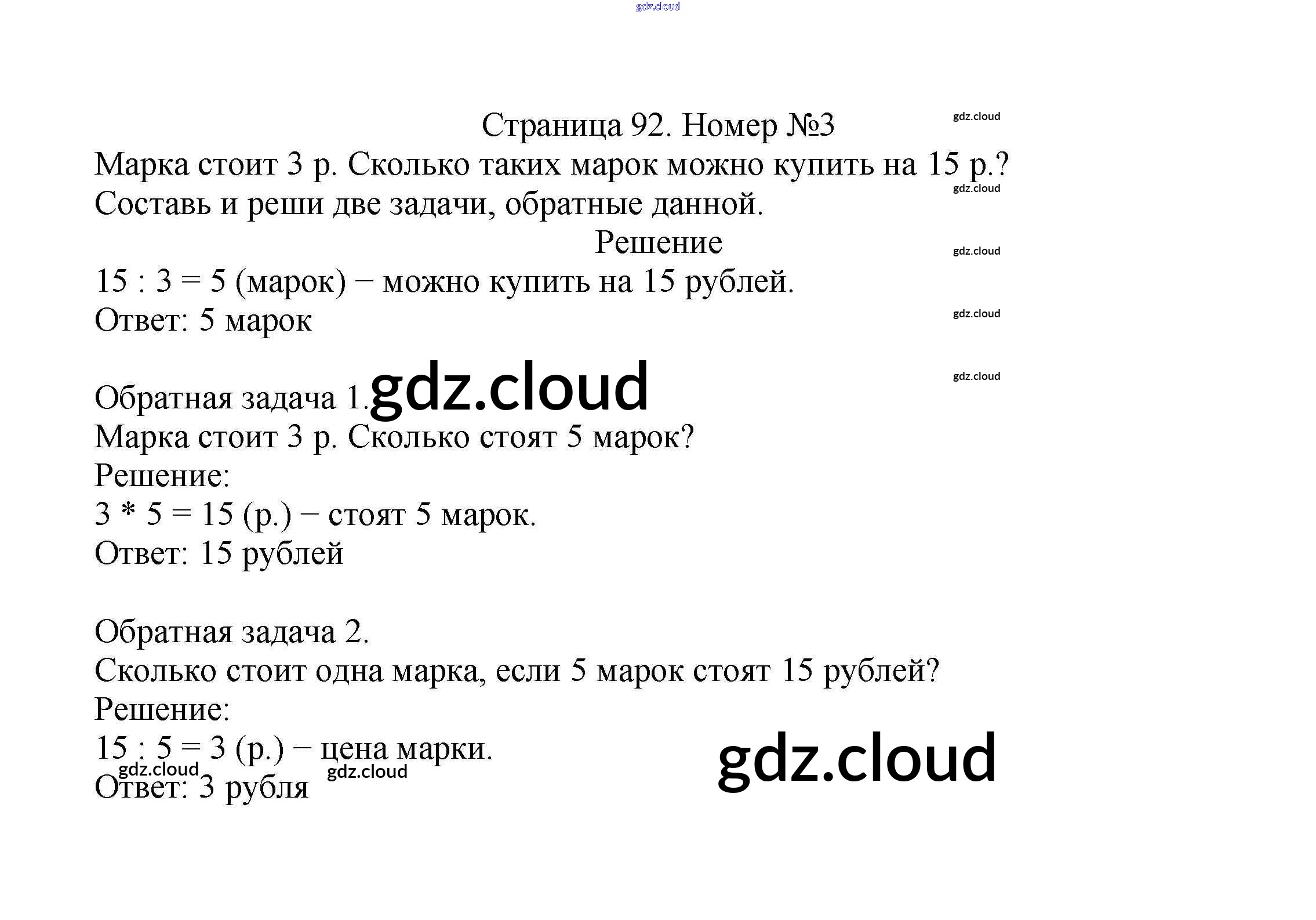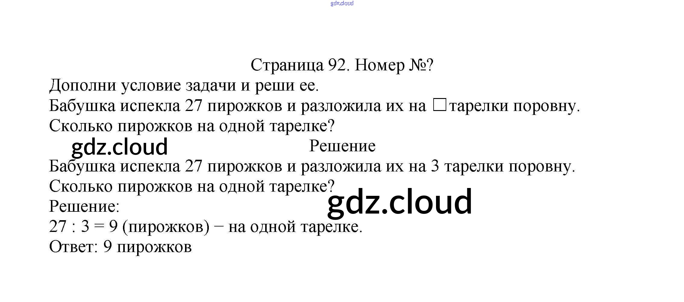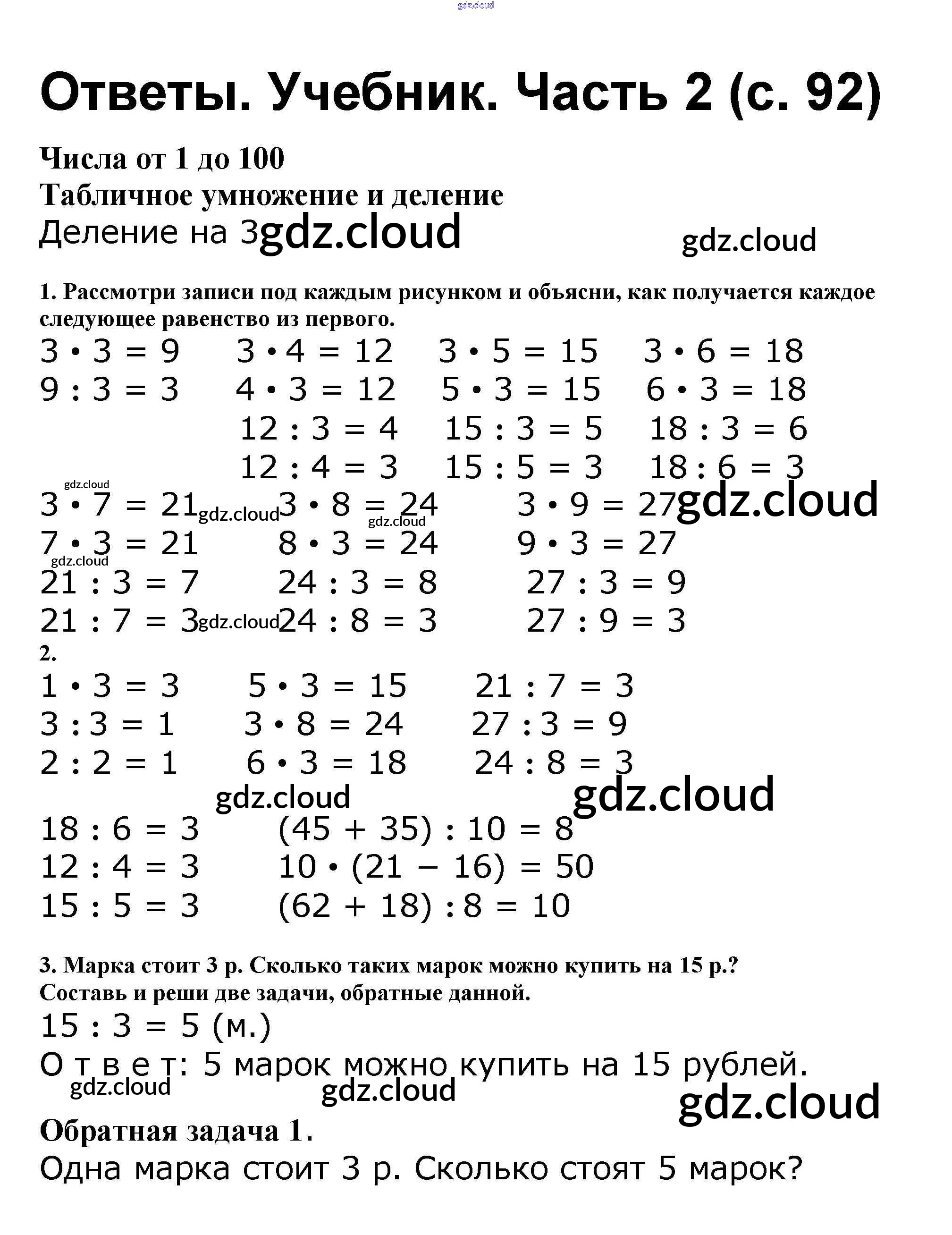 Ответ на задание стр.92 Учебник Математика за 2 (второй) класс Моро, Бантова, Бельтюкова Школа России 2015 Часть 1, 2
