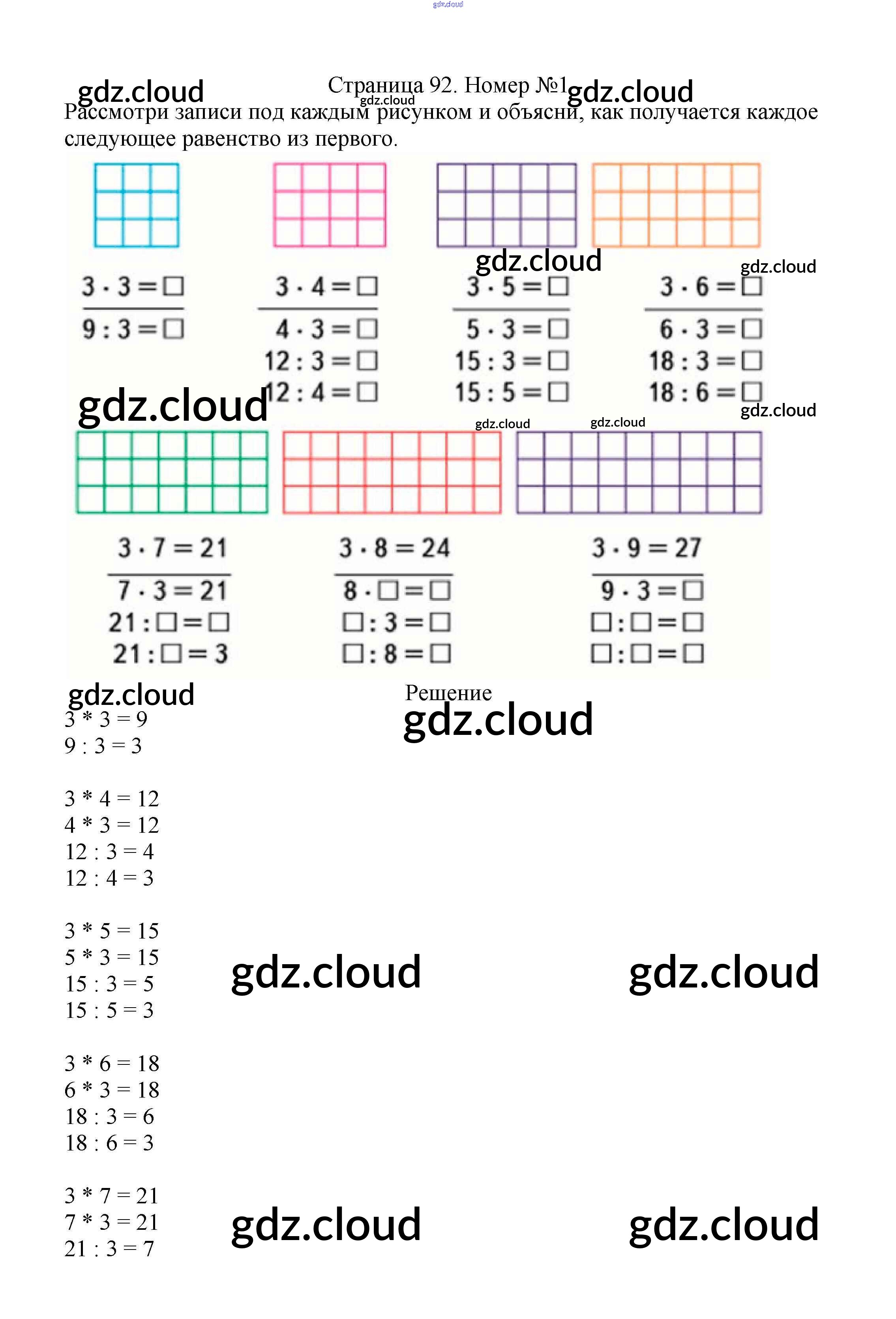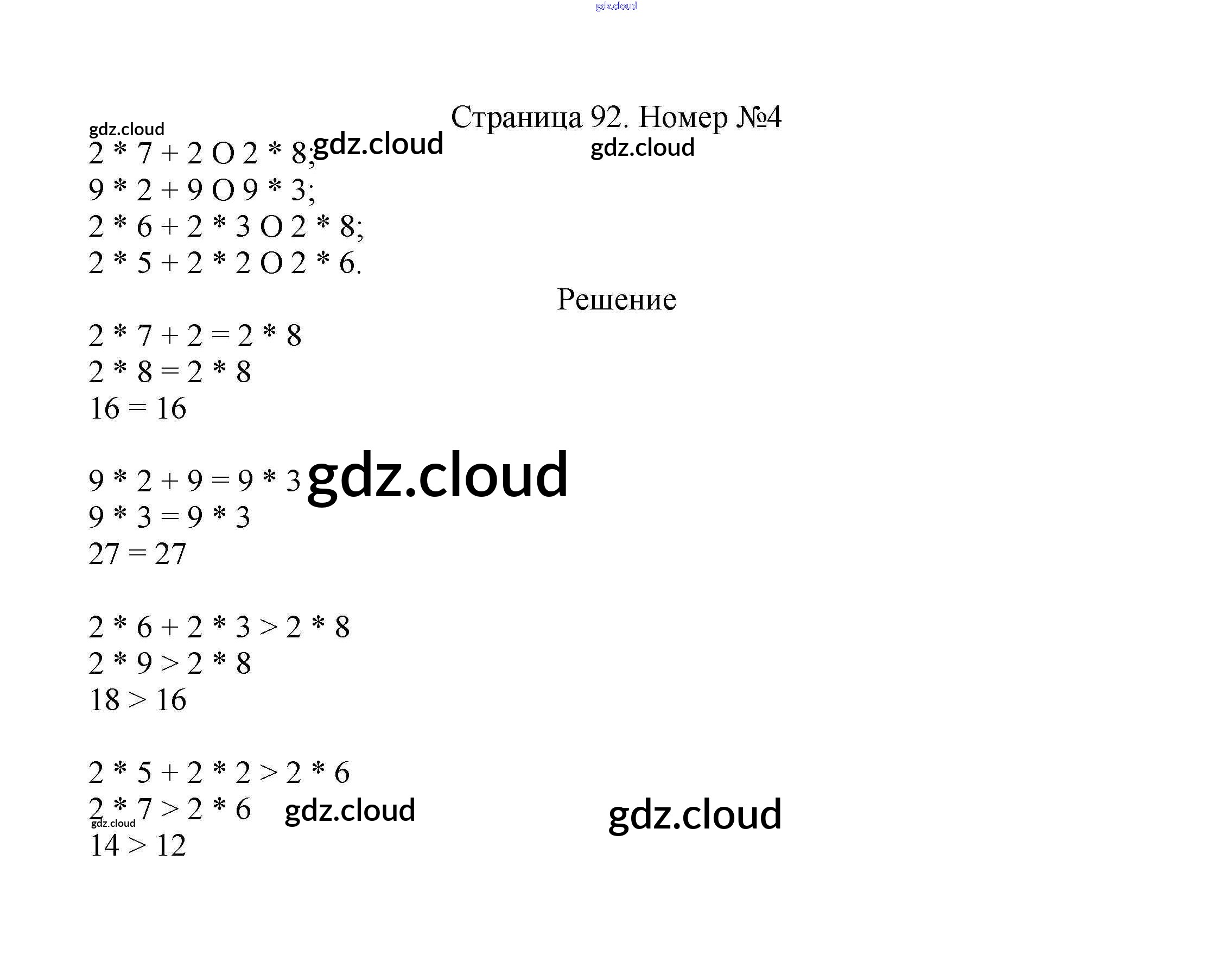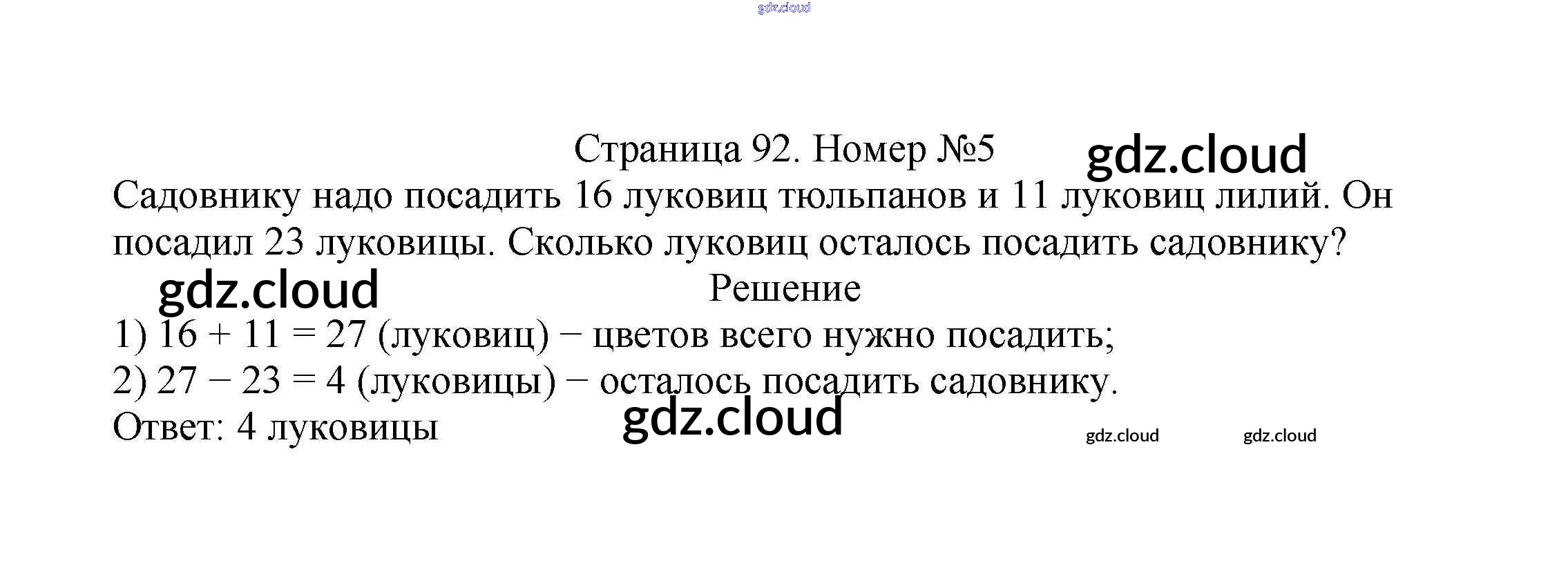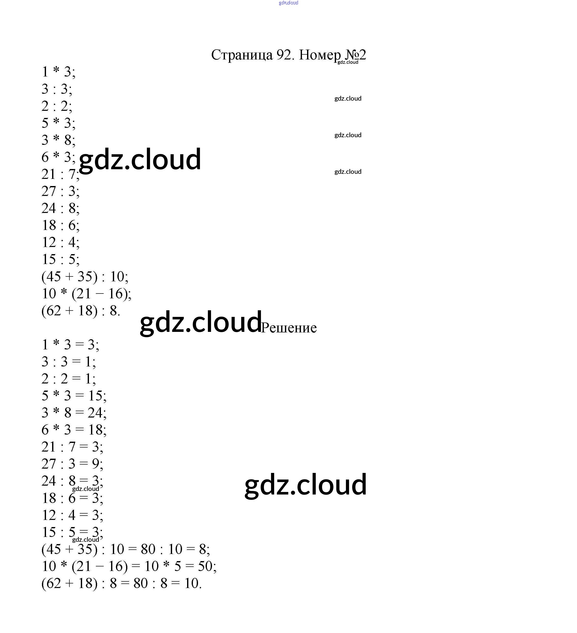 Ответ на задание стр.92 Учебник Математика за 2 (второй) класс Моро, Бантова, Бельтюкова Школа России 2015 Часть 1, 2