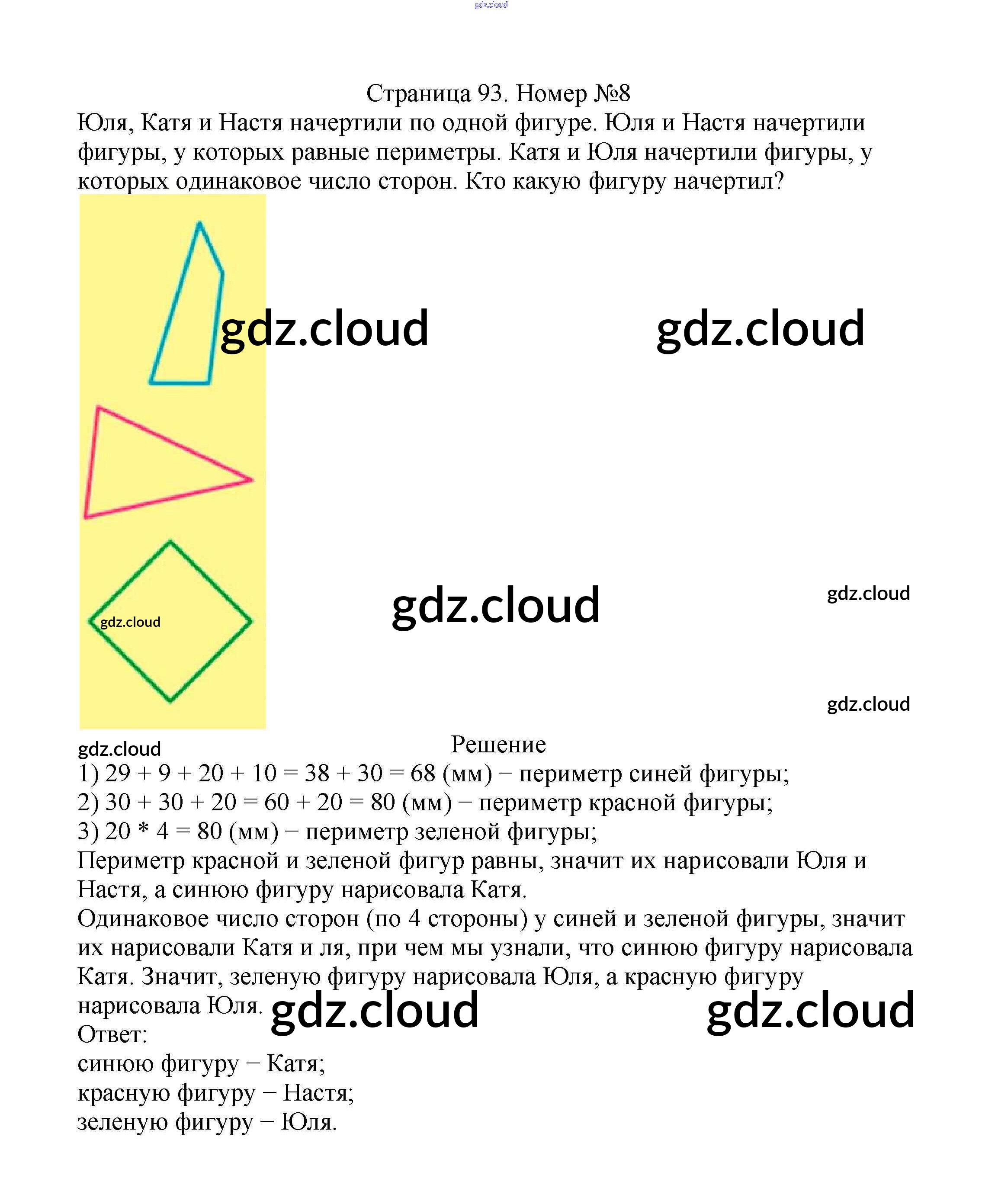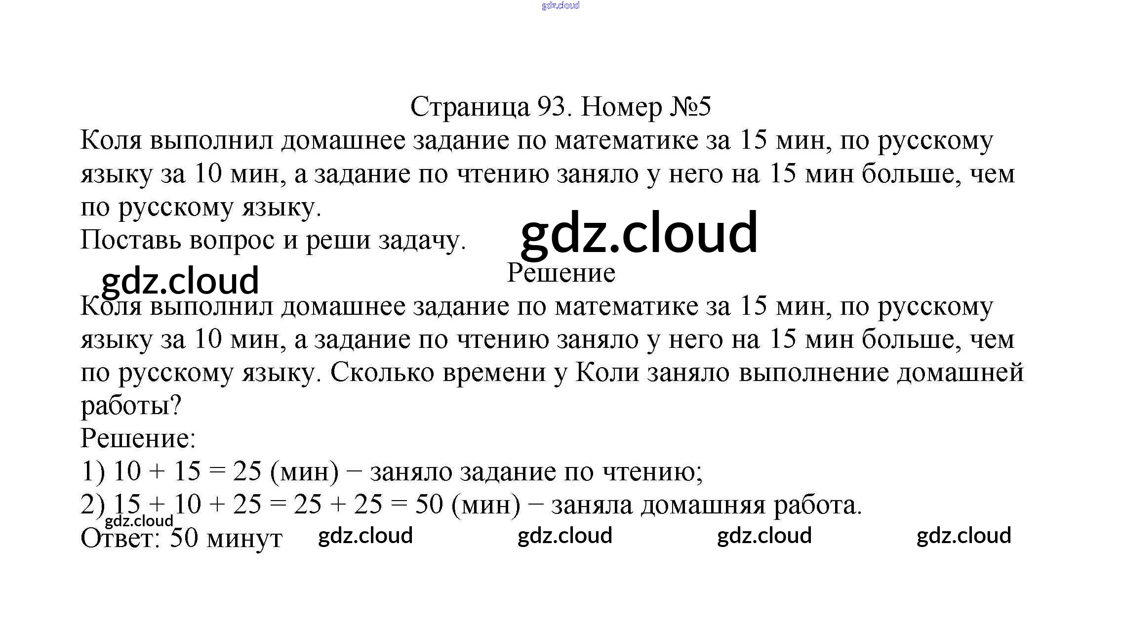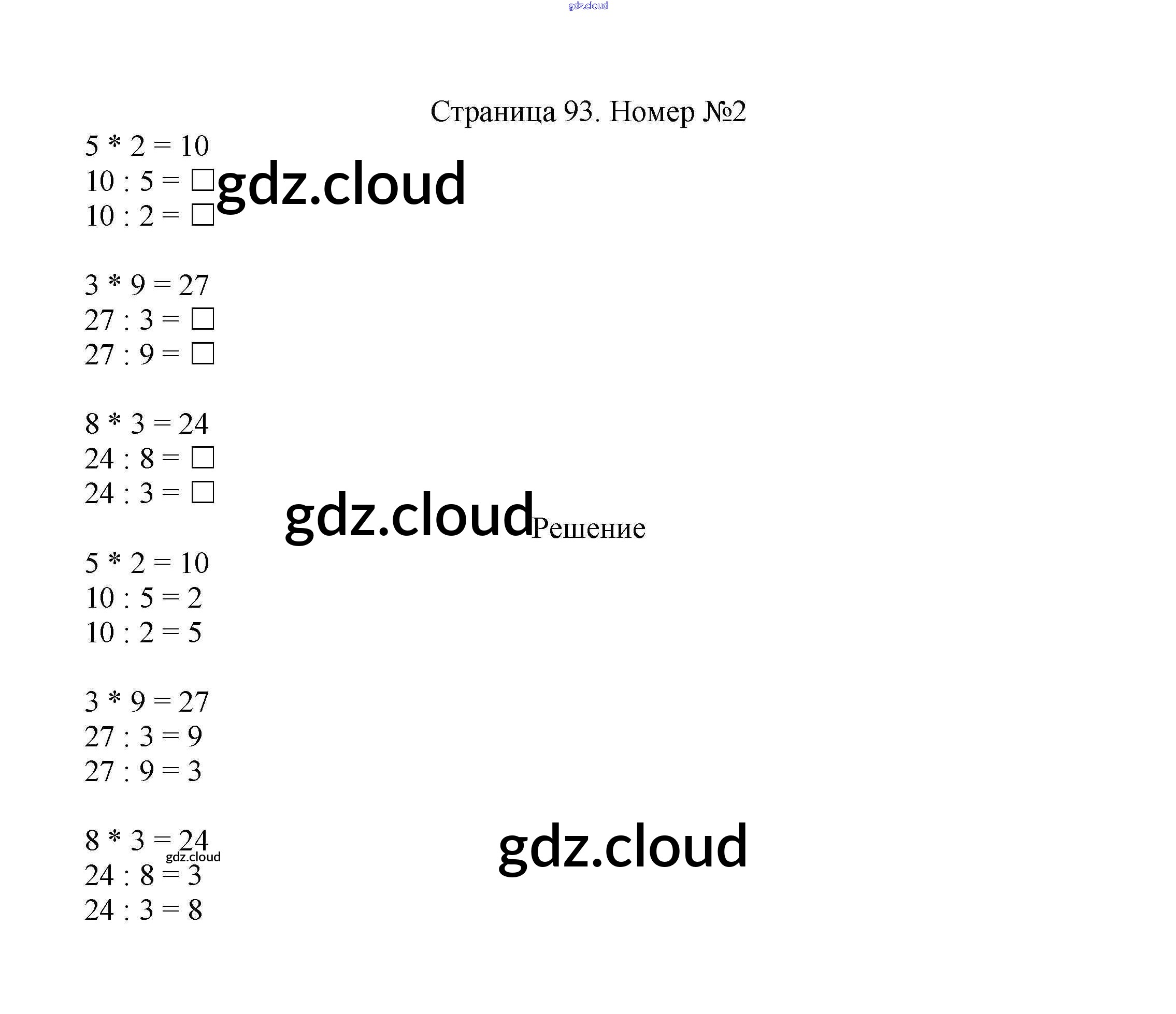 Ответ на задание стр.93 Учебник Математика за 2 (второй) класс Моро, Бантова, Бельтюкова Школа России 2015 Часть 1, 2