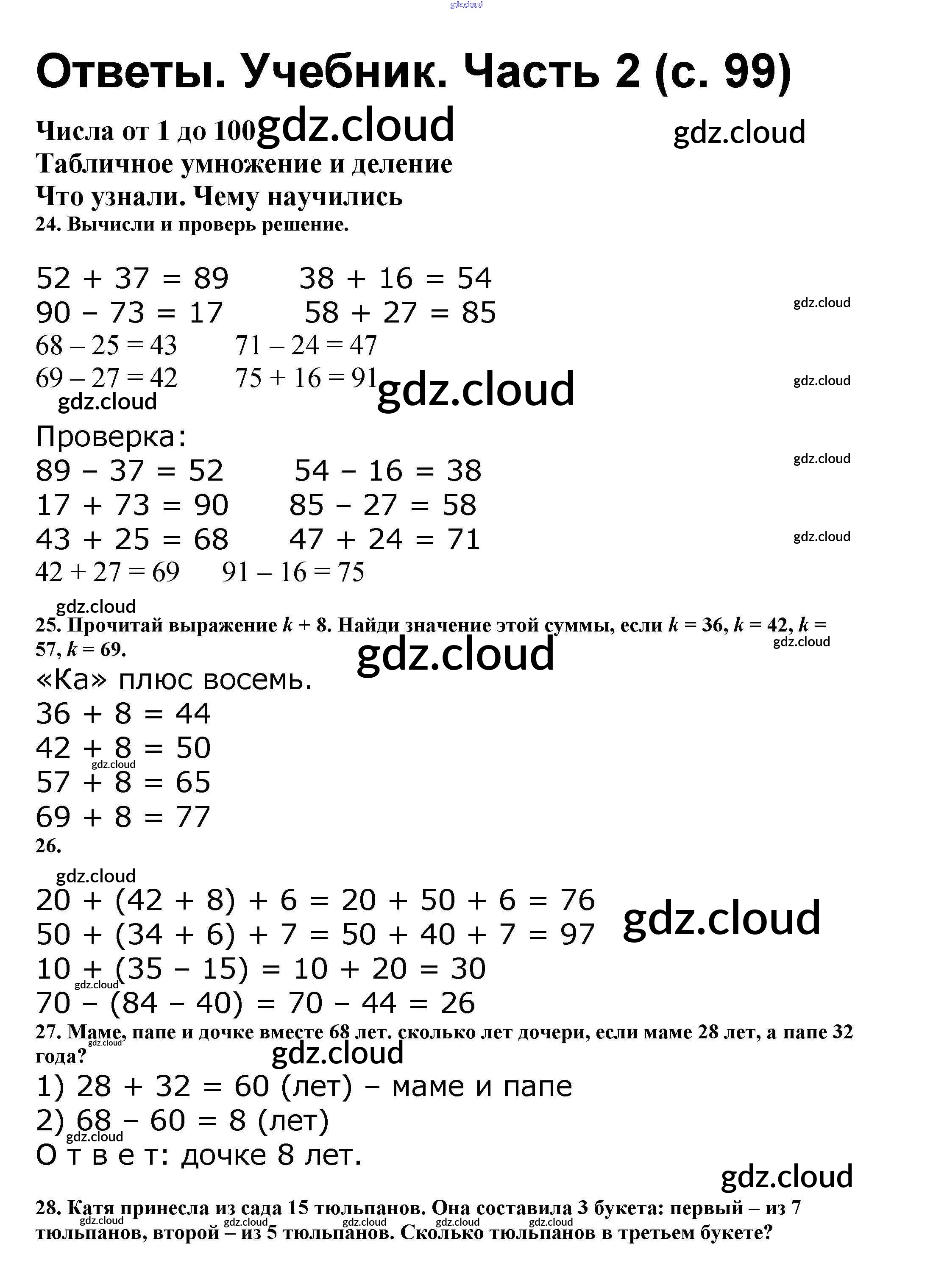 Ответ на задание стр.99 Учебник Математика за 2 (второй) класс Моро, Бантова, Бельтюкова Школа России 2015 Часть 1, 2