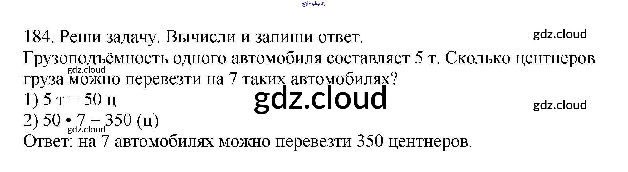 Ответ на задание 184 Учебник Математика за 3 (третий) класс Чекин Перспективная начальная школа 2016 Часть 1, 2