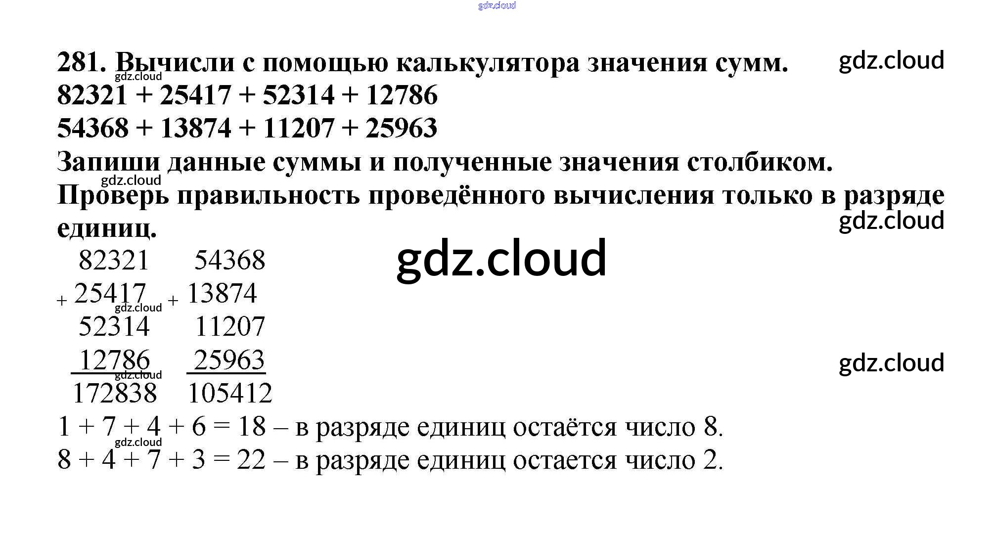 Ответ на задание 281 Учебник Математика за 3 (третий) класс Чекин Перспективная начальная школа 2016 Часть 1, 2