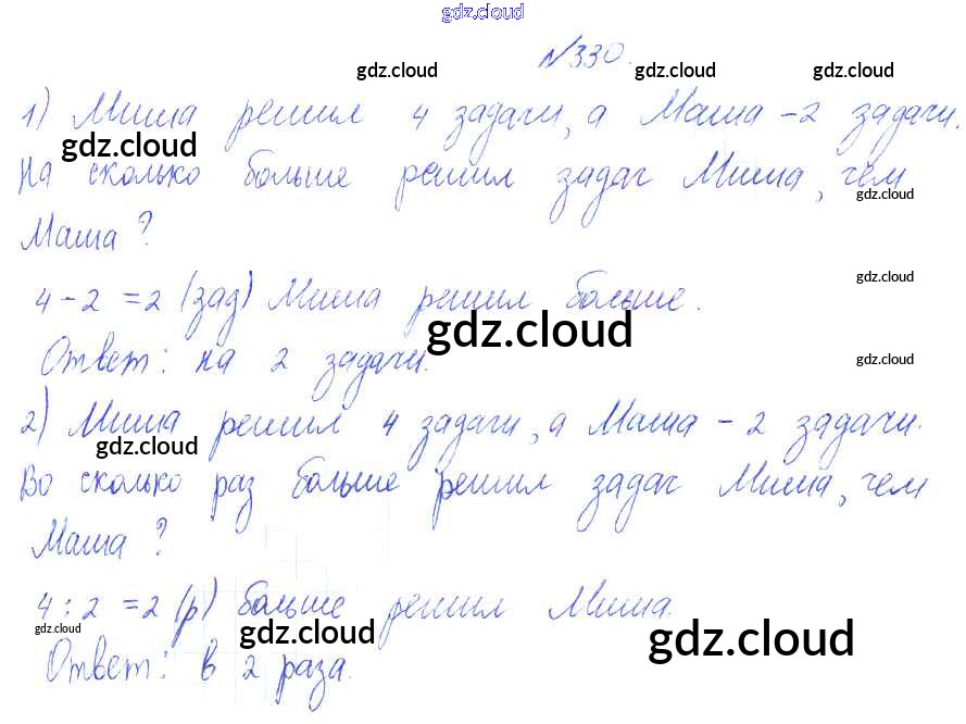 Ответ на задание 330 Учебник Математика за 3 (третий) класс Чекин Перспективная начальная школа 2016 Часть 1, 2