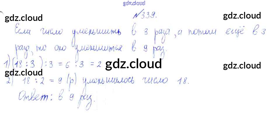 Ответ на задание 339 Учебник Математика за 3 (третий) класс Чекин Перспективная начальная школа 2016 Часть 1, 2