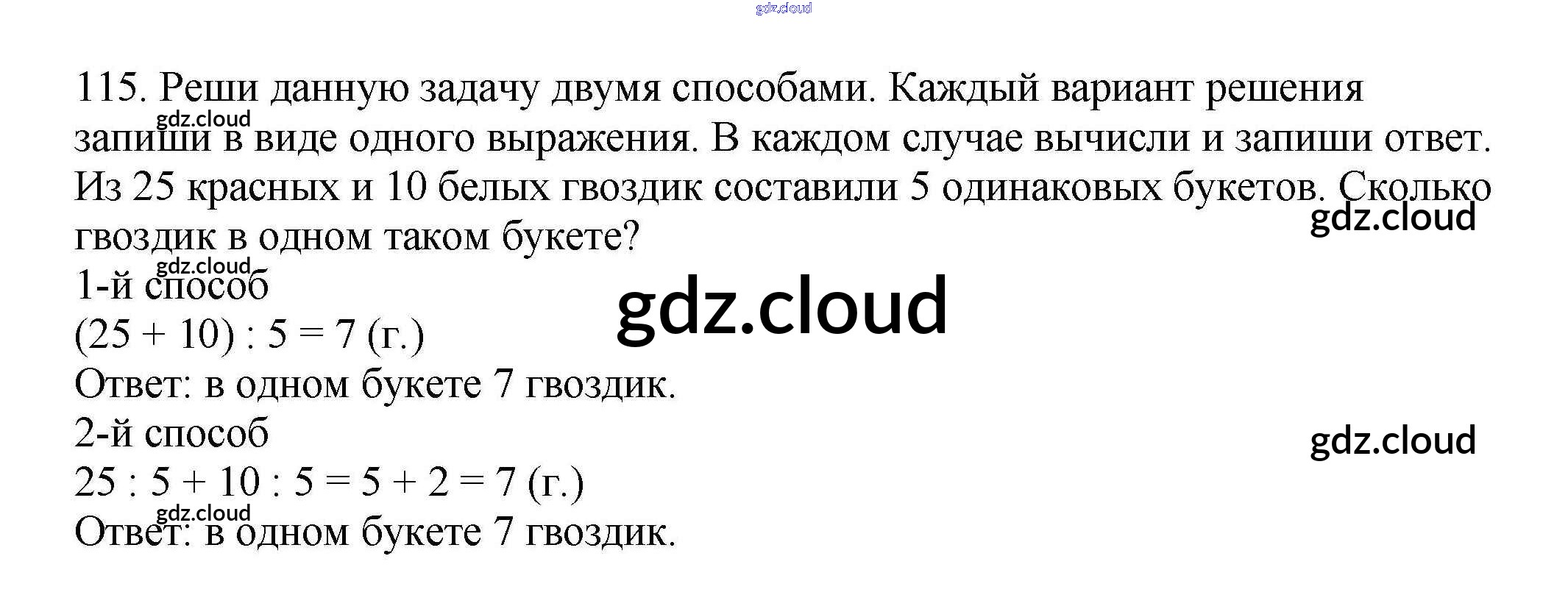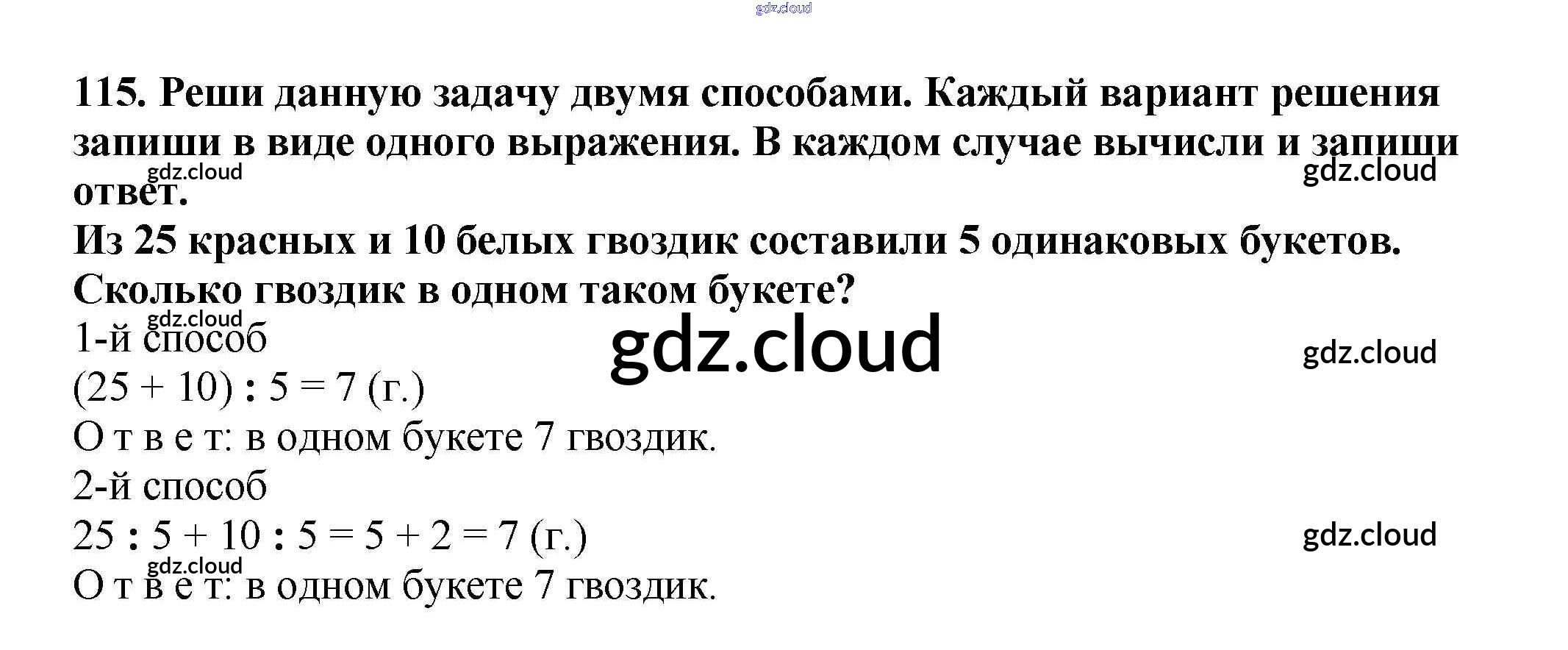 Ответ на задание 115 Учебник Математика за 3 (третий) класс Чекин Перспективная начальная школа 2016 Часть 1, 2