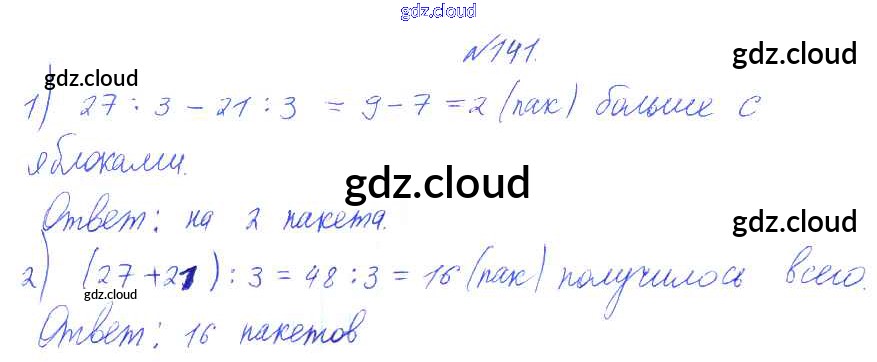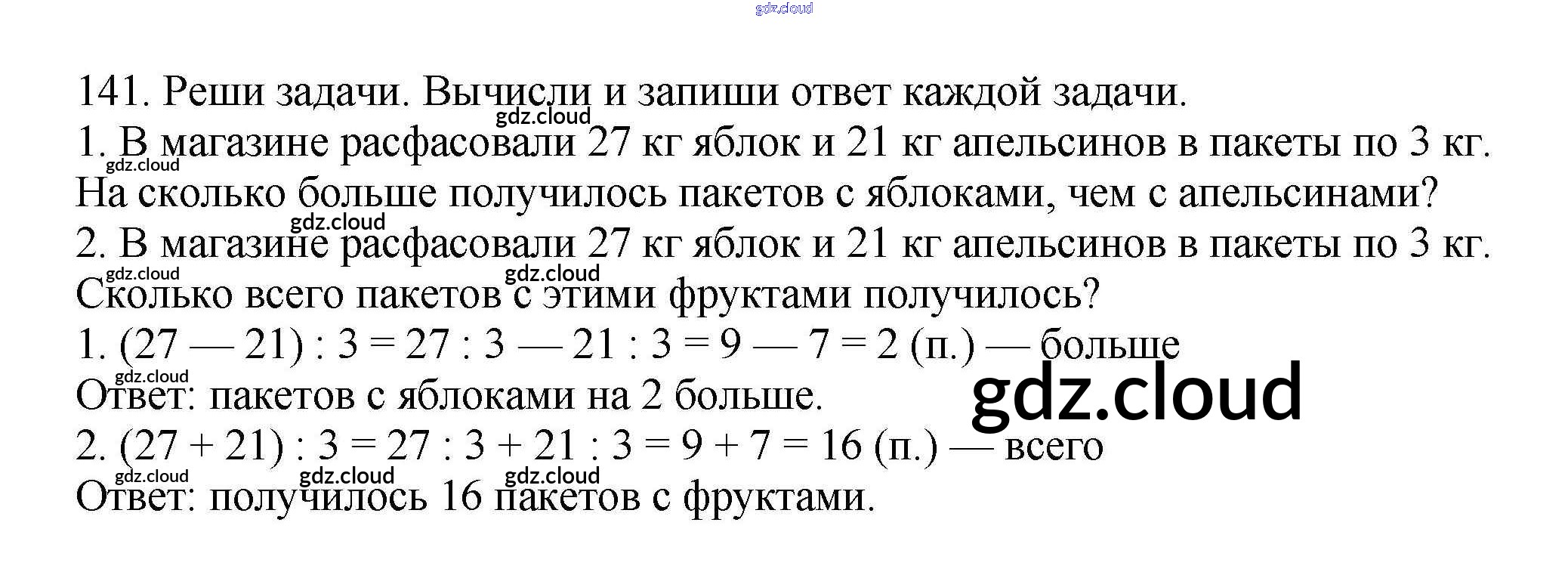 Ответ на задание 141 Учебник Математика за 3 (третий) класс Чекин Перспективная начальная школа 2016 Часть 1, 2