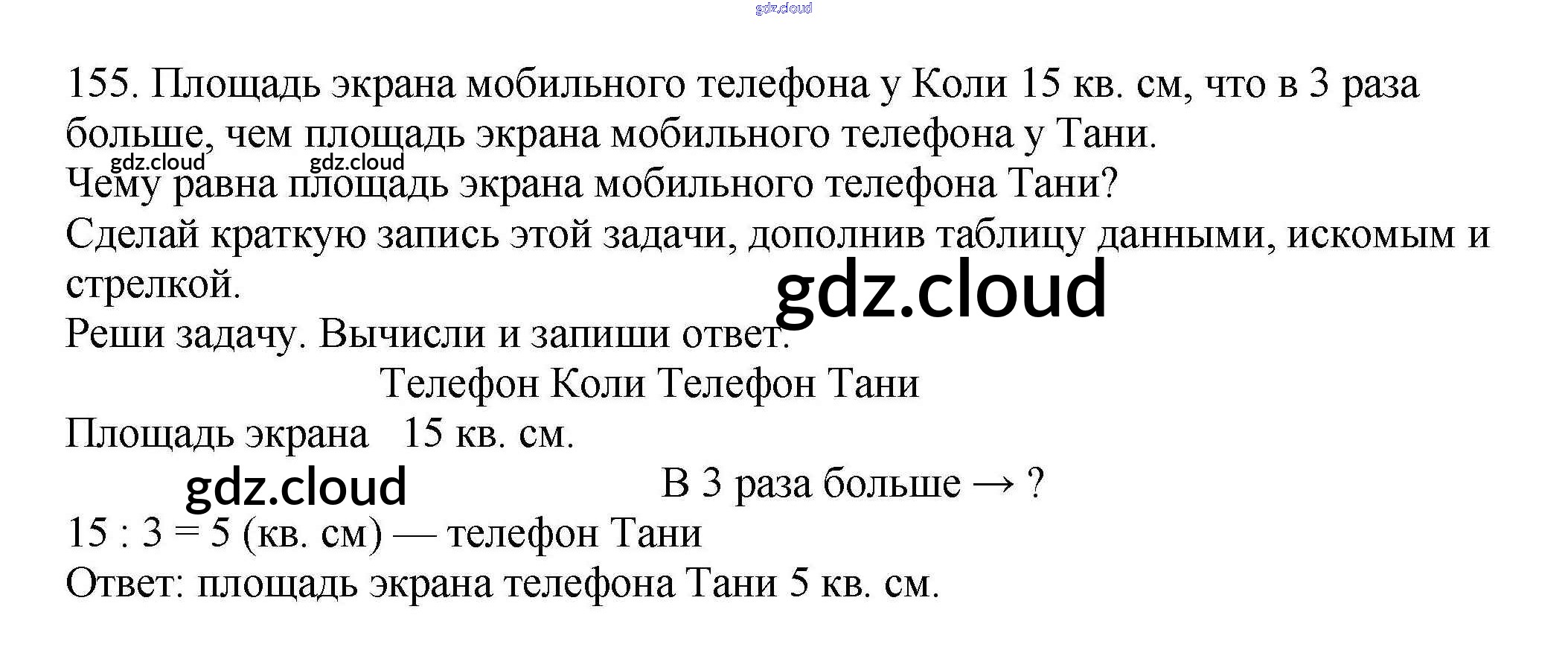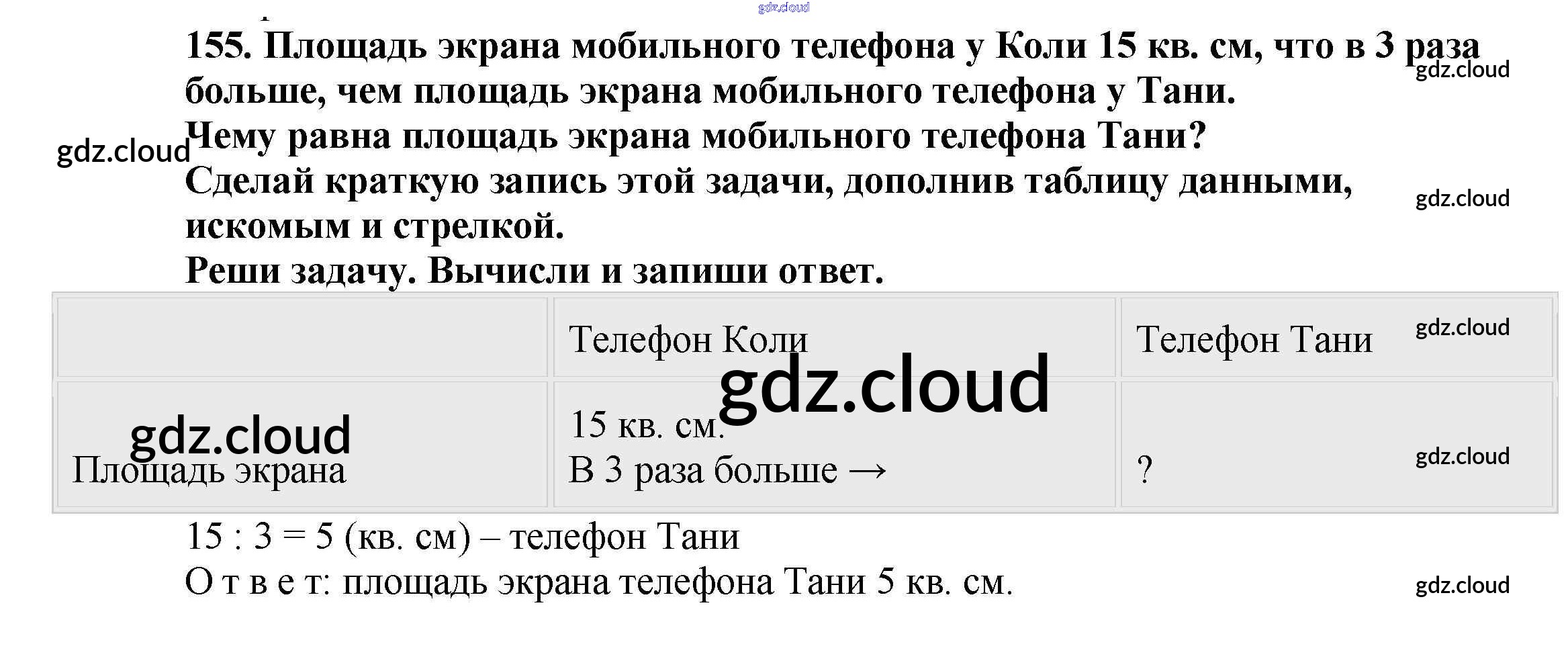 Ответ на задание 155 Учебник Математика за 3 (третий) класс Чекин Перспективная начальная школа 2016 Часть 1, 2