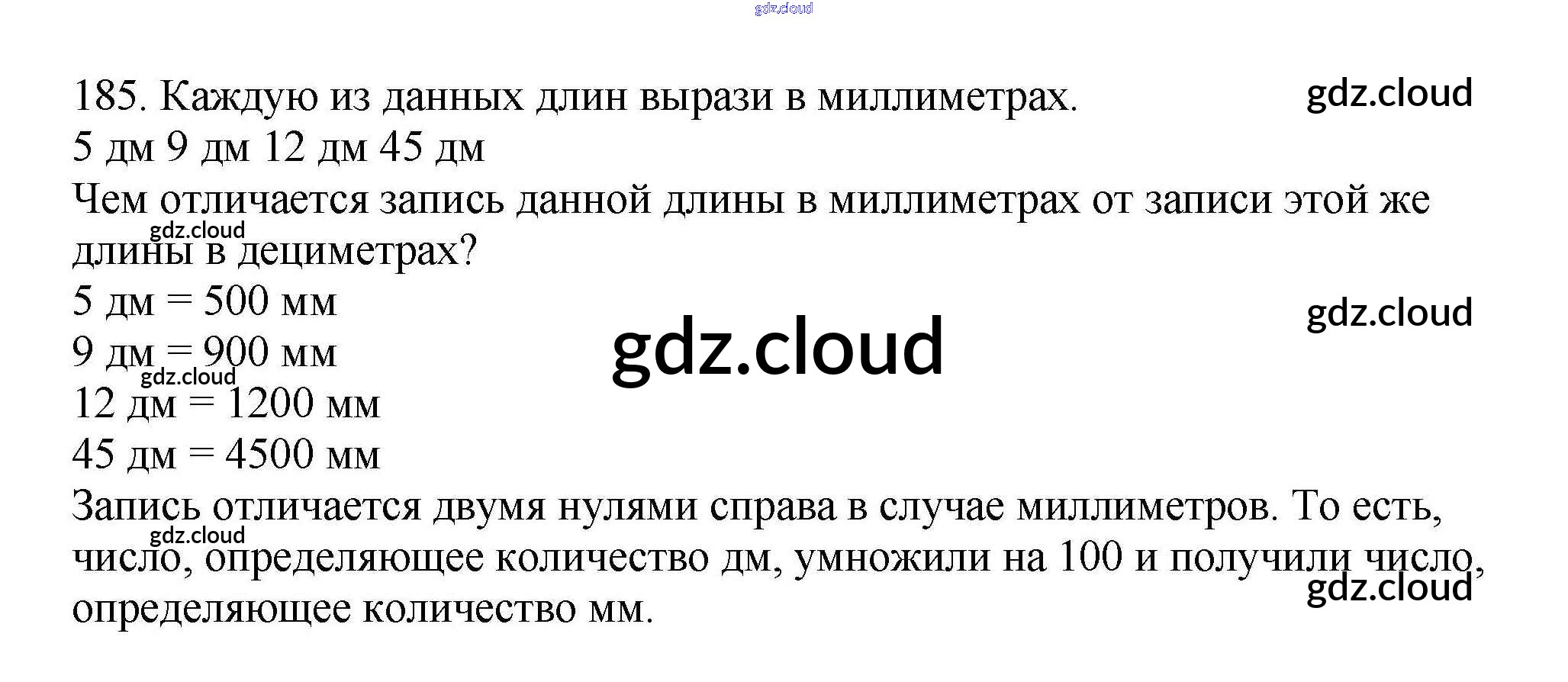 Ответ на задание 185 Учебник Математика за 3 (третий) класс Чекин Перспективная начальная школа 2016 Часть 1, 2