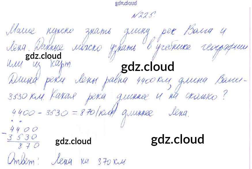 Ответ на задание 225 Учебник Математика за 3 (третий) класс Чекин Перспективная начальная школа 2016 Часть 1, 2