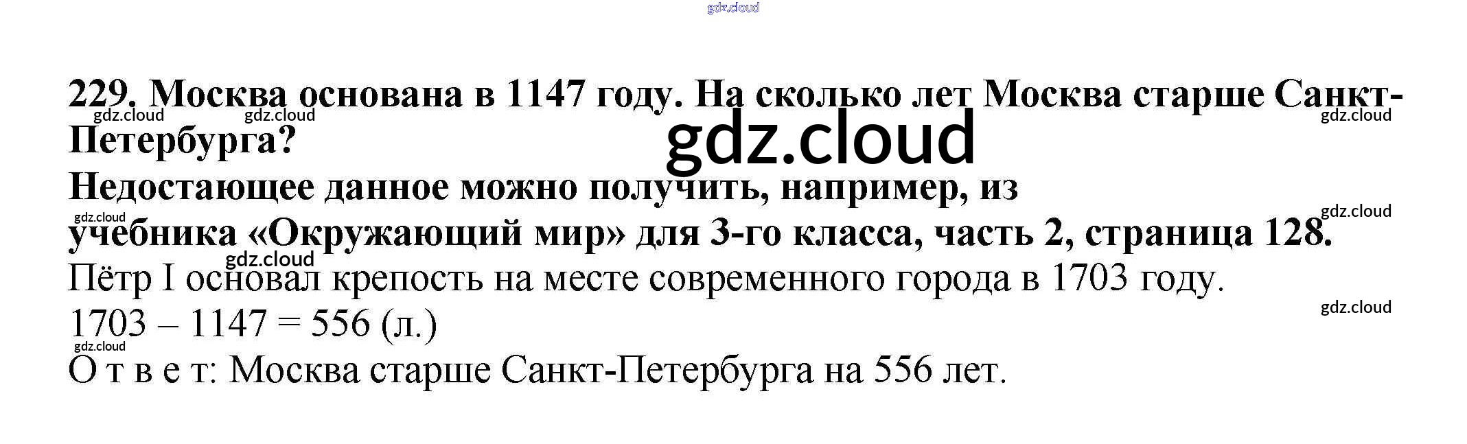 Ответ на задание 229 Учебник Математика за 3 (третий) класс Чекин Перспективная начальная школа 2016 Часть 1, 2
