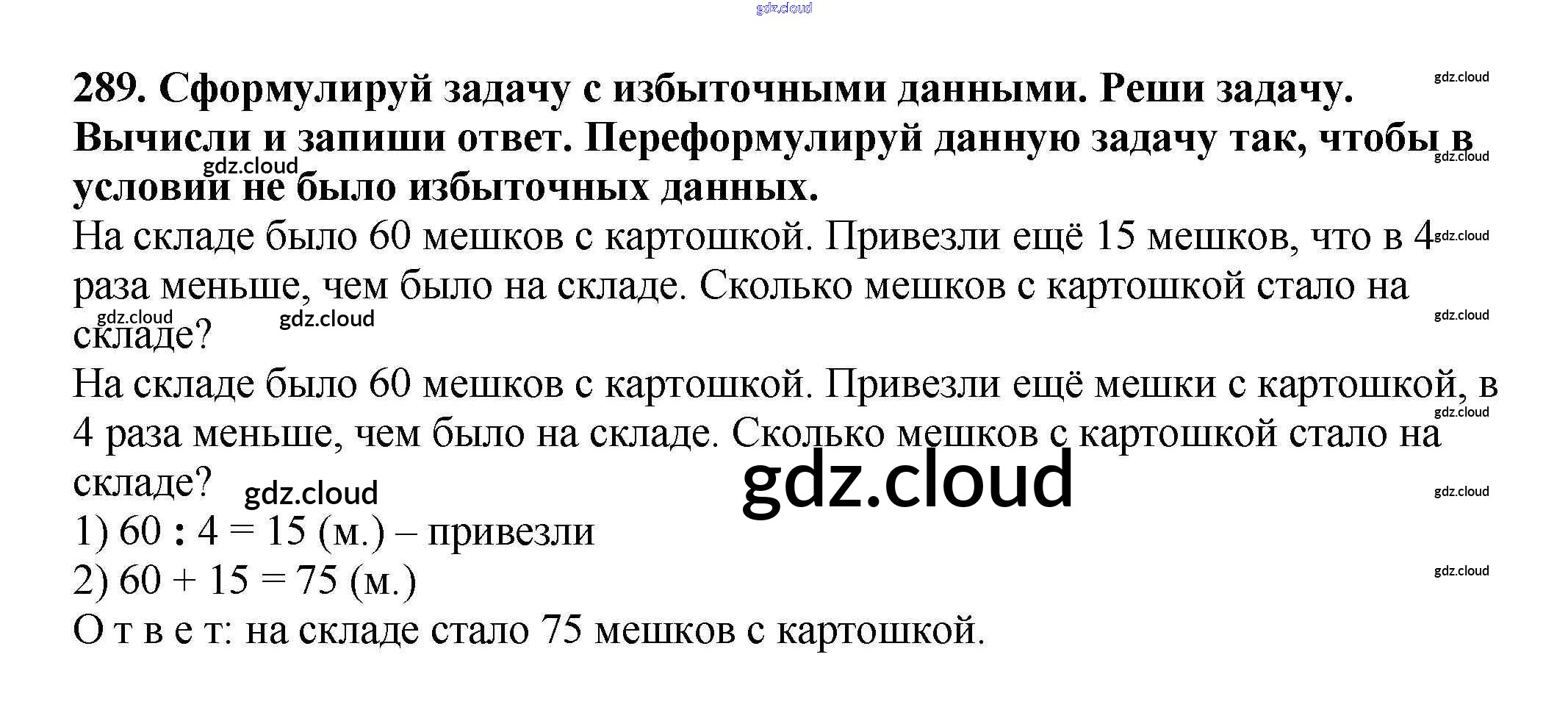 Ответ на задание 289 Учебник Математика за 3 (третий) класс Чекин Перспективная начальная школа 2016 Часть 1, 2